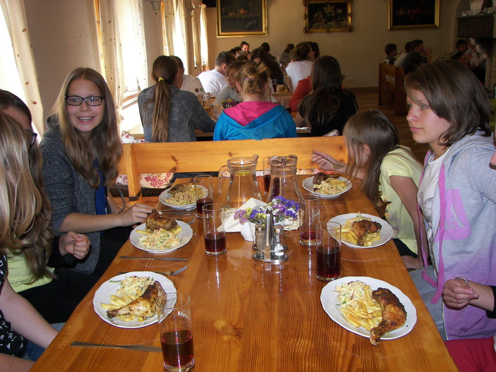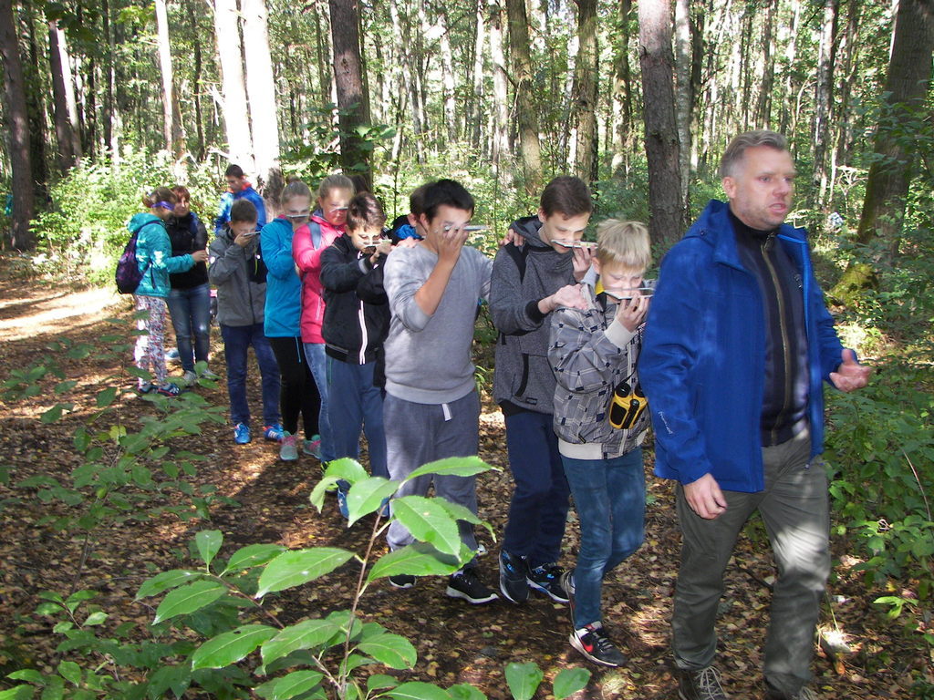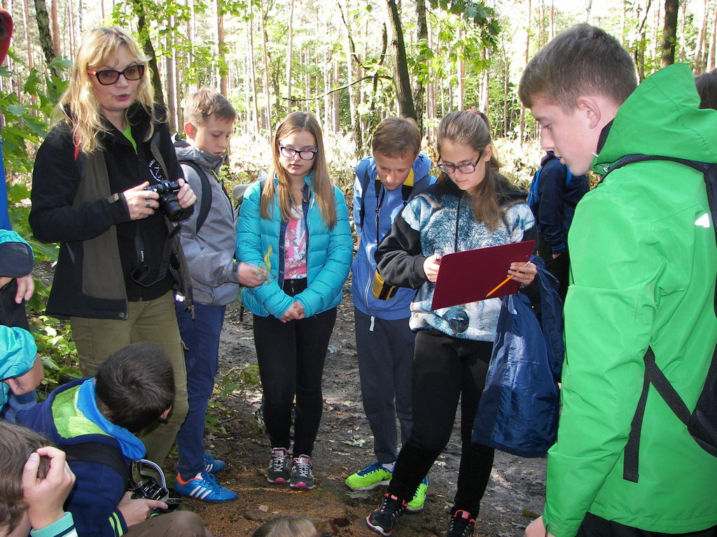 Kolejny dzień naszej przygody rozpoczął się pożywnym śniadaniem. Najedzeni do syta wybraliśmy się autokarem do Opalenia, gdzie czekało na nas wiele leśnych tajemnic. Wraz z naszymi przewodniczkami: p. Kasią i p. Dorotą ruszyliśmy na wędrówkę po tutejszym parku. Dzięki otrzymanym kartom pracy poznaliśmy gatunki drzew i krzewów Kampinosu. Mieliśmy także czas na chwilę zabawy. Pomysłowość naszych opiekunów była zaskakująca: podziwialismy świat z perspektywy wiewiórki, chodząc z lusterkiem umieszczonym między oczami a nosem. Podczas kolejnej atrakcji musieliśmy wyłączyć jeden ze zmysłów: zmysł wzroku. Prowadzeni przez naszych kolegów staraliśmy się odnaleźć jedno z wybranych przez nich drzew. Bawiliśmy się wspaniale, jednak czekały na nas kolejne przygody, musieliśmy iść dalej. W drodze powrotnej mieliśmy okazję podziwiać tropy zwierząt, które zamieszkują tutejsze lasy. Kolejnym przystankiem była łąka. Tuż nad nią wybudowano kładkę, po której mogliśmy przejść. W trakcie przechadzki dowiedzieliśmy się ciekawych informacji na temat derkacza - ptaka, stałego bywalca tutejszych łąk. Wracając czerwonym szlakiem, wciąż odkrywaliśmy coś nowego. Zajęcia te na pewno pozostaną nam w pamięci. Dzisiejszy dzień jednak nie dobiegł jeszcze końca. Czekają nas jeszcze nocne zajęcia w terenie, podczas których m.in. będziemy wypatrywać nietoperzy i sów. Nie możemy się już doczekać...
