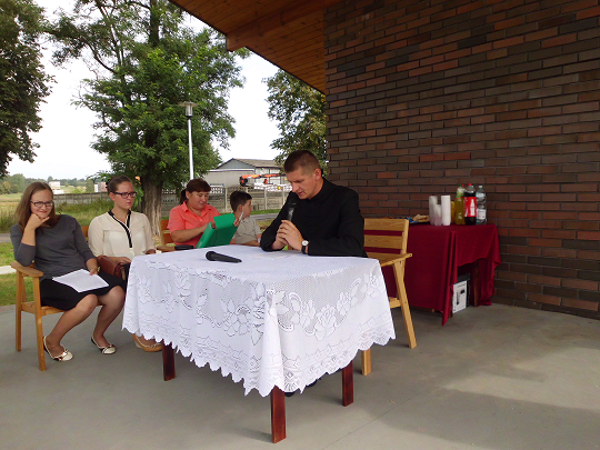 Powieść prezentowali: Filip Kiedrzyński z kl. I szkoły podstawowej, Filip Grenza (kl.IV) z mamą, Paulina Nowak (kl.VI), Edyta Skóra (kl. II gim.), Julia Lipska (kl. III gim.), Patrycja Skóra (absolwentka naszej szkoły) oraz nauczyciele: ks. Zbigniew Kaliński, Renata Lipska i Mariusz Bazylak. Nad przebiegiem akcji czuwała Janina Ornafa, a o nagłośnienie zadbał Jakub Łopatka (kl.III gim.).