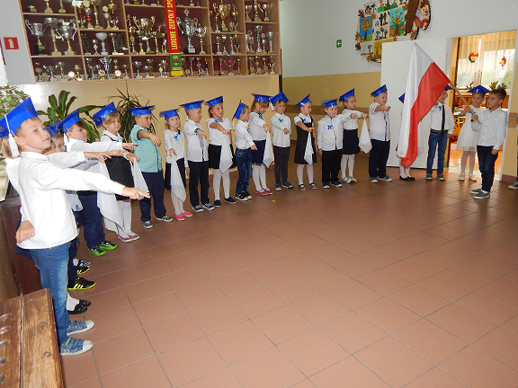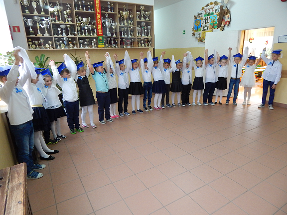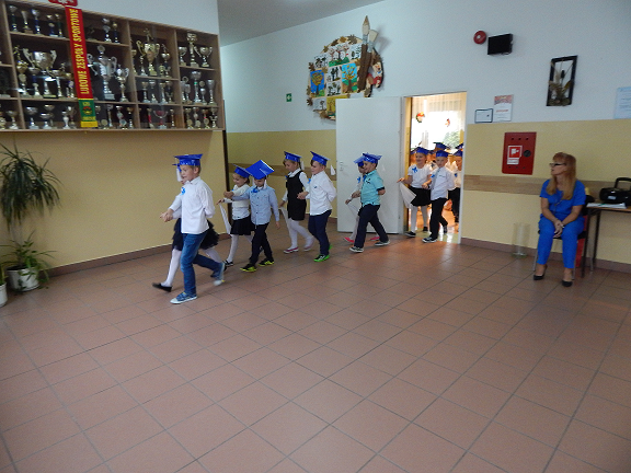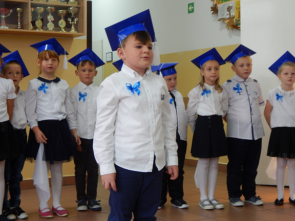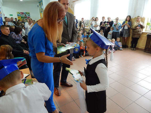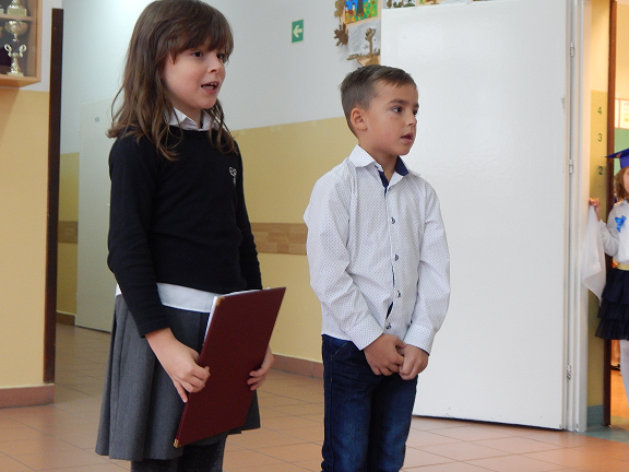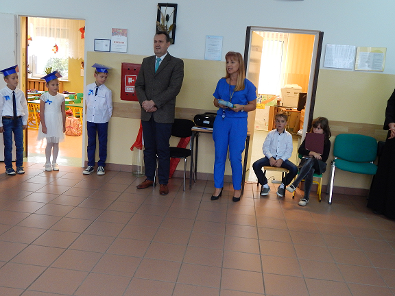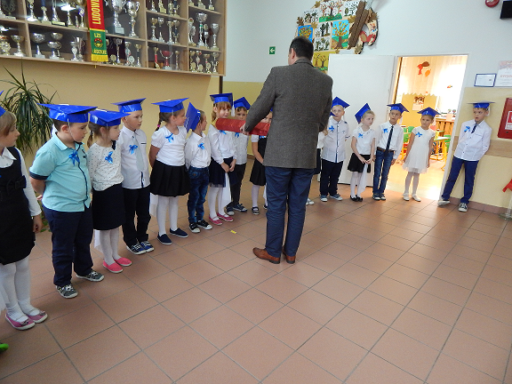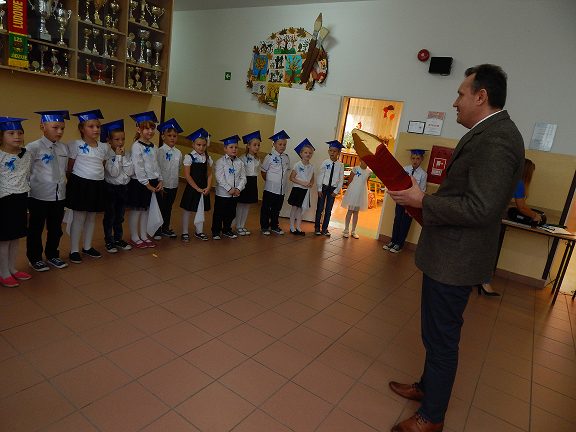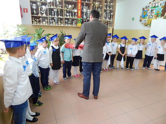Szkolną imprezę zwieńczył pan dyrektor Mariusz Muszyński, dokonując pasowania każdego malucha wielkim, czerwonym ołówkiem. Na pamiątkę tego dnia pierwszoklasiści otrzymali dyplomy.