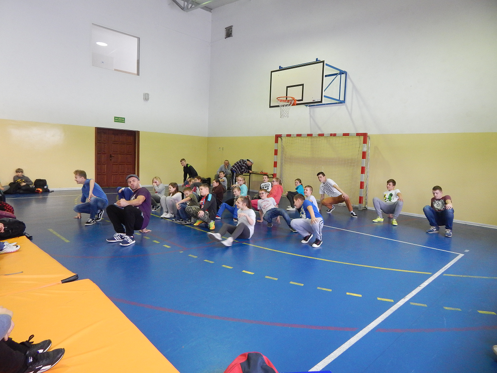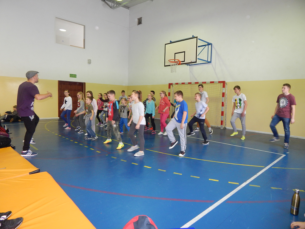 W piątek w naszej szkole odbyła się kolejna audycja muzyczna agencji Art-Es z Pabianic, w której uczestniczyli wszyscy uczniowie naszej szkoły, z podziałem na dwie grupy 0-III sp oraz IV-VI sp i I - III gim. Tym razem gościliśmy u nas tancerzy specjalizujących się w tańcu hause. Podczas spotkania uczniowie nie tylko obejrzeli pokaz tańca, ale również uczestniczyli w zabawach, podczas których uczyli się układów tanecznych. Jak się okazało, nie było to jednak wcale proste. Zabawa była niesamowita, wszyscy pełni energii i niesamowitych wrażeń wrócili na lekcje. Z niecierpliwością czekamy na kolejne audycje :)