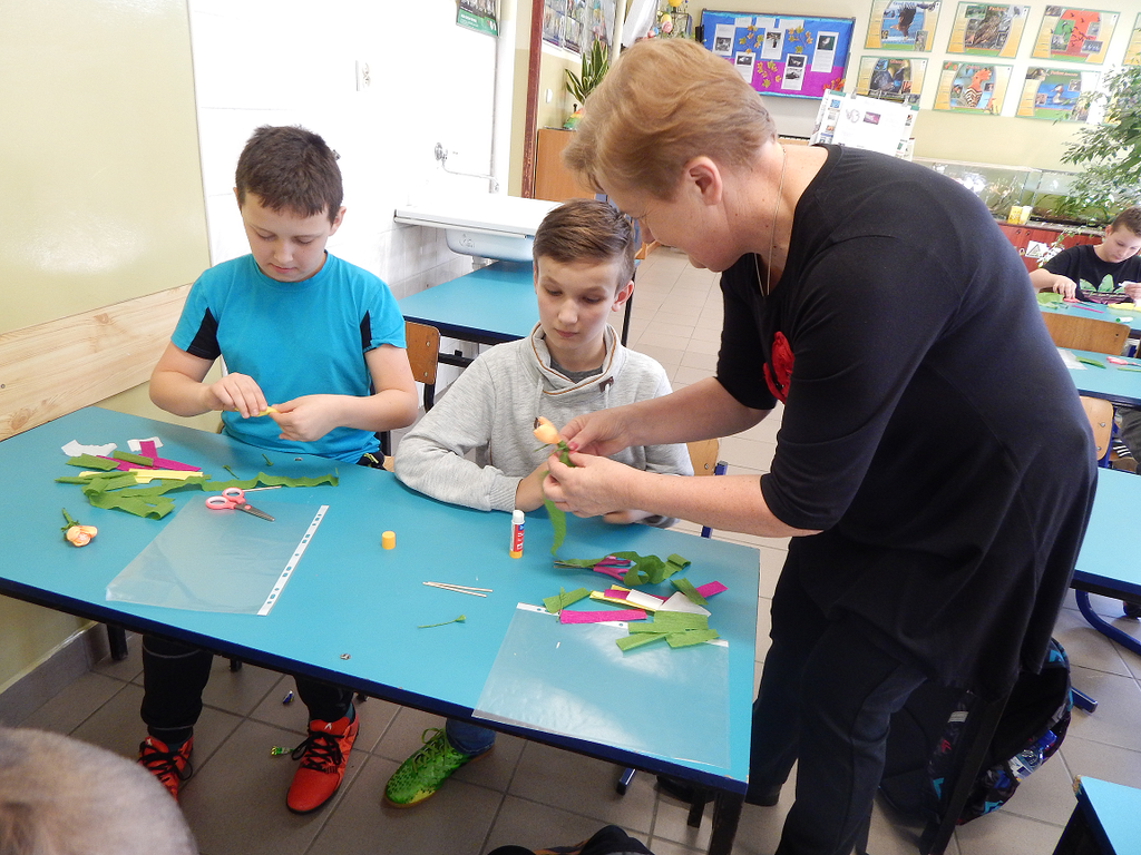 W dniu 27.03.2017 roku odbyły się w naszej placówce warsztaty plastyczne pt. "Wiosenne kwiaty", w których wzięli udział uczniowie klas V i VI szkoły podstawowej.