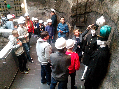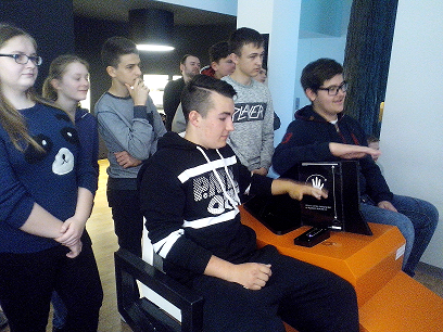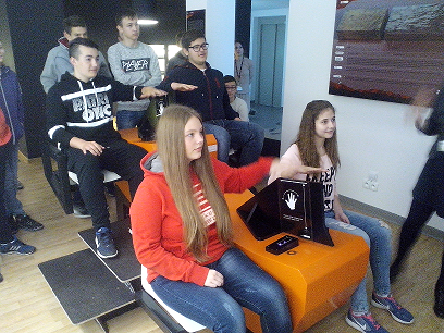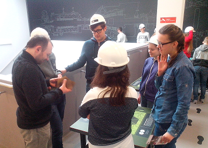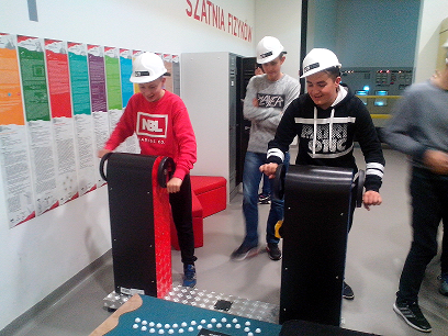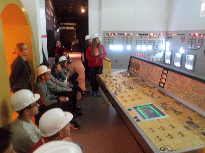 Pierwszym punktem programu było zwiedzanie interaktywnej ekspozycji PGE Giganty Mocy oraz projekcja filmu Discovery Science. Gimnazjaliści dowiedzieli się, jak powstaje węgiel brunatny, jak się go wydobywa i przetwarza na energię elektryczną w bełchatowskich „Gigantach”, czyli elektrowni i kopalni węgla brunatnego. Ponadto uczniowie eksperymentowali w generatorze odpowiedzialnym za wytwarzanie prądu, sterowali procesem wytwarzania energii oraz podziwiali szczątki mamuta żyjącego niegdyś na obszarze dzisiejszej odkrywki węgla brunatnego w Bełchatowie.