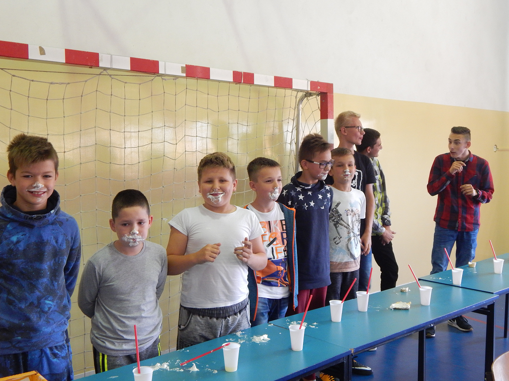 Wszyscy bawili się wyśmienicie, widownia żywo reagowała gromkimi brawami, a komisja konkursowa wyłoniła mistera szkoły, którym został MICHAŁ WÓJCIK - uczeń klasy III b gimnazjum. Wszyscy uczestnicy otrzymali słodkie upominki.