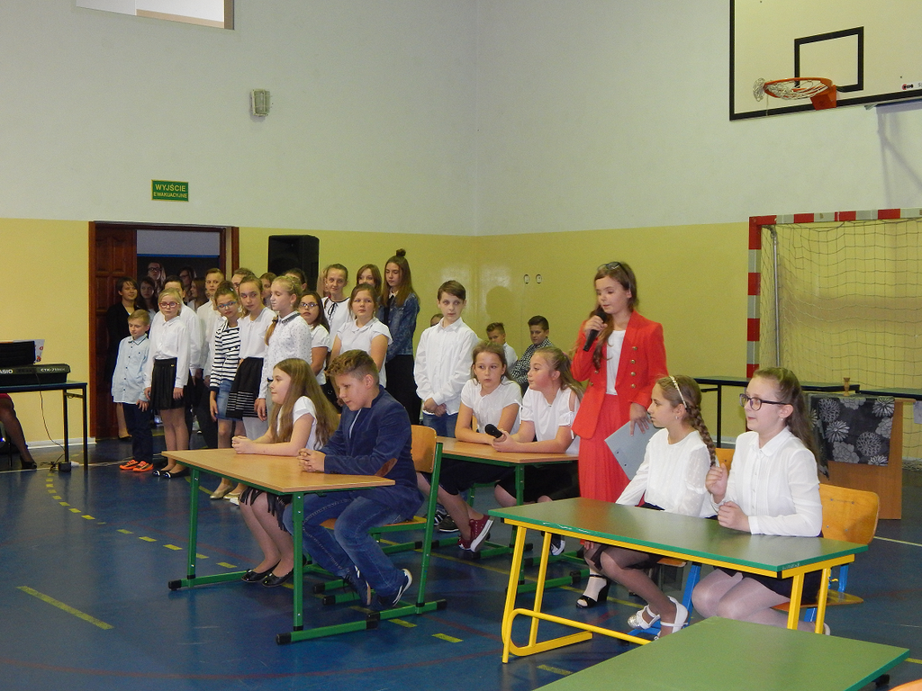 Kolejnym punktem uroczystości było przedstawienie przygotowane przez p. Elżbietę Manowiecką oraz p. Lidię Podwysocką - Leśniak. Występ obejmował humorystyczne widowisko oraz wiele piosenek śpiewanych przez chór i wybranych uczniów.