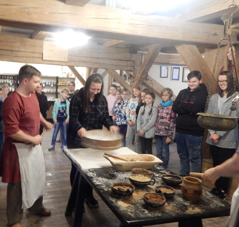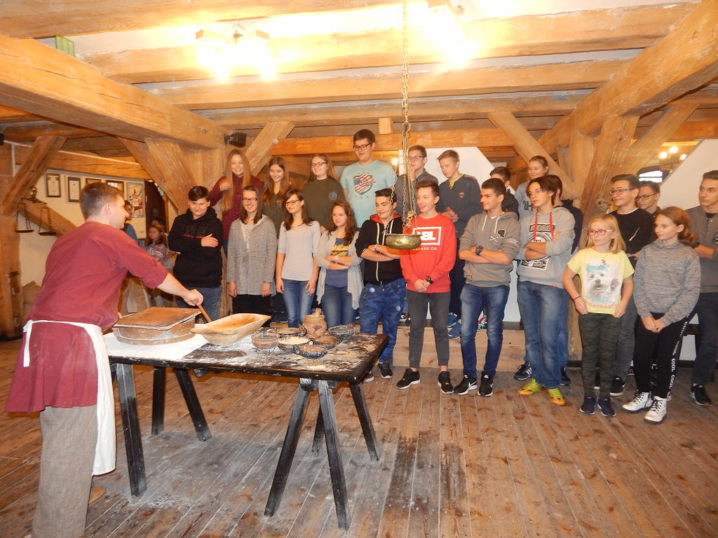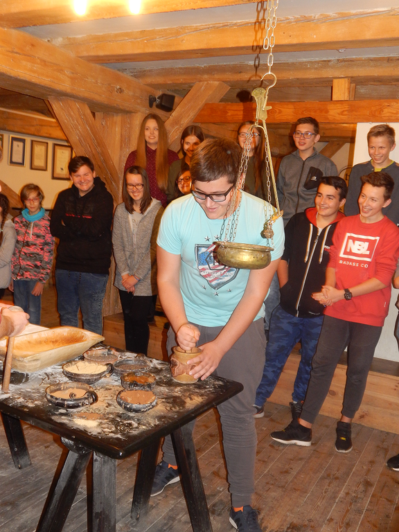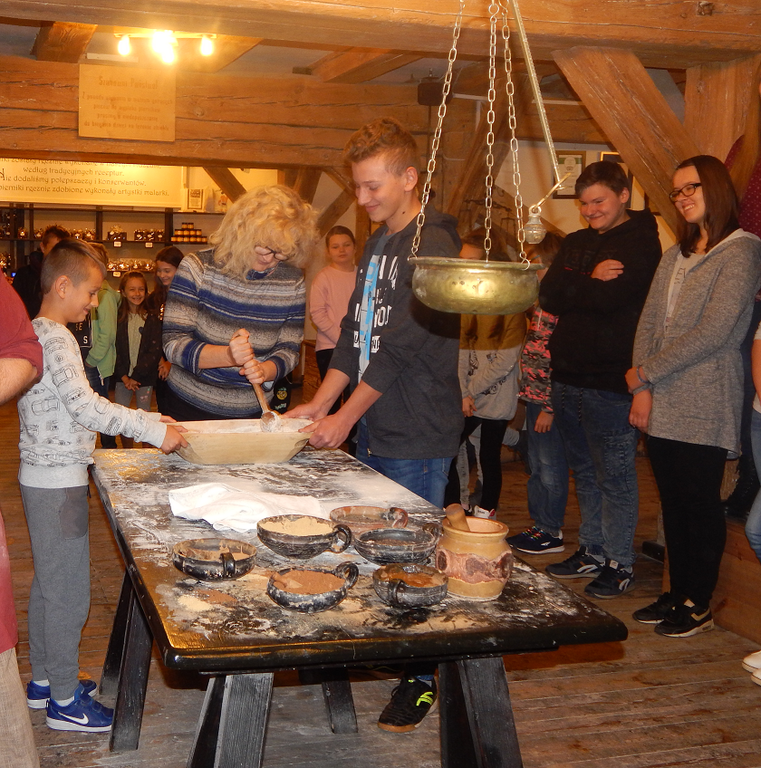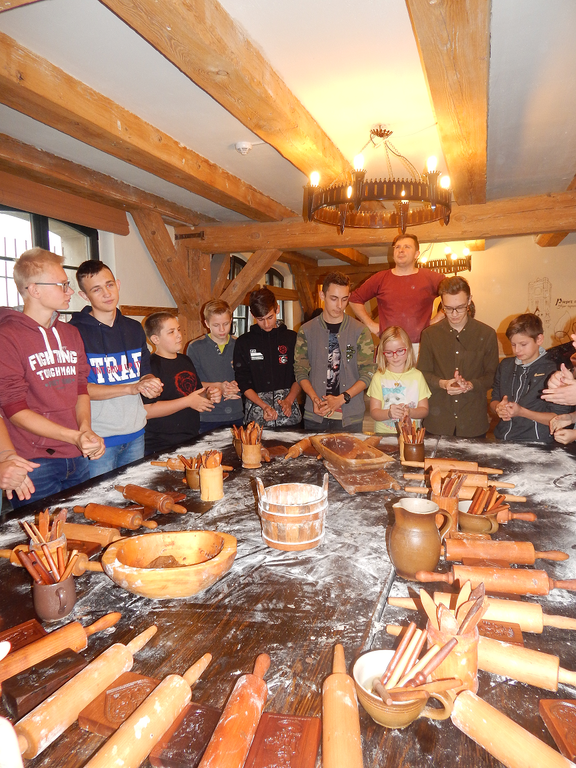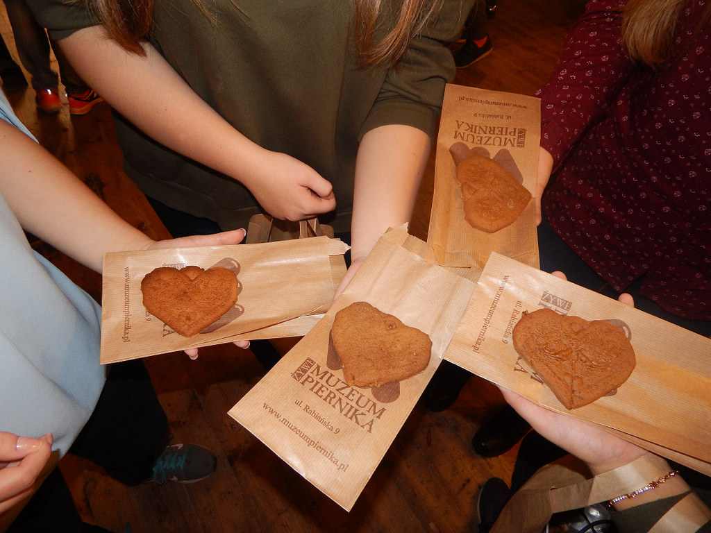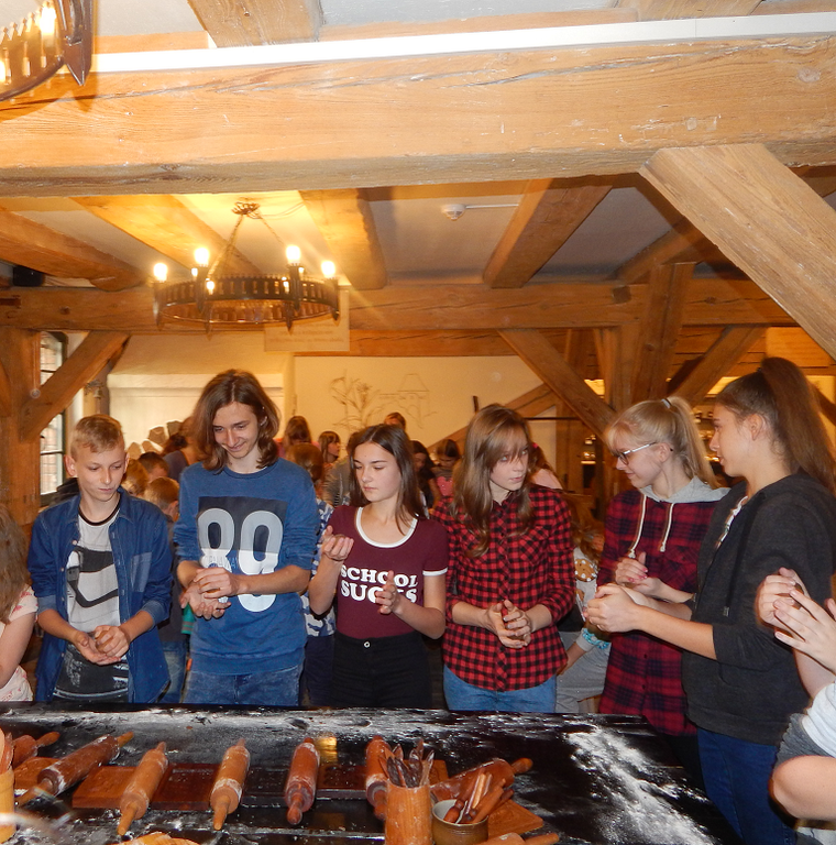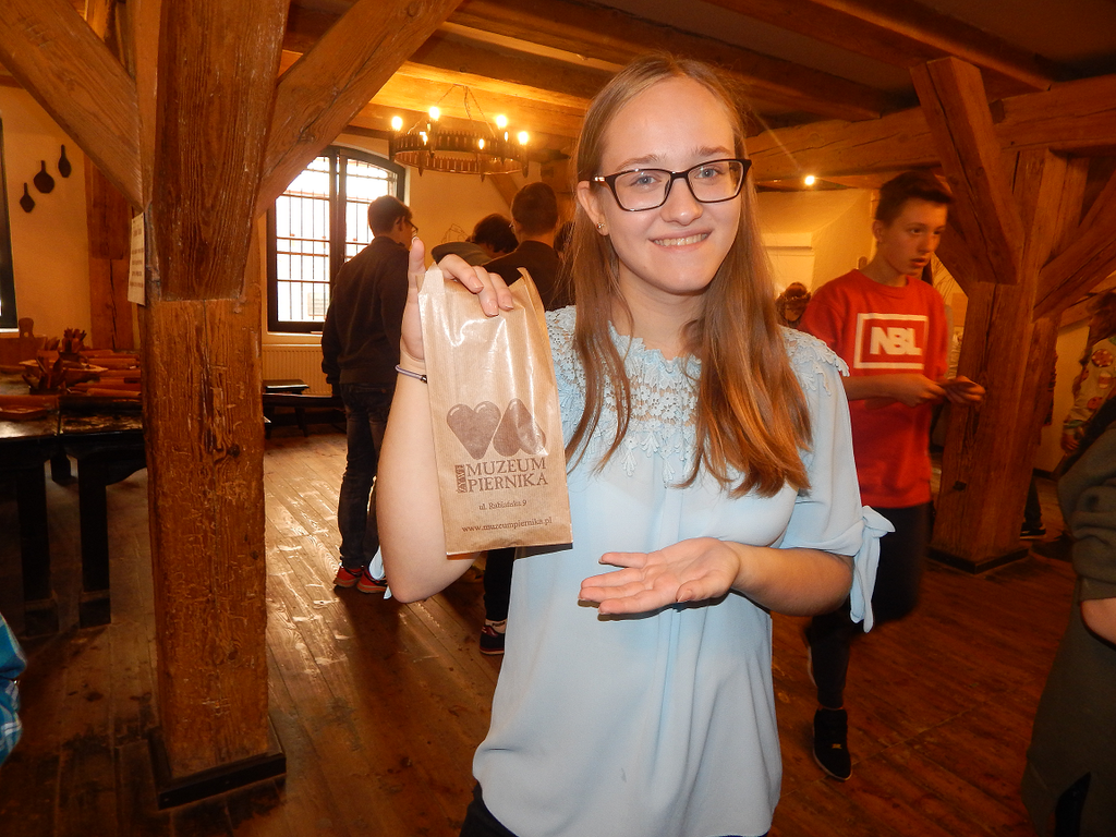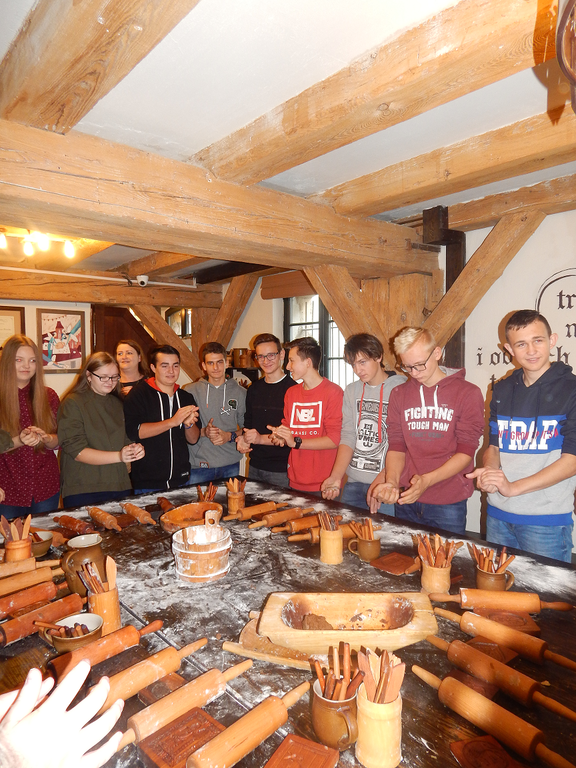 Pierwszym punktem na trasie wycieczki była wizyta w Żywym Muzeum Piernika. Uczestnicy wyjazdu obejrzeli sposób wyrobu toruńskiego specjału według receptury sprzed 500 lat, a następnie sami wzięli udział w procesie jego wytwarzania. Na pamiątkę wizyty każdy uczeń otrzymał swojego piernika oraz certyfikat.