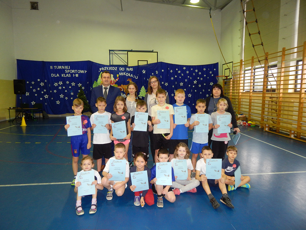 Po podziale klas na trzy drużyny (żółta, czerwona, zielona) i zaprezentowaniu okrzyków sportowych np."My się nie damy, my się nie damy, bo my wygramy" rozpoczęto rozgrywki sportowe. Zespoły rywalizowały w różnych konkurencjach sportowych nawiązujących do świąt Bożego Narodzenia m.in. przechodziły przez komin oraz udawały zaprzęgi św. Mikołaja. Pierwsze miejsce zajęła drużyna czerwonych uzyskując 25 punktów. Wszyscy uczniowie otrzymali słodkie upominki, a zwycięska drużyna również dyplomy.