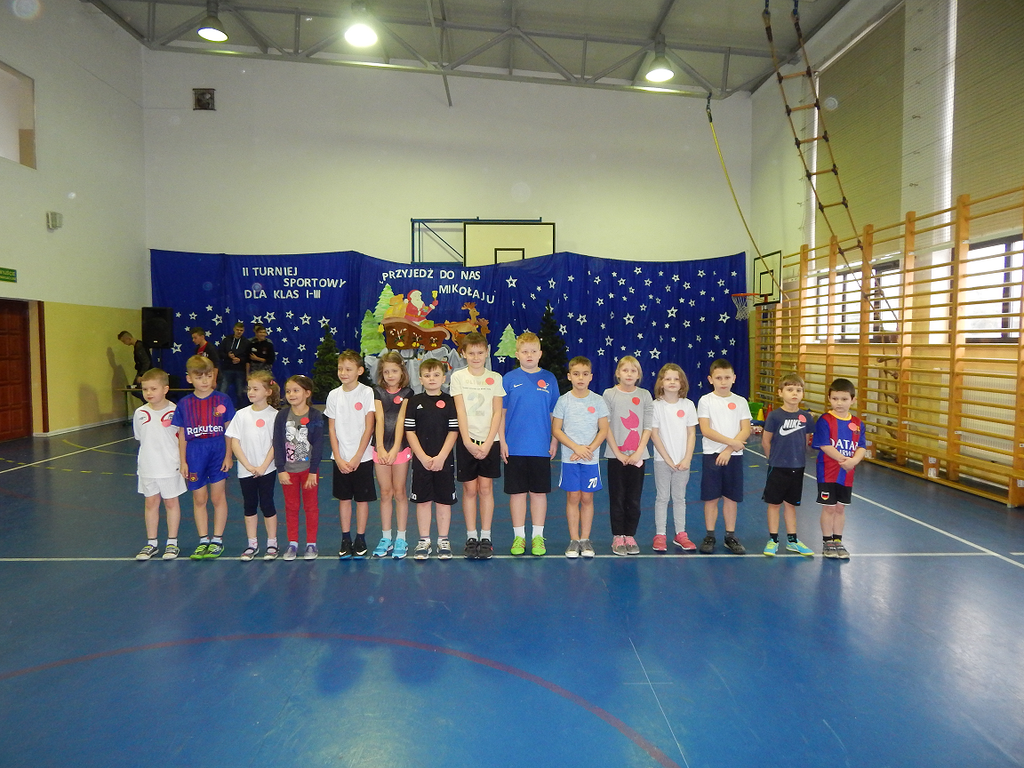 W dniu 21 grudnia 2017 roku odbył się w naszej szkole turniej sportowy dla klas I - III szkoły podstawowej pt. "Przyjedź do nas Mikołaju". Celem zawodów było poznanie i przestrzeganie zasad zdrowej rywalizacji sportowej.