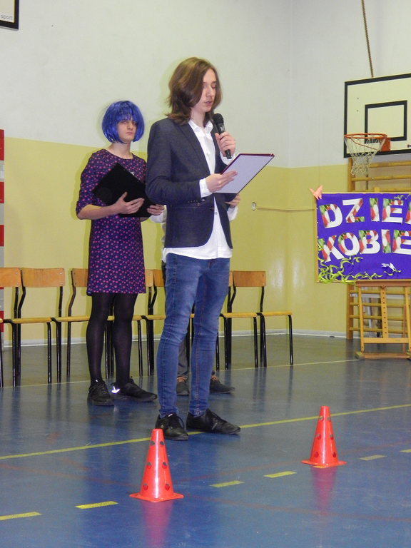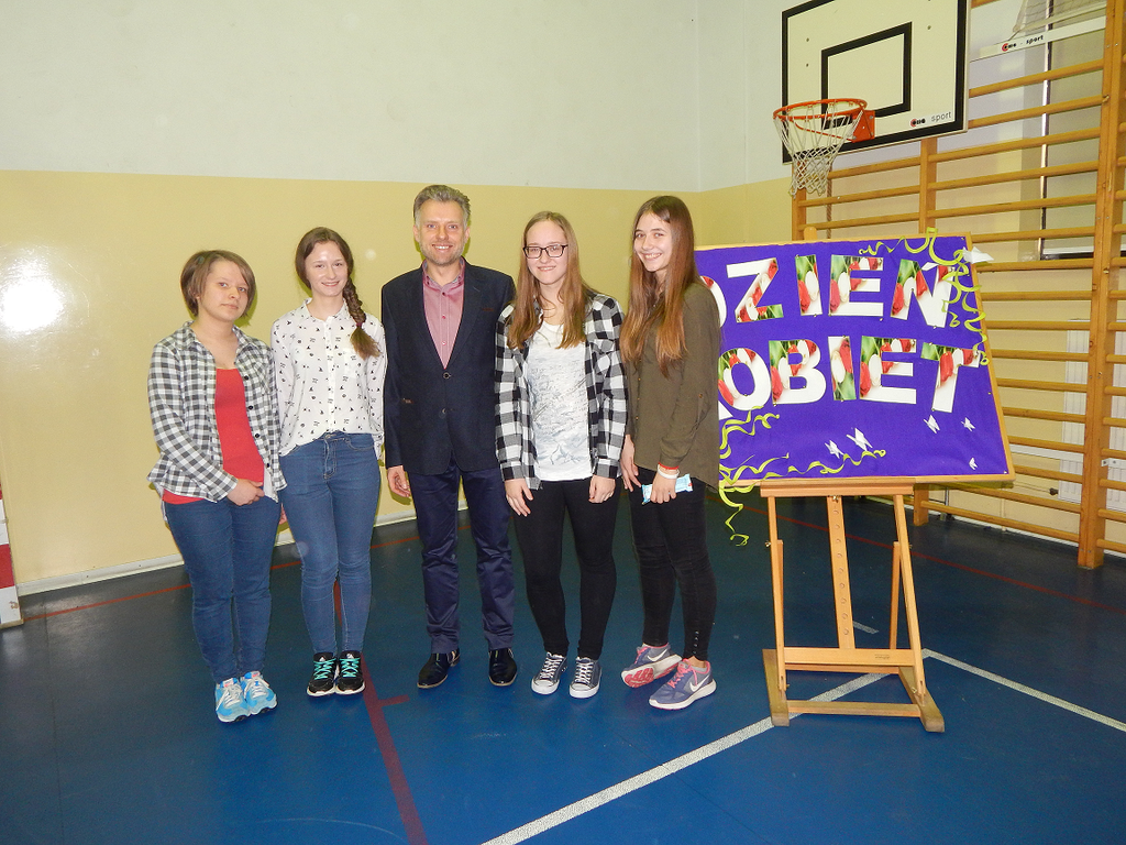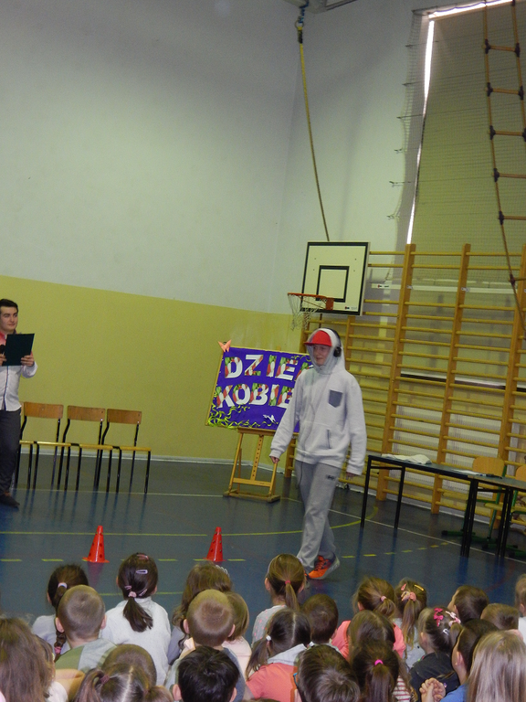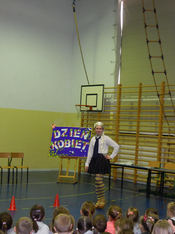 W dniu 8 marca w naszej szkole obchodziliśmy uroczyście Miedzynarodowy Dzień Kobiet. Chłopcy z Samorządu Uczniowskiego przygotowali krótkie wystąpienie na sali gimnastycznej, podczas którego dyrektor szkoły p. Mariusz Muszyński, wicedyrektor p. Mariusz Bazylak oraz przedstawiciel SU Alan Bieliński złożyli życzenia wszystkim paniom i dziewczynkom. Następnie chłopcy dokonali prezentacji róźnych typów kobiet, wsród których znalazła się SPORTSMENKA, KOKIETKA, KUMPELA oraz FEMINISTKA. Na sam koniec odbyły się wybory na miss szkoły z klas podstawowych i gimnazjum. Kandydatki musiały wziąć udział w wielu zabawnych konkurencjach m.in. slalom z jajkiem na łyżce, wiązanie krawata. Miss szkoły w kategorii klas I - VII SP została Aleksandra Pawlicka, zaś w kategorii klas II - III Gimnzajum Zuzanna Gawrzydek.