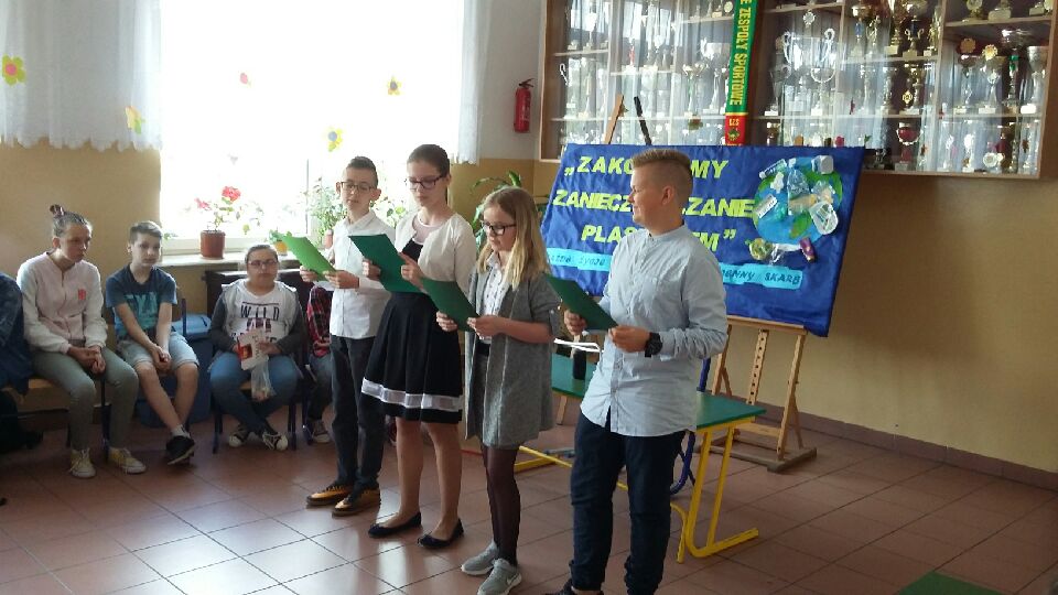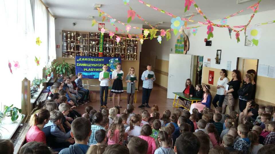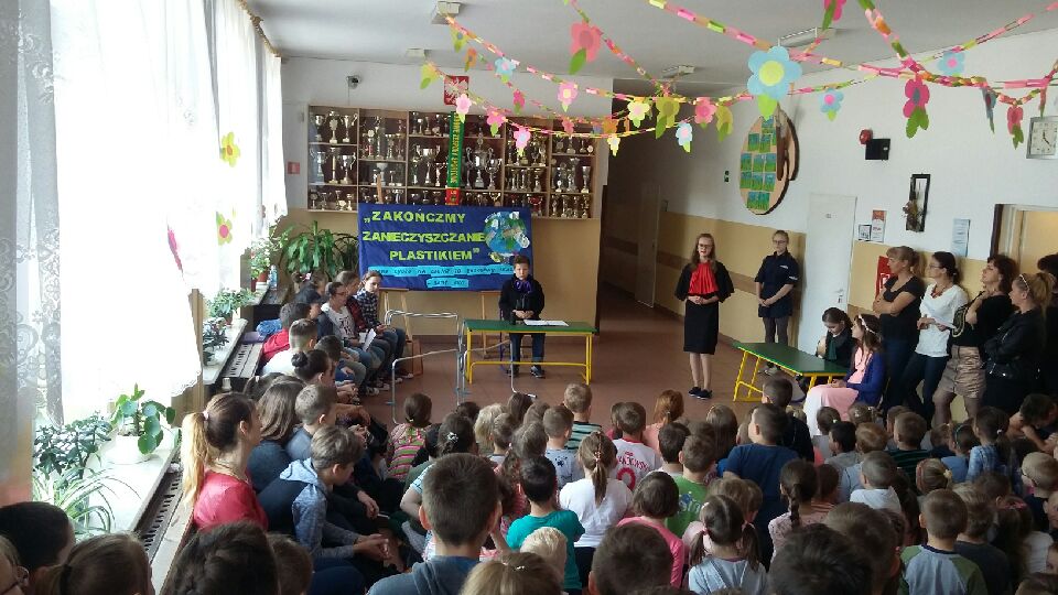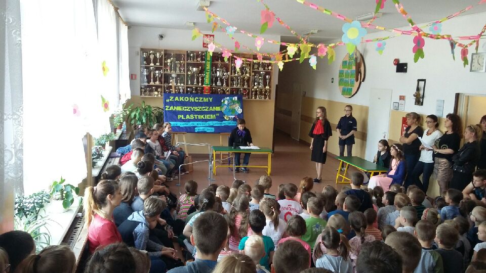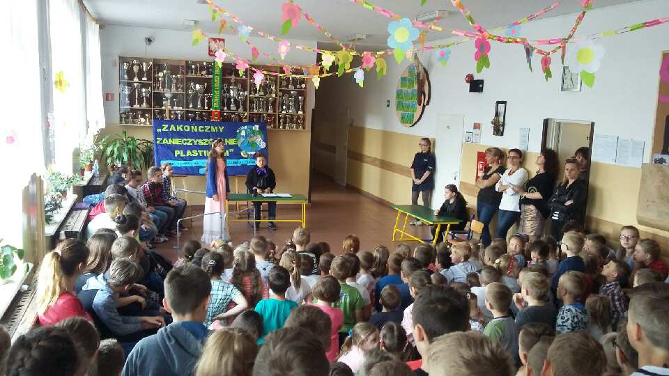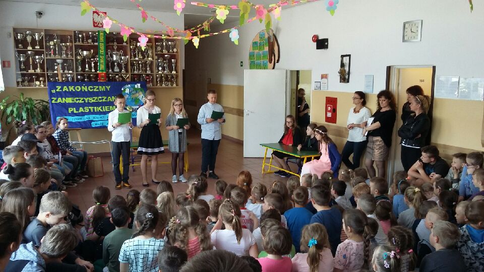 W miniony piątek w naszej szkole odbyły się uroczyste obchody Dnia Ziemi, który w tym roku szkolnym przypadł w niedzielę. Uczniowie przypomnieli, jak ważne jest segregowanie śmieci oraz używanie toreb wielorazowego użytku. Pod czujnym okiem pani Elżbiety Manowieckiej oraz Anny Guzek dzieci wymieniły szkody jakie rokrocznie w powietrzu, wodzie i glebie wyrządza plastik, zaś dzięki teatrzykowi o Matce Naturze dowiedzieć się mogliśmy, co dzieje się z przyrodą, która jest przez nas zanieczyszczana. Na koniec ogłoszony został konkurs opatrzony tym samym hasłem, które przyświecało całości przedsięwzięcia: Zakończmy zanieczyszczanie plastikiem. W konkursie mogą wziąć udział uczniowie klas 0, 1-3 oraz 4-6. Życzymy powodzenia!