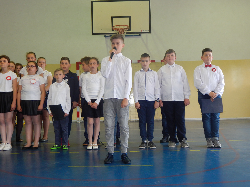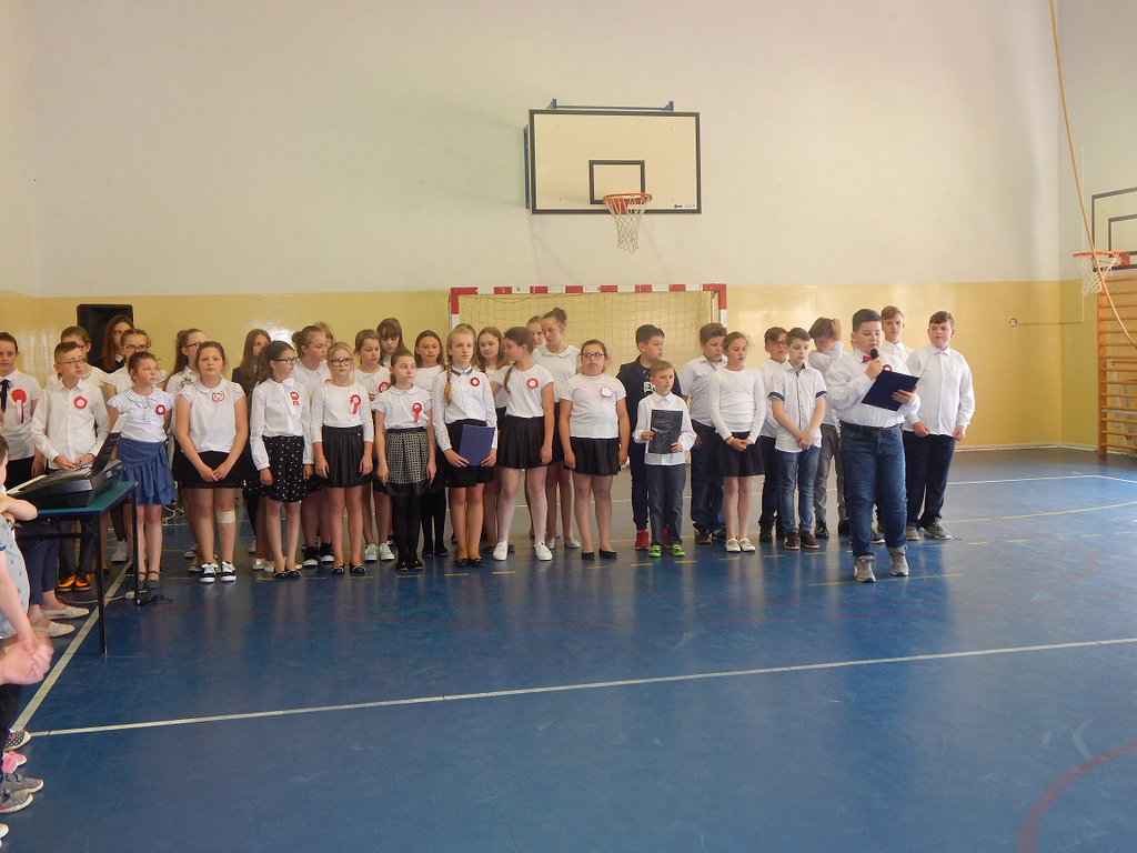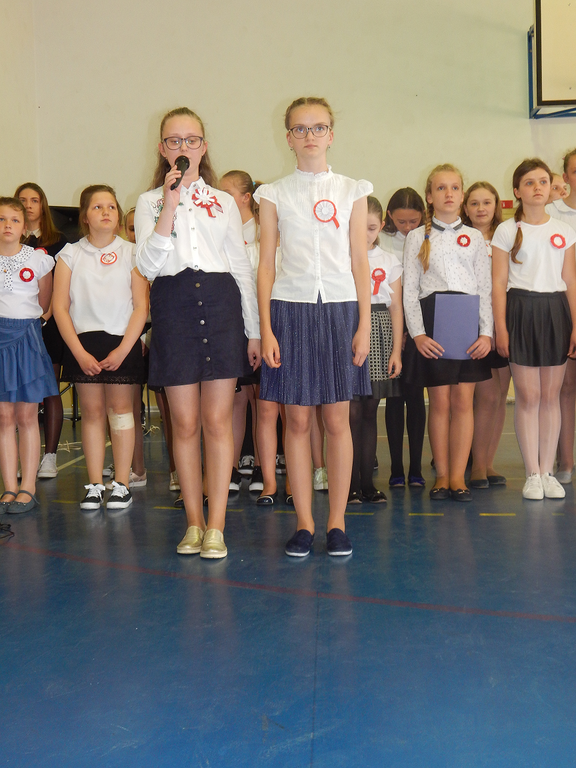 W dniu 2 maja w naszej szkole obchodziliśmy 227 rocznicę uchwalenia Konstytucji 3 Maja. Z tej okazji uczniowie zaprezentowali montaż słowno - muzyczny, w którym przypomnieli najważniejsze wydarzenia związane z obradami Sejmu Wielkiego i Konstytucji 3 Maja. Recytatorzy i chór podczas swoich występów uzmysłowił zgromadzonym jak ważną rolę i znaczenie mają slowa: Ojczyzna, Wolność i Patriotyzm. Nad przygotowaniem i przebiegiem występu czuwały p. Anna Grzyb i p. Lidia Podwysocka - Leśniak.