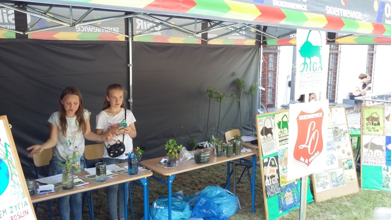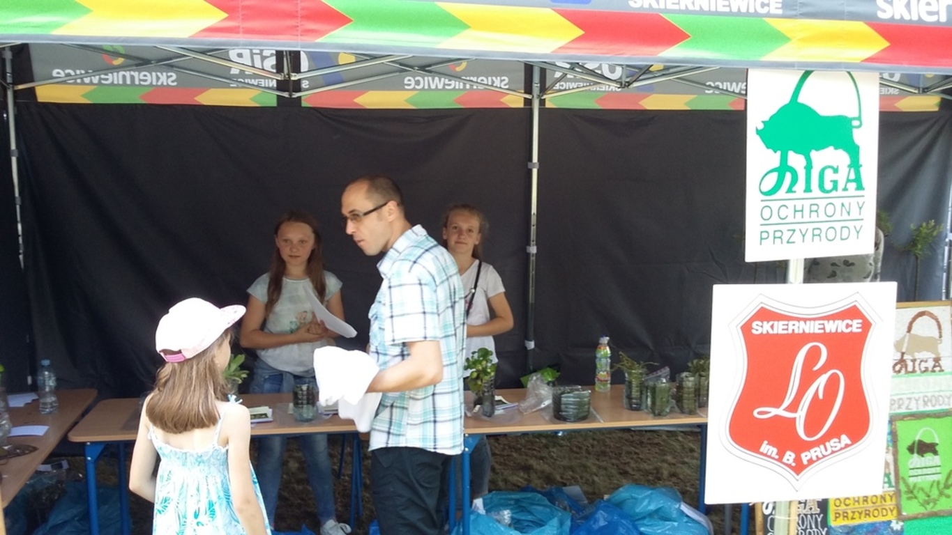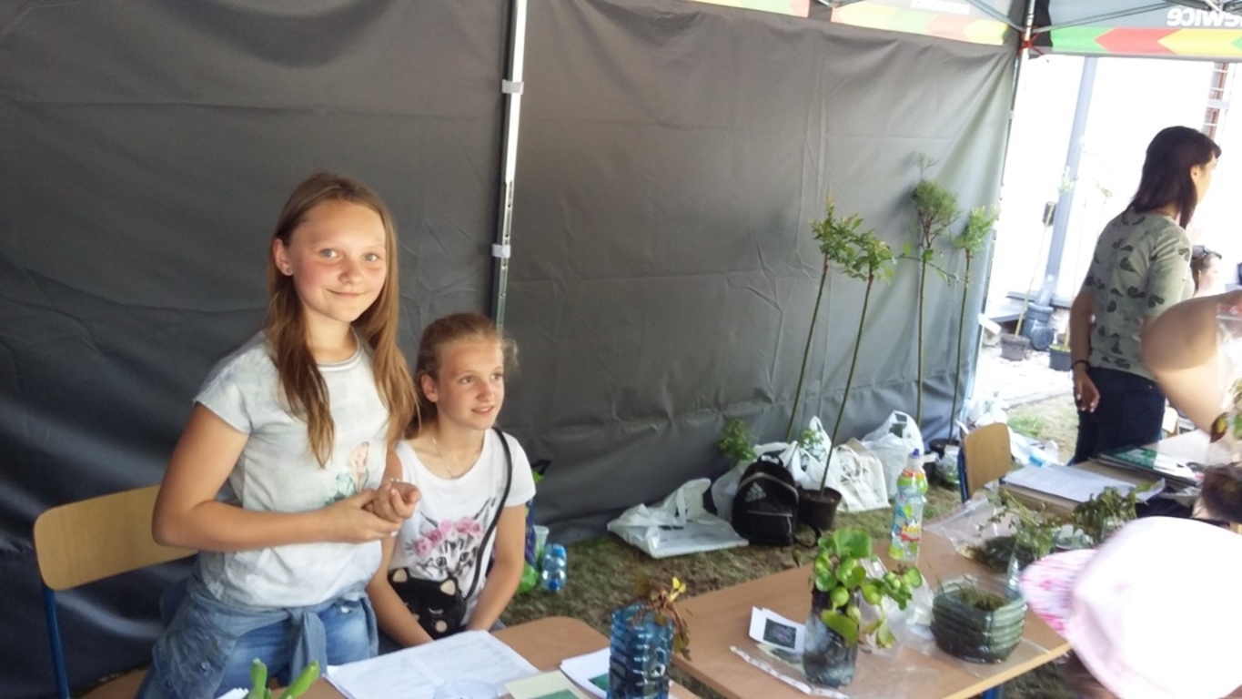W związku z tym nasze uczennice Patrycja K. i Julia I. promowały na stoisku Ligi Ochrony Przyrody treści ekologiczne. Prowadziły konkurs przyrodniczy dla publiczności w zamian za co można było wygrać sadzonki wierzby szczepionej na pniu lub roślinności wodnej takiej jak: