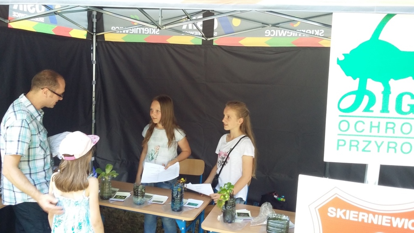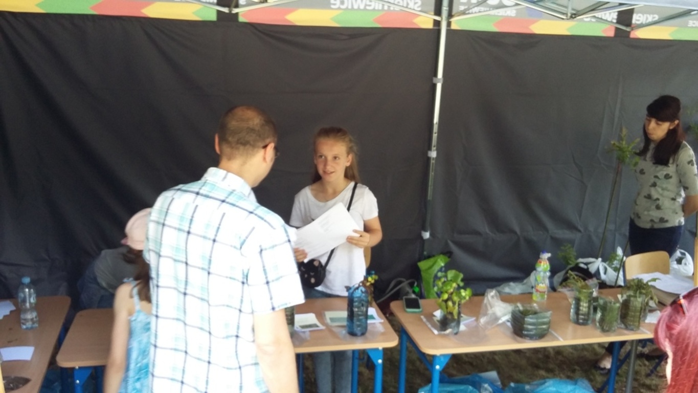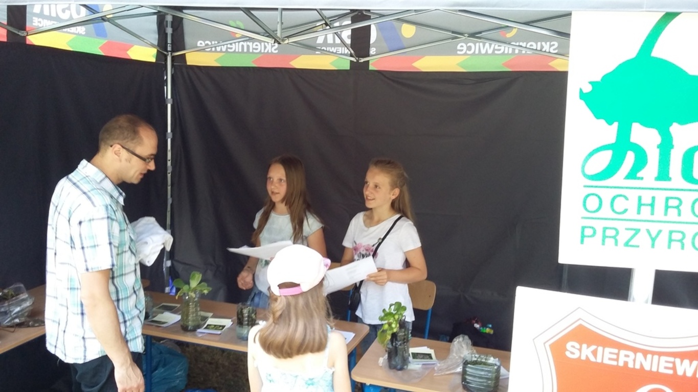 W związku z tym nasze uczennice Patrycja K. i Julia I. promowały na stoisku Ligi Ochrony Przyrody treści ekologiczne. Prowadziły konkurs przyrodniczy dla publiczności w zamian za co można było wygrać sadzonki wierzby szczepionej na pniu lub roślinności wodnej takiej jak: