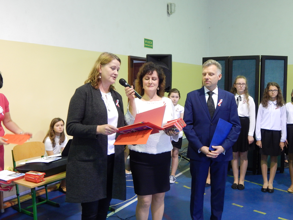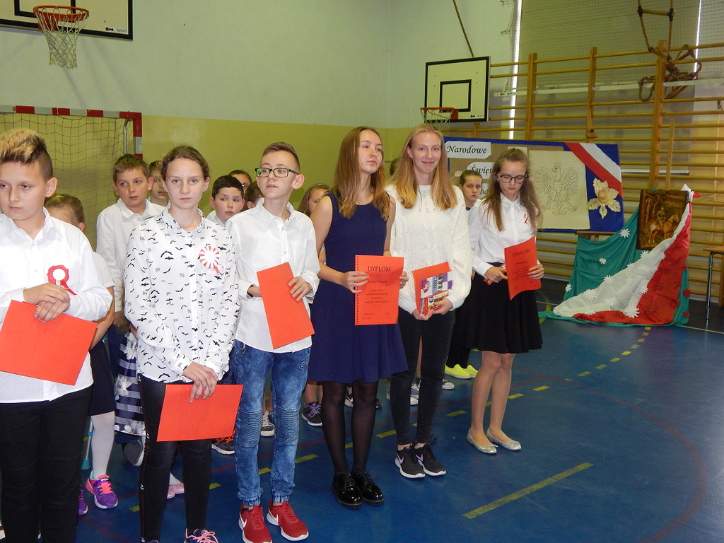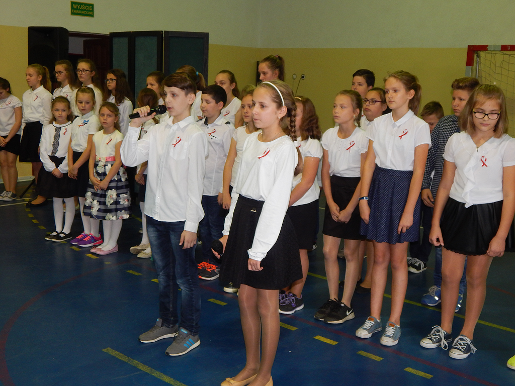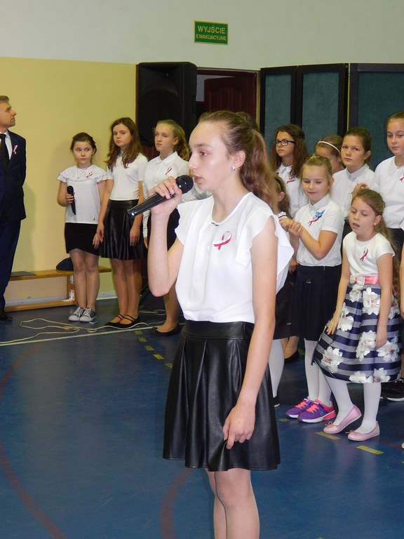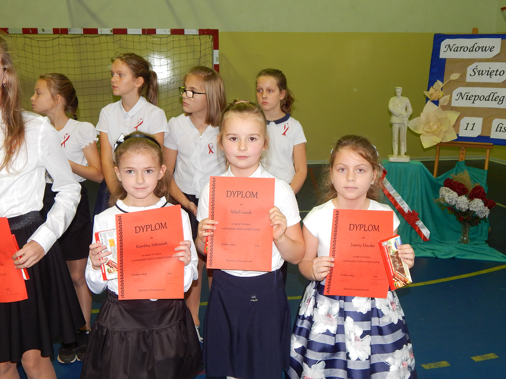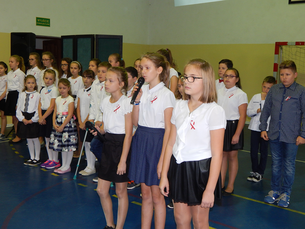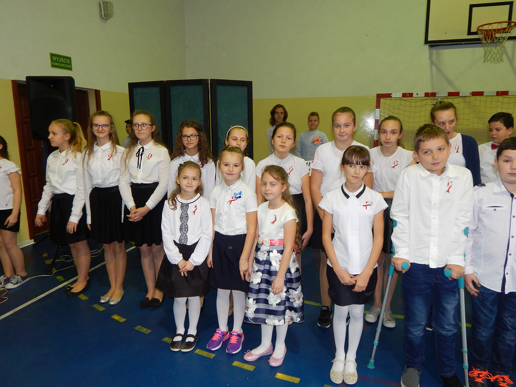 Następnie w tle rozbrzmiały słowa piosenki "Żeby Polska była Polską" i tak rozpoczął się występ artystyczny szkolnego koła teatralnego i chóru. "Żeby Polska była Polską przez 123 lata niewoli walczyły całe pokolenia Polaków. To im od 11 listopada 1918 roku zawdzięczamy wolność, poczucie dumy narodowej, możliwość pielęgnowania polskich tradycji oraz honorowania bohaterów. Dziś ojczyzna oczekuje od nas tego, co najważniejsze - pamięci o jej wielkich synach i miłości do ziemi ojczystej" - recytowała jedna z uczennic. Przedstawienie zakończyło się słowami: "My mamy dziś szczęście dorastać w wolnym kraju. Pamiętamy jednak o tym, że przodkom winniśmy pamięć, a ojczyźnie - miłość".