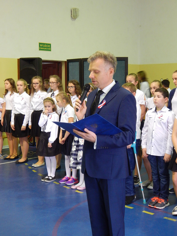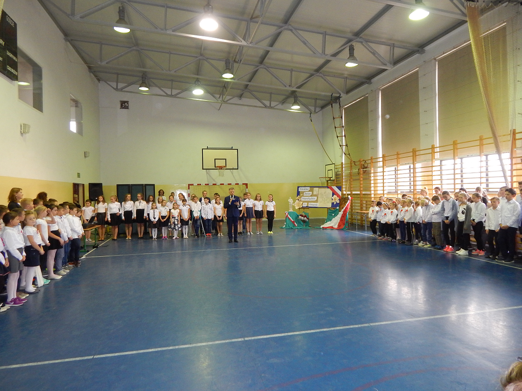 Po pełnym reflekcji przemówieniu dyrektora padła komenta:"BACZNOŚĆ! DO HYMNU!" - po czym wspólnie zaśpiewaliśmy wszystkie zwrotki "Mazurka Dąbrowskiego".