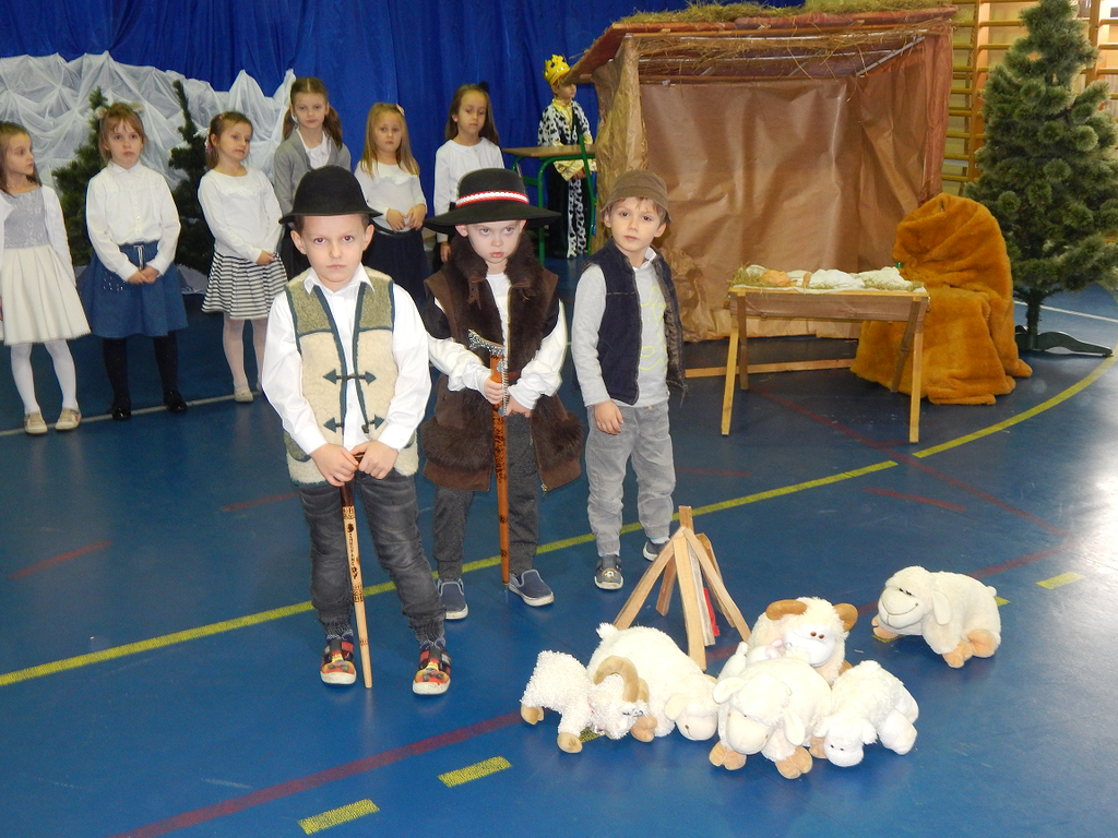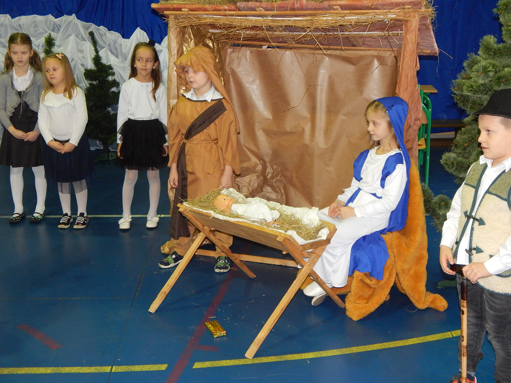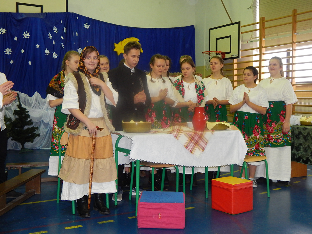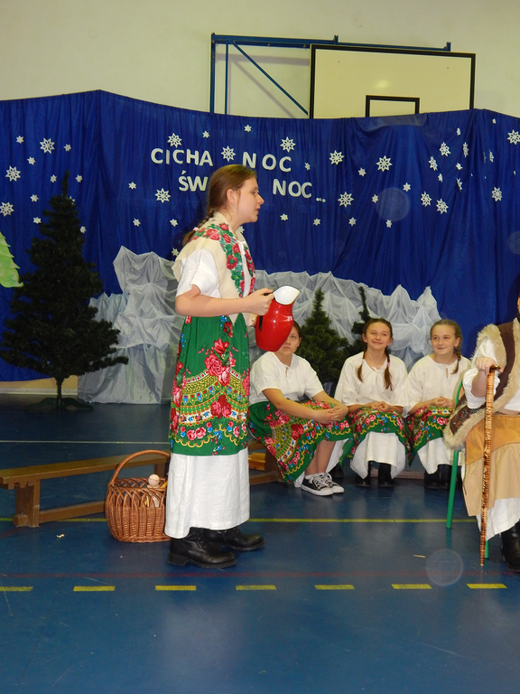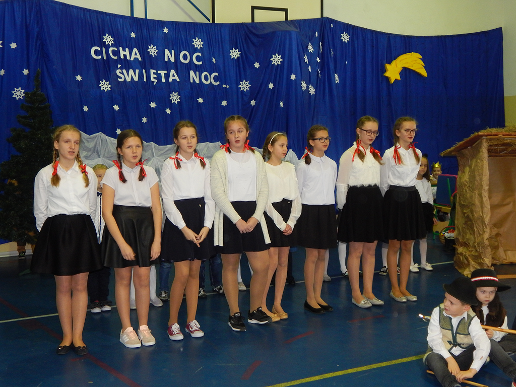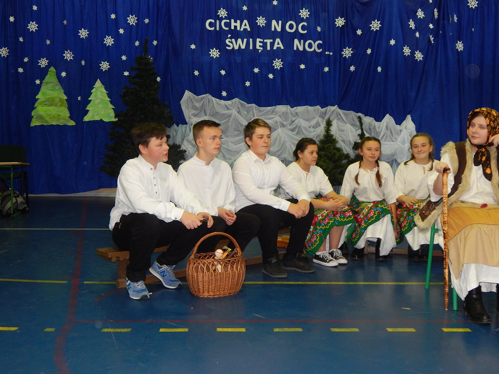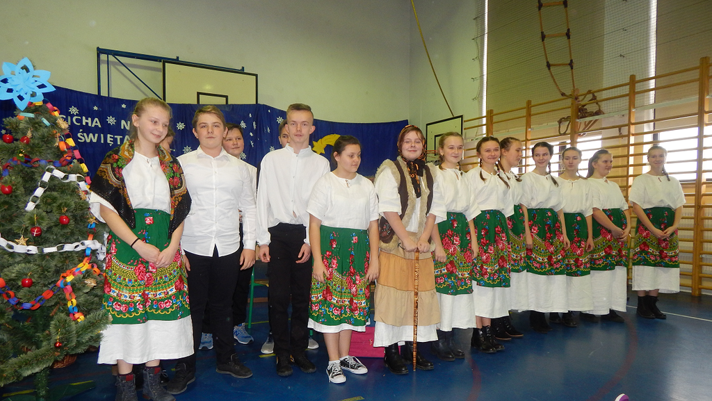 17 grudnia 2018 roku uczniowie, nauczyciele, rodzice, pracownicy oraz zaproszeni goście zostali wprowadzeni w magiczny czas Świąt Bożego Narodzenia. Na szkolnych Jasełkach w rolę artystów wcielili się najmłodsi uczniowie z grupy przedszkolnej „O a” i „O b.” Z radością podziwialiśmy ich aktorskie umiejętności. Natomiast uczniowie klasy ósmej wystąpili w przedstawieniu teatralnym pt. ”Wigilia w Głuchowie”, w którym ukazano pracowity dzień przedświąteczny, przygotowania do wieczerzy, przystrajanie izby, porządkowanie obejścia i gotowanie potraw. Nie zabrakło siana pod obrusem ani snopka zboża w rogu izby. Występ wzbogacili uczniowie zespołu ludowego śpiewając kolędy i pastorałki.