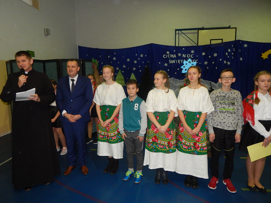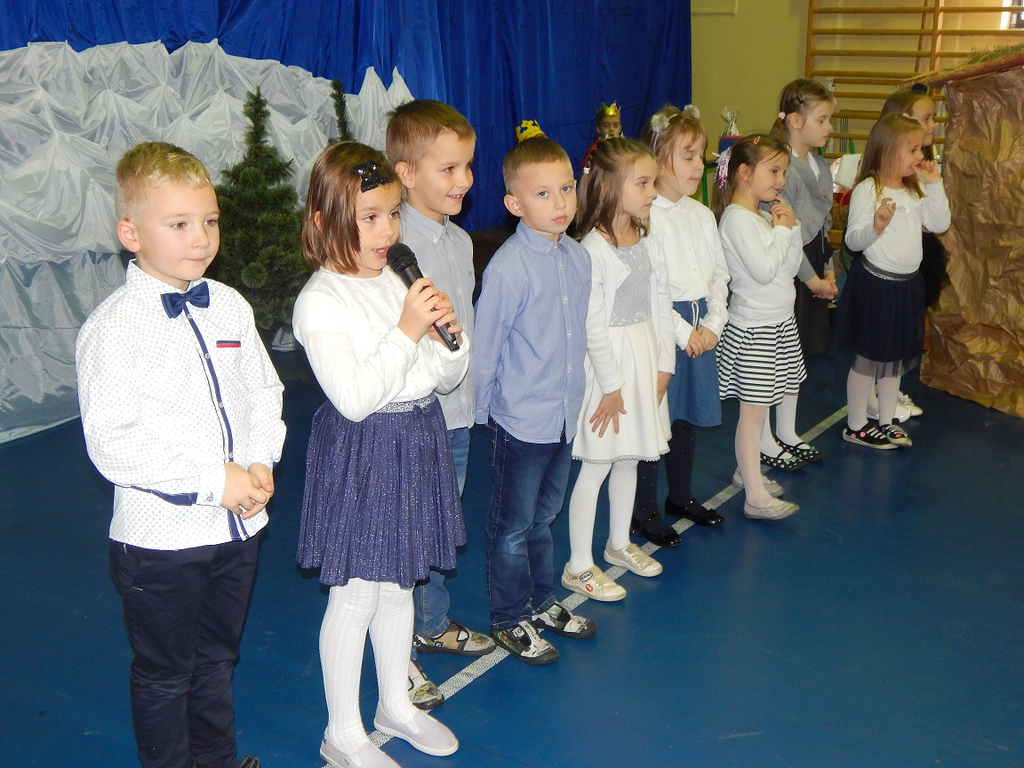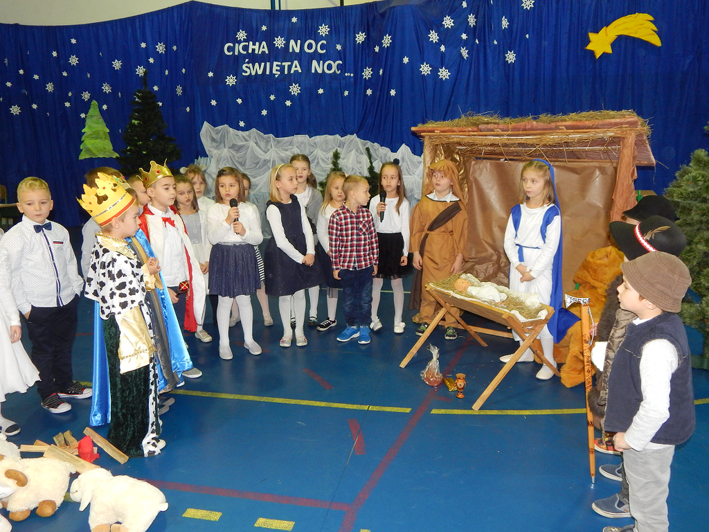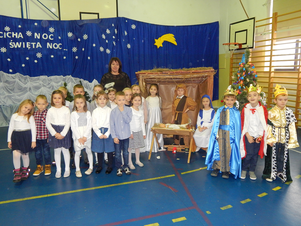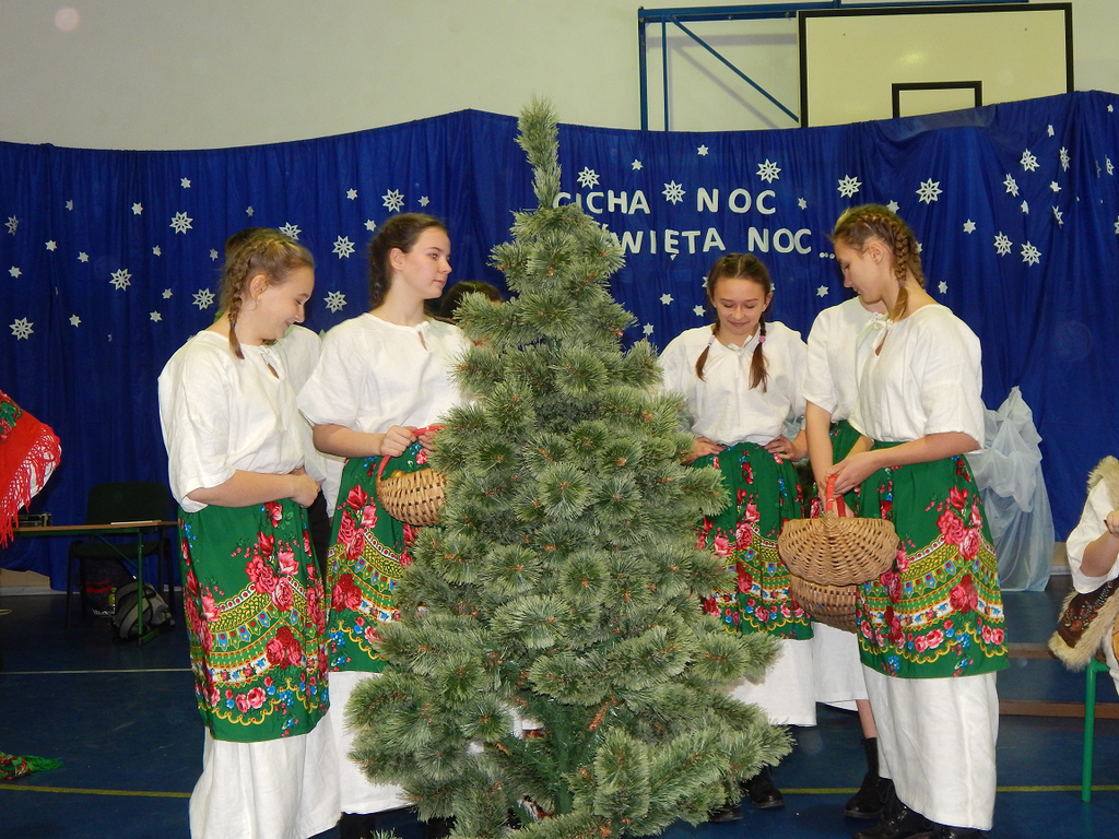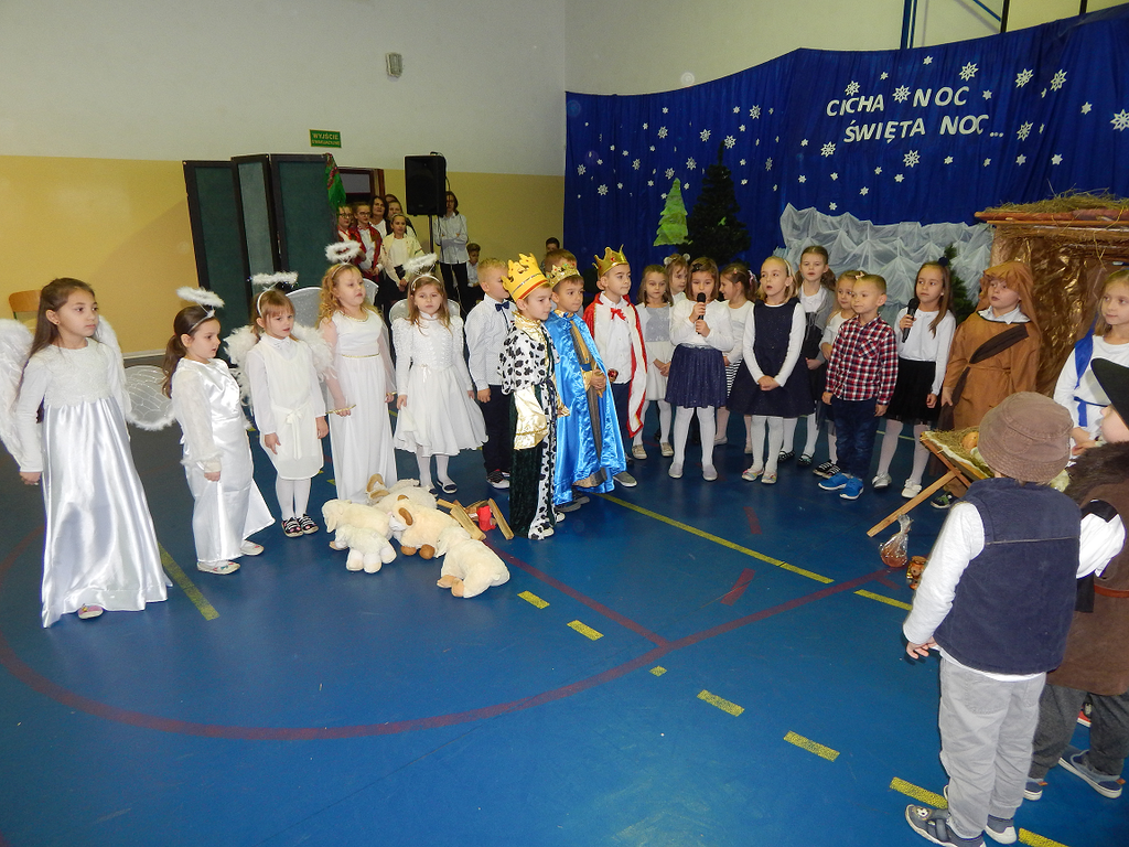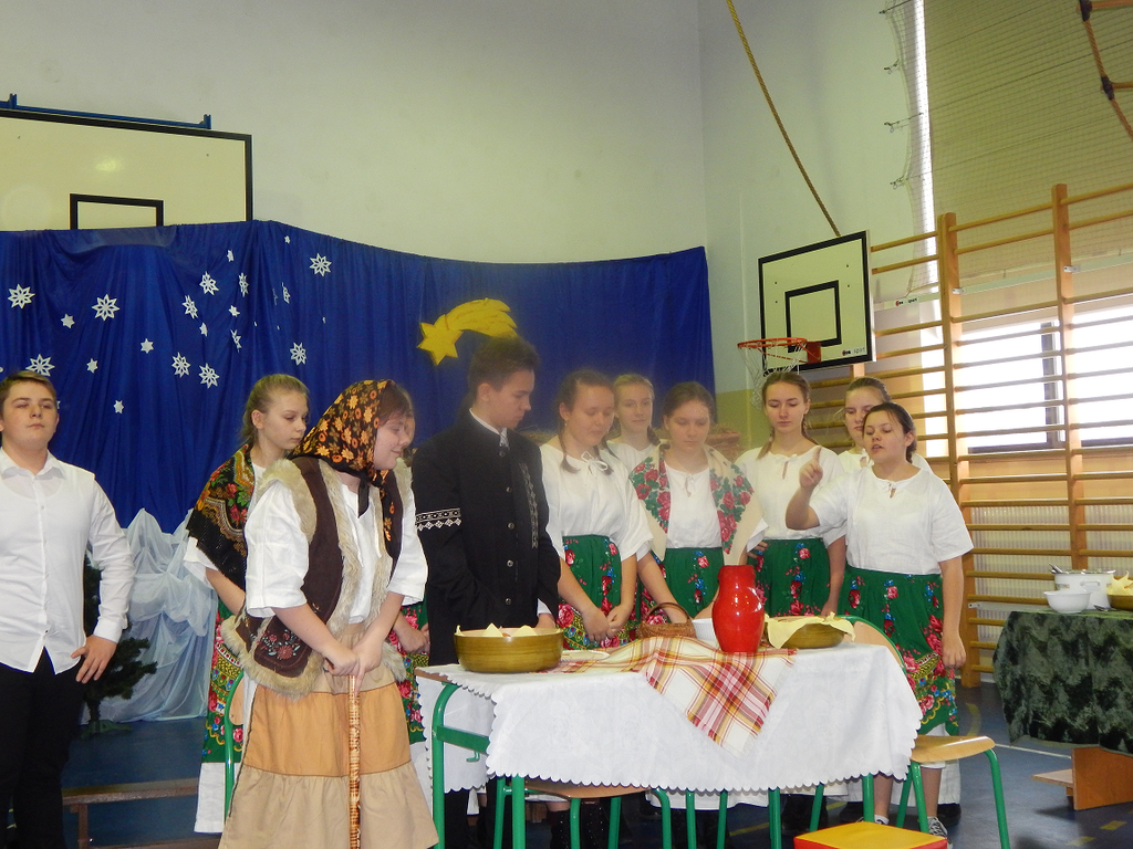 17 grudnia 2018 roku uczniowie, nauczyciele, rodzice, pracownicy oraz zaproszeni goście zostali wprowadzeni w magiczny czas Świąt Bożego Narodzenia. Na szkolnych Jasełkach w rolę artystów wcielili się najmłodsi uczniowie z grupy przedszkolnej „O a” i „O b.” Z radością podziwialiśmy ich aktorskie umiejętności. Natomiast uczniowie klasy ósmej wystąpili w przedstawieniu teatralnym pt. ”Wigilia w Głuchowie”, w którym ukazano pracowity dzień przedświąteczny, przygotowania do wieczerzy, przystrajanie izby, porządkowanie obejścia i gotowanie potraw. Nie zabrakło siana pod obrusem ani snopka zboża w rogu izby. Występ wzbogacili uczniowie zespołu ludowego śpiewając kolędy i pastorałki.