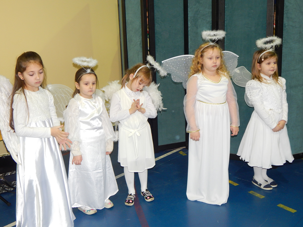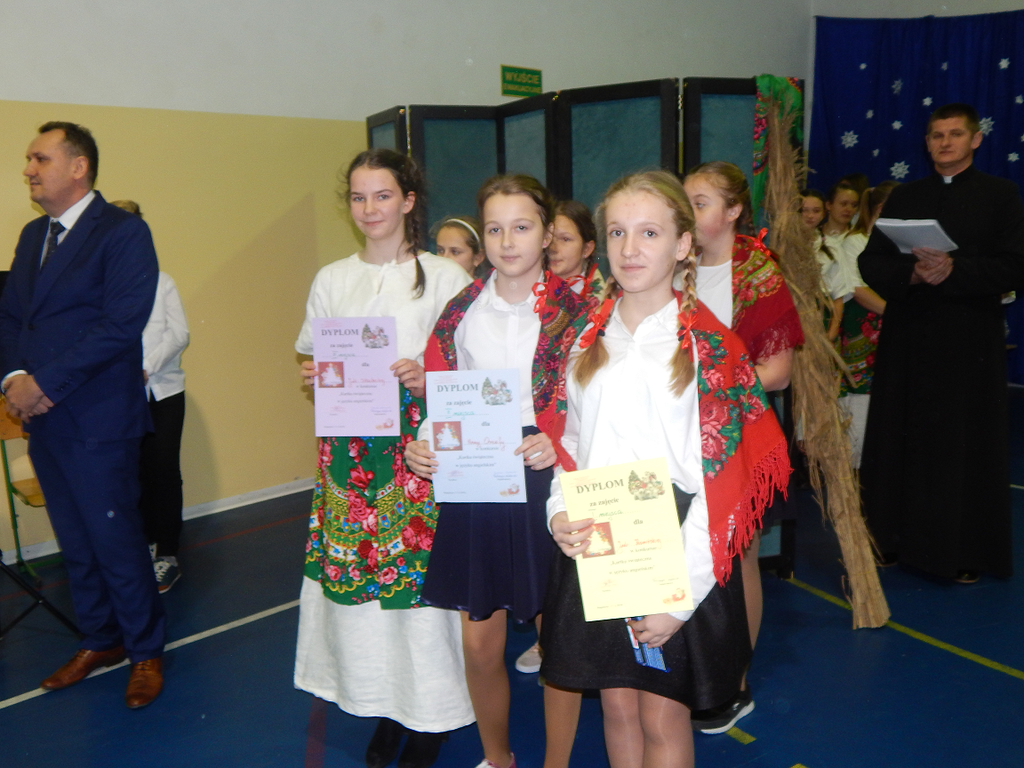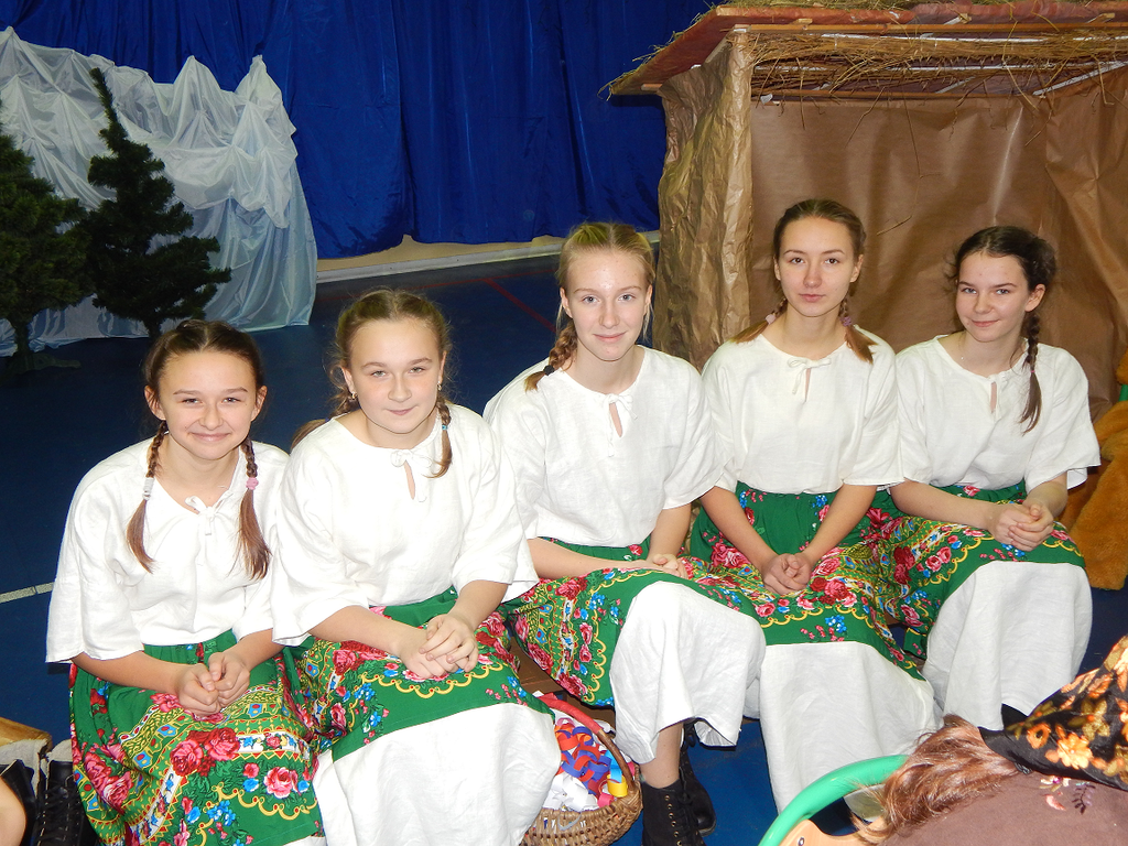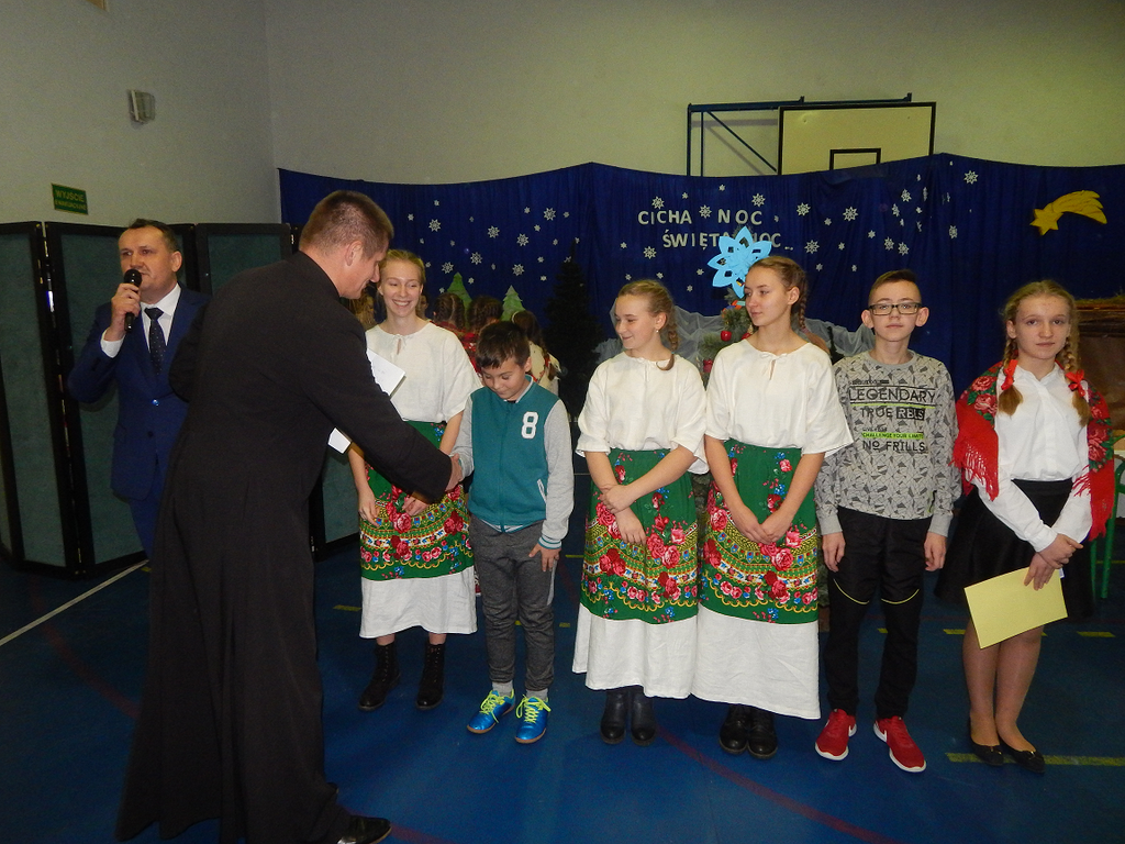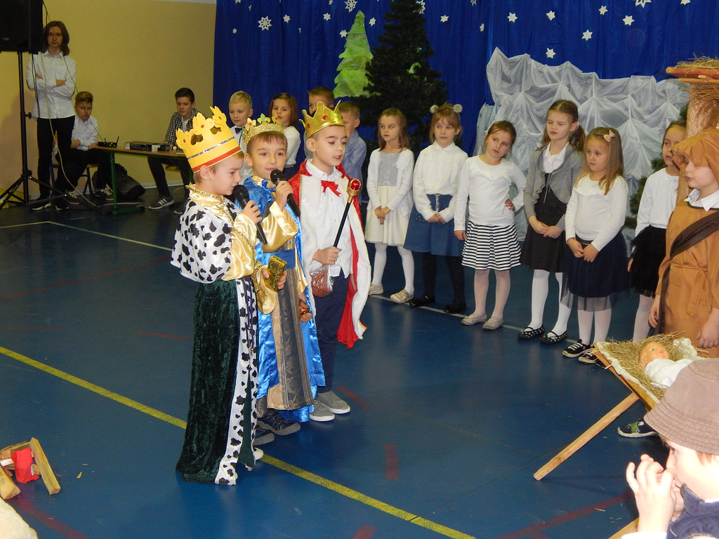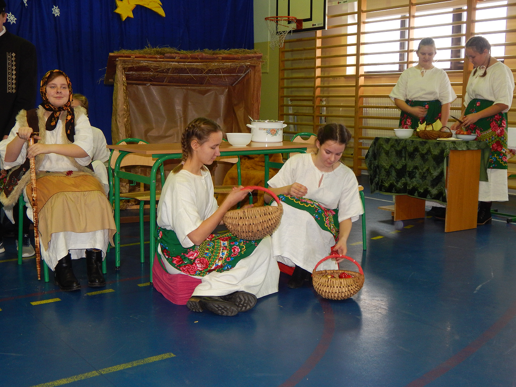 17 grudnia 2018 roku uczniowie, nauczyciele, rodzice, pracownicy oraz zaproszeni goście zostali wprowadzeni w magiczny czas Świąt Bożego Narodzenia. Na szkolnych Jasełkach w rolę artystów wcielili się najmłodsi uczniowie z grupy przedszkolnej „O a” i „O b.” Z radością podziwialiśmy ich aktorskie umiejętności. Natomiast uczniowie klasy ósmej wystąpili w przedstawieniu teatralnym pt. ”Wigilia w Głuchowie”, w którym ukazano pracowity dzień przedświąteczny, przygotowania do wieczerzy, przystrajanie izby, porządkowanie obejścia i gotowanie potraw. Nie zabrakło siana pod obrusem ani snopka zboża w rogu izby. Występ wzbogacili uczniowie zespołu ludowego śpiewając kolędy i pastorałki.