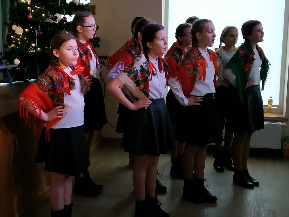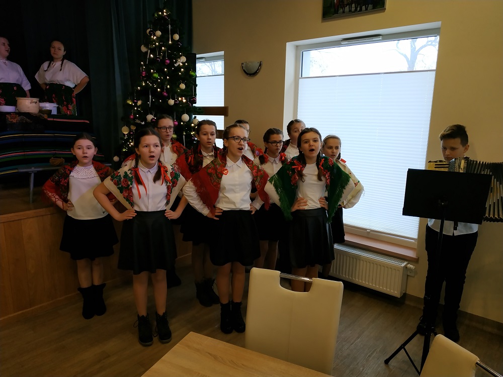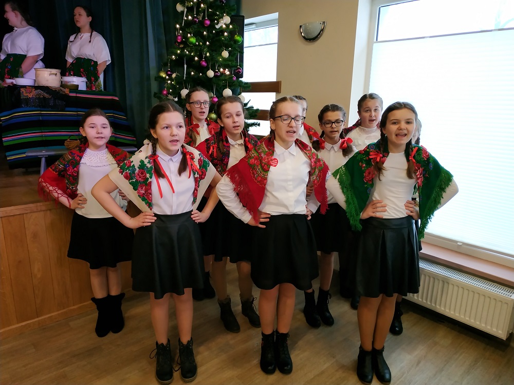 Ósmoklasiści z sekcji teatralnej prowadzonej przez Renatę Lipską i grupa wokalna z klas szóstych nadzorowana przez Lidię Podwysocką-Leśniak zaprezentowali „Wigilię w Głuchowie” na podstawie scenariusza opublikowanego w książce M. J. Hein i D. Dębskiej „U nos w Boguszycach”.