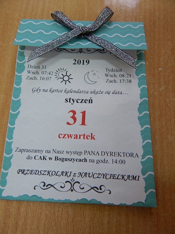 W dniu 31.01.2019r. w Centrum Aktywności Kulturalnej w Boguszycach odbyła się uroczystość z okazji obchodów "Dnia Babci i Dziadka" zorganizowana przez Grupę Przedszkolną ,,0”C mieszczącą się w Szkole Podstawowej w Boguszycach. Na akademie przybyli zaproszeni goście: wicedyrektor SP p. Mariusz Bazylak, liczne grono Babć i Dziadków oraz rodzice naszych pociech. Po serdecznym powitaniu gości przez p. Dyrektora, dzieci pod okiem nauczycielek Marioli Owczarek oraz Olgi Kobierskiej zaprezentowały część artystyczną. Piosenki, wierszyki oraz tańce zostały nagrodzone gromkimi brawami przez uśmiechniętych i wzruszonych dziadków. Po występach przedszkolaki obdarowały zaproszonych gości laurkami po czym wszyscy, wspólnie zasiedli do poczęstunku przygotowanego przez mamy maluchów. To był wyjątkowy dzień pełen uśmiechu i radości. Dziękujemy za wspólnie spędzony czas :)