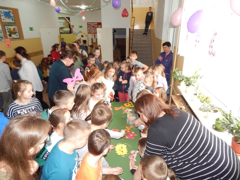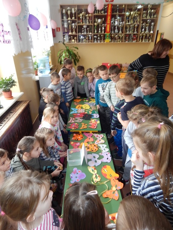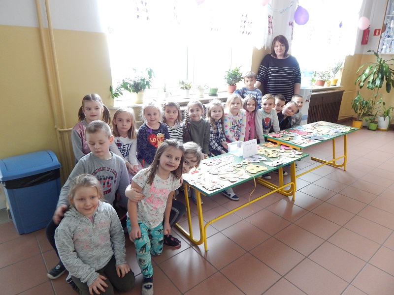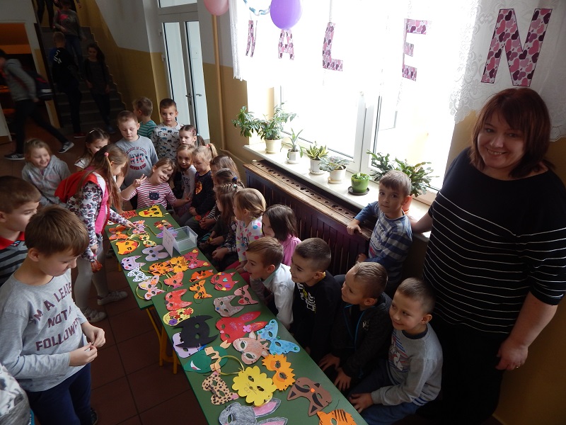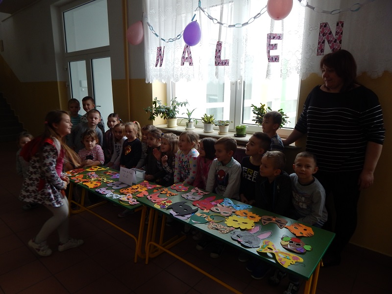 Obecnie zrealizowaliśmy temat „Zarabiamy na sukces”. Po uprzedniej burzy mózgów i owocnej dyskusji „Jak dzieci mogą zarobić pieniądze”, podjęliśmy się wykonania masek karnawałowych i sprzedaży ich na ternie szkoły. Dzieci bardzo zaangażowały się w pracę twórczą. Starały się wykonywać pracę bardzo dokładnie i estetycznie, tak aby produkt nadawał się do sprzedaży. Po wykonaniu masek ustaliliśmy cenę i ogłosiliśmy kiermasz masek na dzień 6 lutego b.r. Kiermasz okazał się wielkim sukcesem – wszystkie maski zostały sprzedane, a my zarobiliśmy pierwsze pieniądze. Po feriach będziemy kontynuować realizację projektu i wspólnie „smakować sukces”.