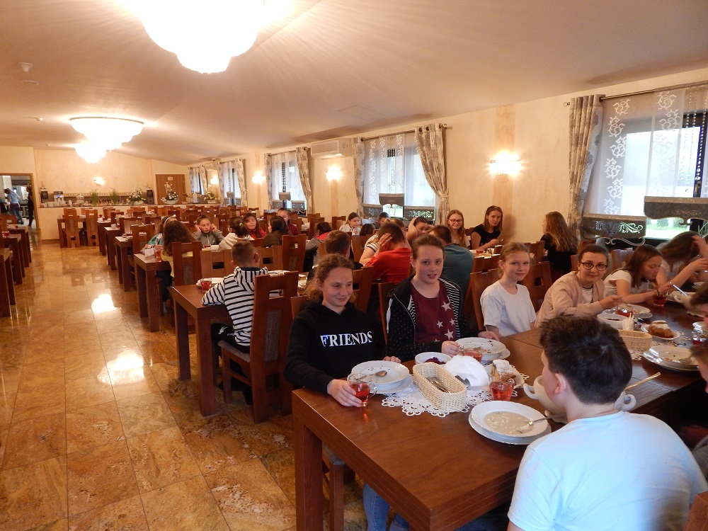Pierwszy dzień rozpoczeliśmy od wiechania wyciągiem na Wielką Kokiew. Pomimo tego, że padało każdy z uczniów bawił się świetnie i przeżywał wrażenia związane z wysokością. Następnie wszyscy z zapałem ruszyli w stronę głównego deptaka Zakopanego-Krupówek. Tam po zjedzeniu pysznych, grillowanych oscypków z żurawiną i wypiciu gorącej herbaty przeszliśmy na stragany po drobne pamiątki. W godzinach popołudniowych zameldowaliśmy się w pięknym, nowoczesnym Ośrodku Wypoczynkowym ,,Limba'' w Poroninie. Po zjedzeniu dwudaniowego obiadu z deserem(pieczone ciasta), rozeszliśmy się do swoich pokoi, aby odpocząć po długiej podróży. Wszyscy przez cały pobyt mieliśmy do dyspozycji serwis herbaciany.