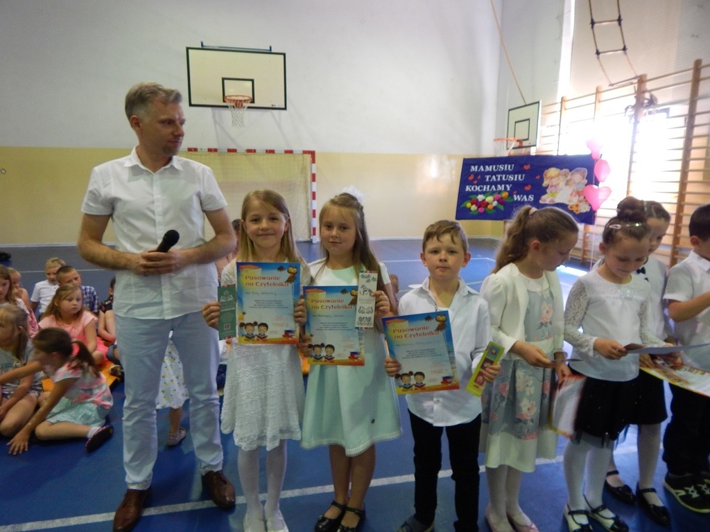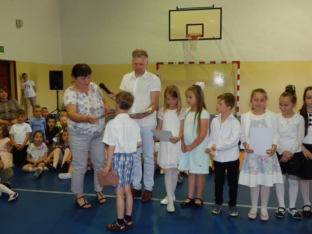 3 czerwca 2019 roku w naszej szkole odbył się coroczny Dzień Rodziny i Dzień Dziecka. O godzinie 11 klasy 0-3 rozpoczęły dzień od zaprezentowania swoich umiejętności recytatorskich podczas przedstawienia dla rodziców oraz uczniów. Trud przygotowań do uroczystej części tego dnia został nagrodzony przez widzów gromkimi brawami. Warto dodać, że również podczas dzisiejszej uroczystości w szeregi czytelników szkolnej biblioteki wstąpili uczniowie klasy I, którzy zostali pasowani tym tytułem. Następnie goście oraz uczniowie biorący udział w imprezie, uczestniczyli w grillu oraz różnych konkurencjach sportowych.