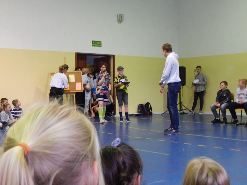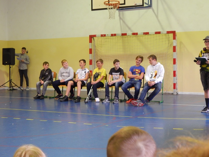 Dnia 30 wzreśnia 2019 roku odbył się w naszej szkole Dzień Chłopaka. Tradycyjnie świętowaliśmy go zabawną akademią, na której dziewczyny przebierały się za mężczyzn. Występy rozpoczęły się życzeniami i pokazem mody. Następnie dla wybranych z poszczególnych klas chłopakaów były do wykonania różne konkurencje, na przykad zrobienie sobie kreski pod okiem lub chodzenie w szpilkach. Najlepszym ,,SUPERCHŁOPAKIEM'' okazał sie Bartek Lewandowski. Wszyscy uczestnicy za wspaniałą akademię otrzymali słodkie upominki.