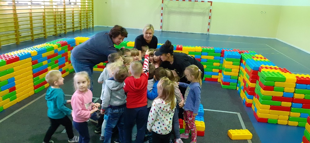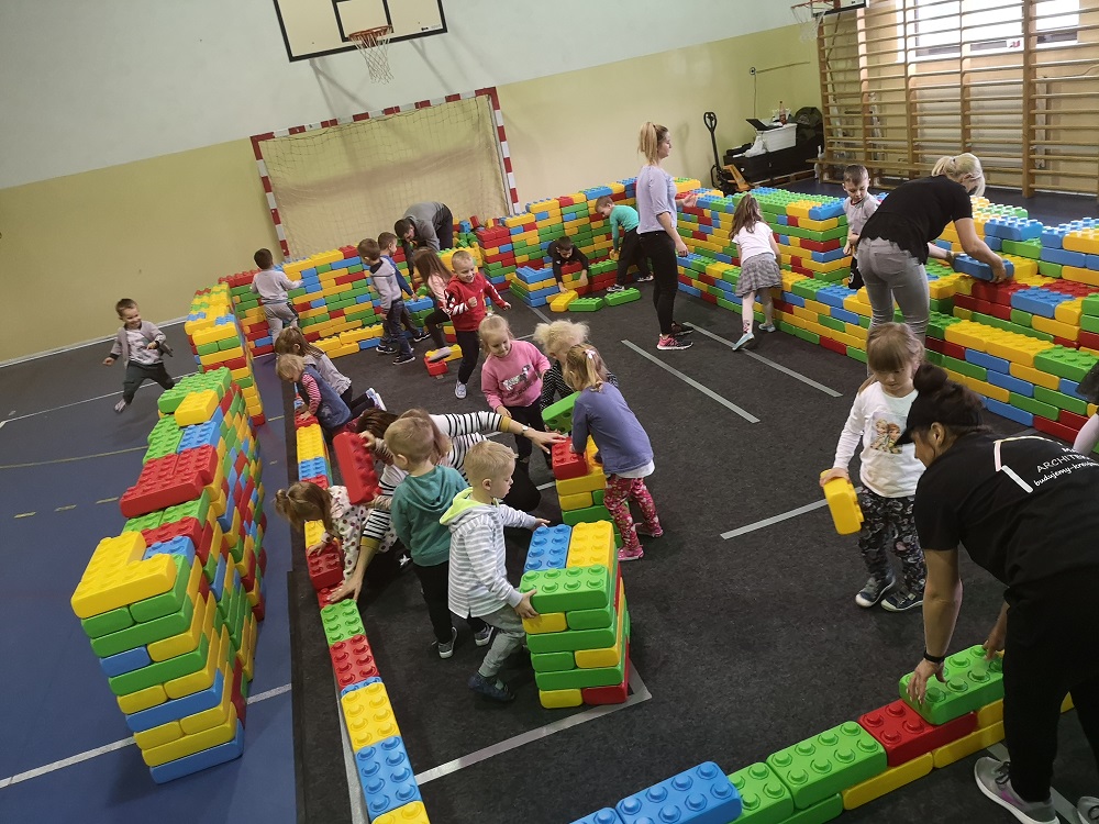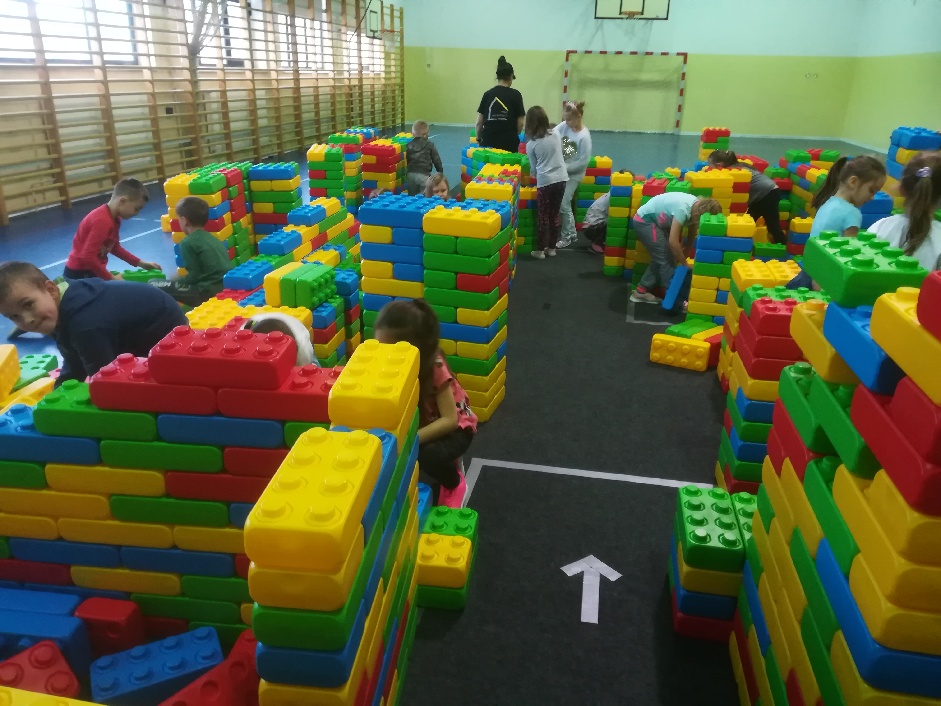 Warsztaty pt. " Mali architekci, budujemy razem" zostały zorganizowane dla dzieci z klas I-lll oraz wszystkich grup przedszkolnych. W zabawie wzięło udział aż 105 dzieci, które świetnie się bawiły, rozwijały wyobraźnię oraz doskonaliły współpracę w grupie. Taki dzień zapada na długo w naszej pamięci. Do zobaczenia za rok.
