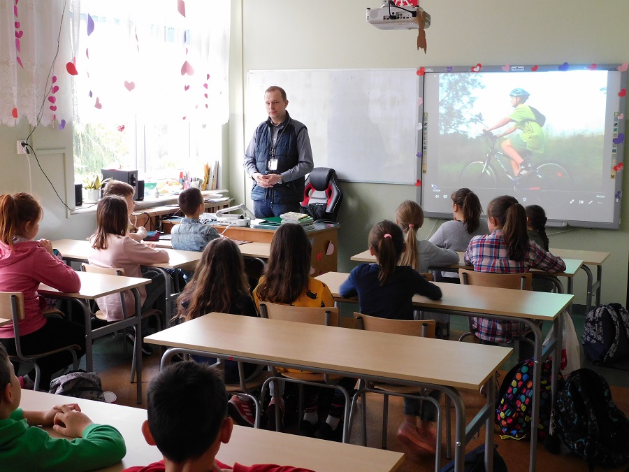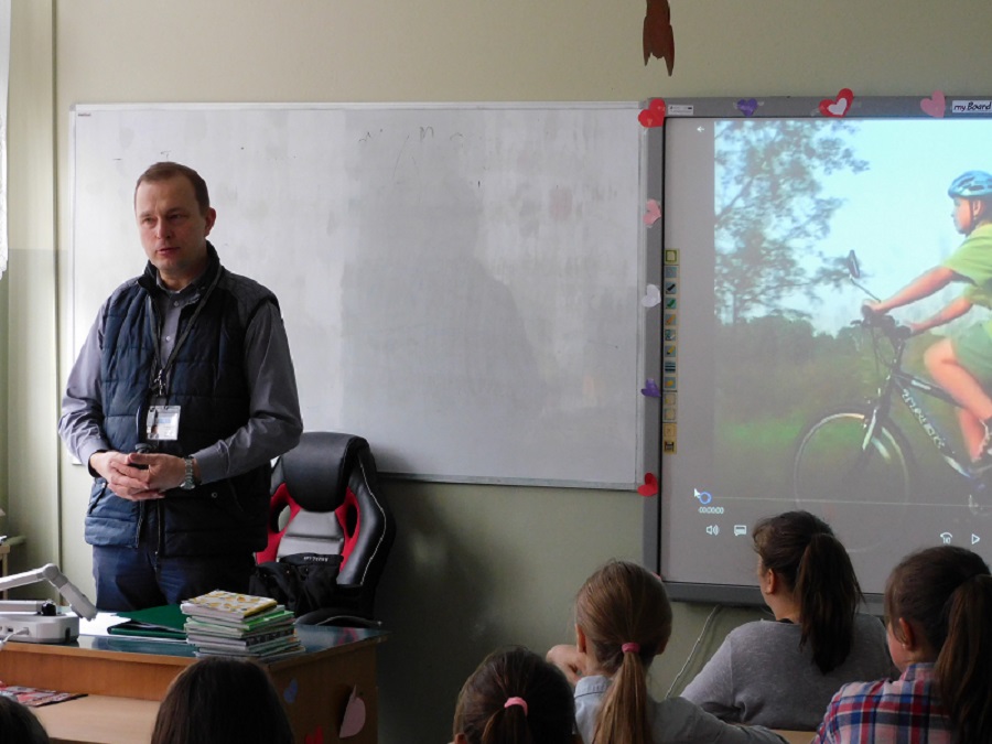 12 lutego uczniowie klasy czwartej spotkali się z przedstawicielami WORD w Skierniewicach. Czwartoklasiści obejrzeli film pt. "Z rowerem za pan brat - kodeks rowerzysty", który zapoznał ich z krótką historią roweru, z jego budową, bezpiecznym poruszaniem się po drogach w dzień i po zmroku. Po obejrzeniu filmu uczniowie mogli ćwiczyć praktyczną jazdę podczas zajęć na sali gimnastycznej. Zajęcia w ramach "Miasteczka Ruchu Drogowego" przygotowały uczniów klasy czwartej do zbliżającego się egzaminu na kartę rowerową.