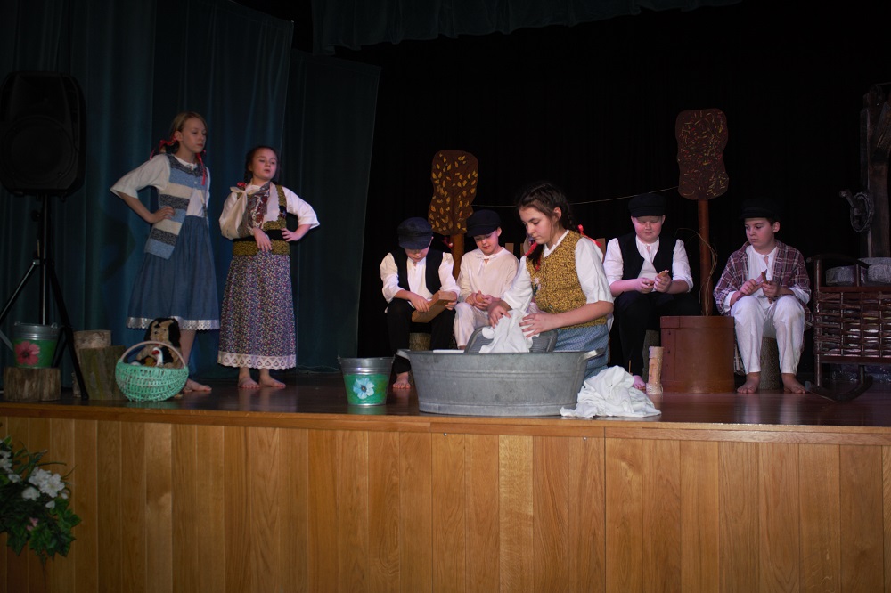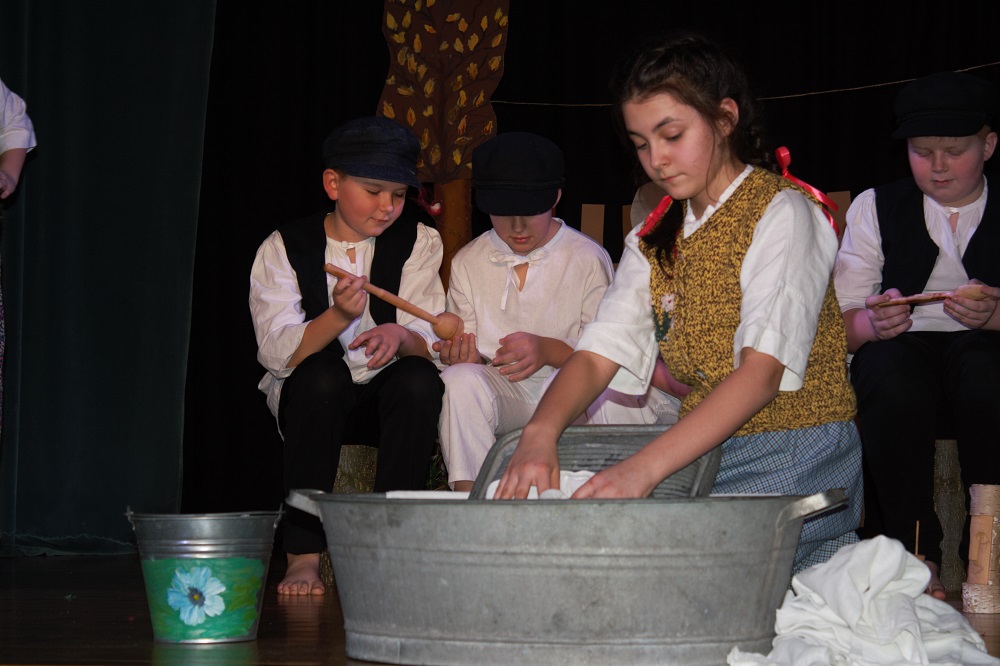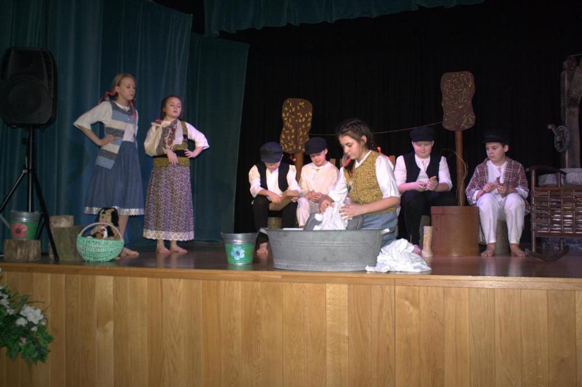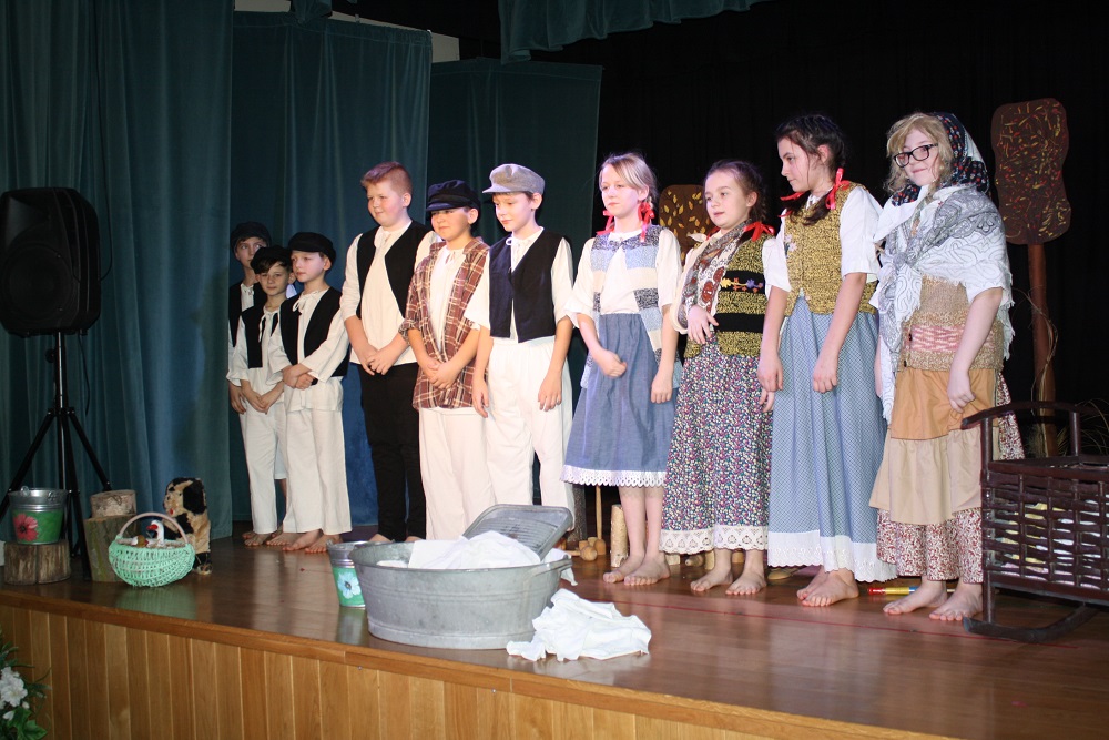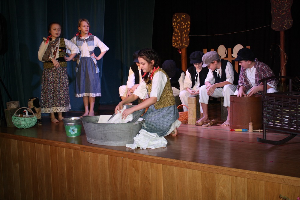 Dzisiaj w Centrum Aktywności Kulturalnej o godzinie 11.15 i 12.15 uczniowie naszej szkoły, rodzice, nauczyciele oraz zaproszeni goście: m.in. Wójt Gminy Rawa Mazowiecka, p. Michał Michalik, Ks. Proboszcz, Zbigniew Kaliński, autorka scenariusza, p. Maria Jolanta Hein, dyrektor Gminnego Ośrodka Kultury w Matyldowie, p. Łukasz Glimasiński, p. Małgorzata Dudek, dyrektor Gminnego Zespołu do spraw Oświaty, Kultury i Sportu, p. Anna Jakubiak, Sekretarz Gminy, podopieczni fundacji „Obudźmy nadzieję”, państwo Barbara i Janusz Furmańscy, Seniorzy z Klubu Seniora w Rossosze, p. Anna Popłońska, przedstawicielka lokalnych mediów oraz mieszkańcy Boguszyc i okolic dwukrotnie obejrzeli przedstawienie, które opowiada o życiu w dawnej wielodzietnej rodzinie wiejskiej. Starsze rodzeństwo wychowywało młodsze, a także pod nieobecność rodziców wykonywało szereg obowiązków w obejściu.