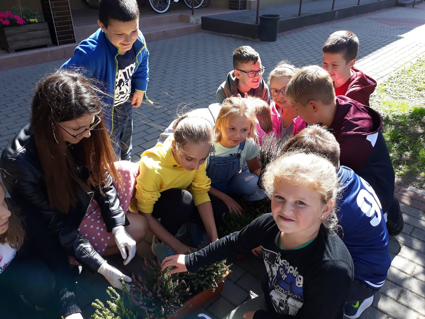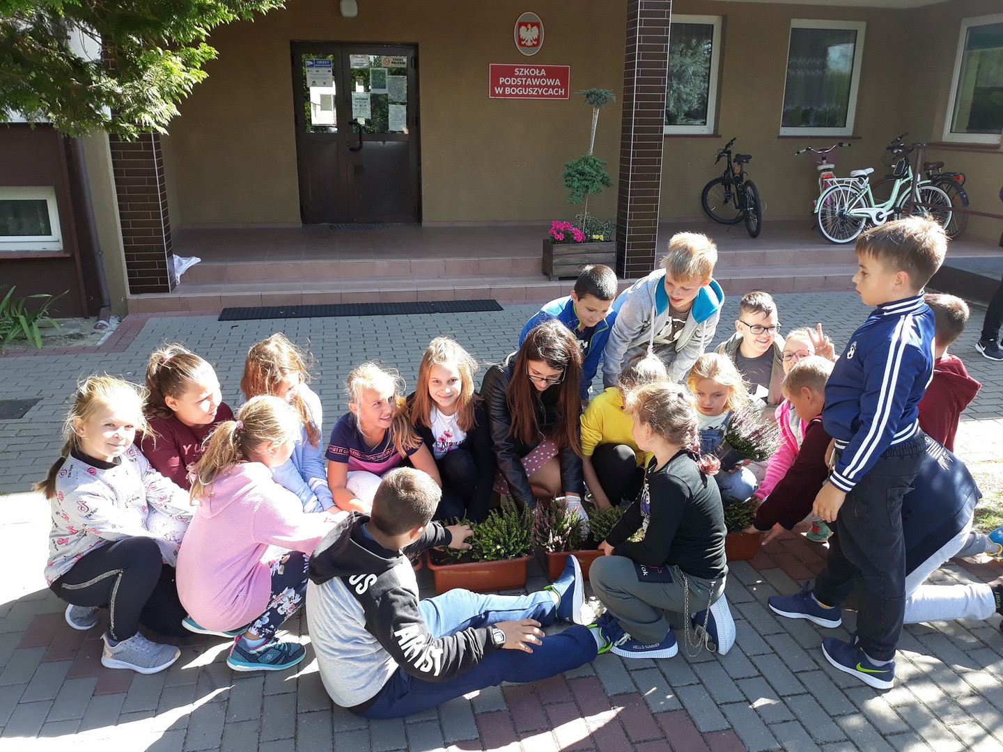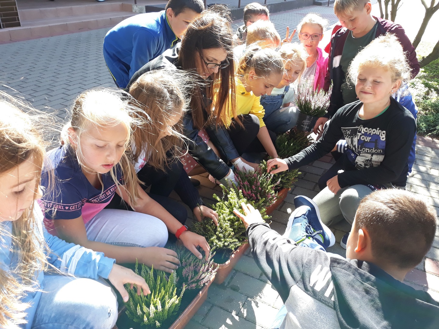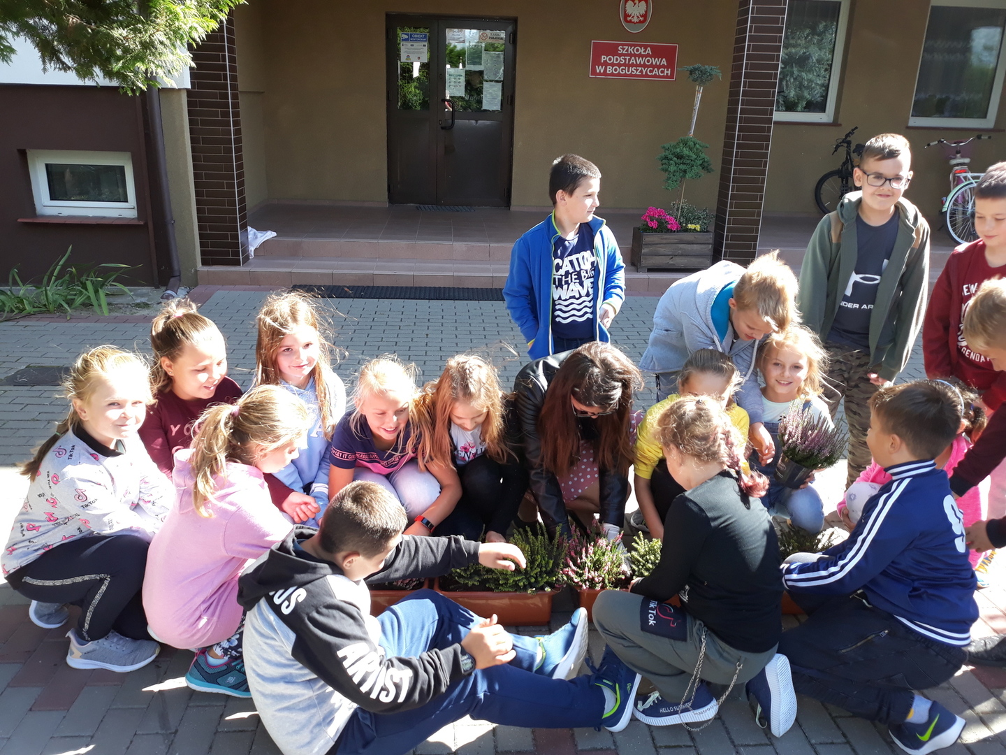 Przyrodnicy Pani Agnieszka Galach, Pan Mariusz Bazylak wraz z klasą czwartą posadzili nowe jesienne kwiaty: wrzosy i wrzośce, które będą nam zdobiły szkołe przez najbliższe dni. Klasa czwarta bardzo chętnie zabrała się do tej jednej z pierwszych lekcji przyrody w praktyce.