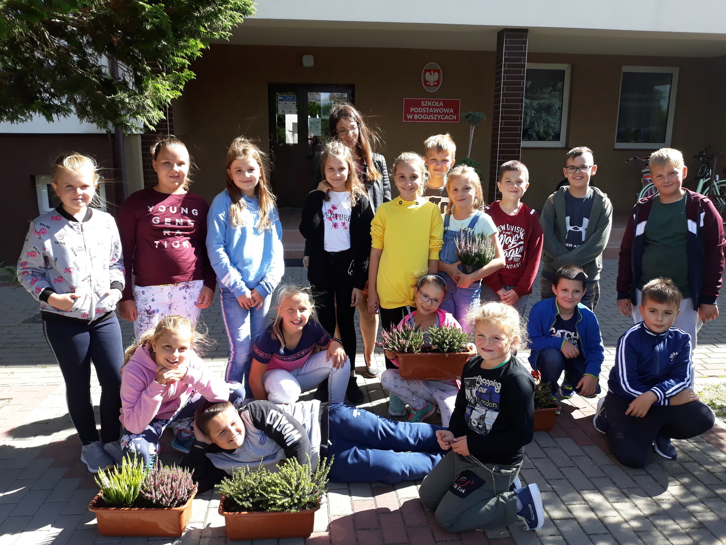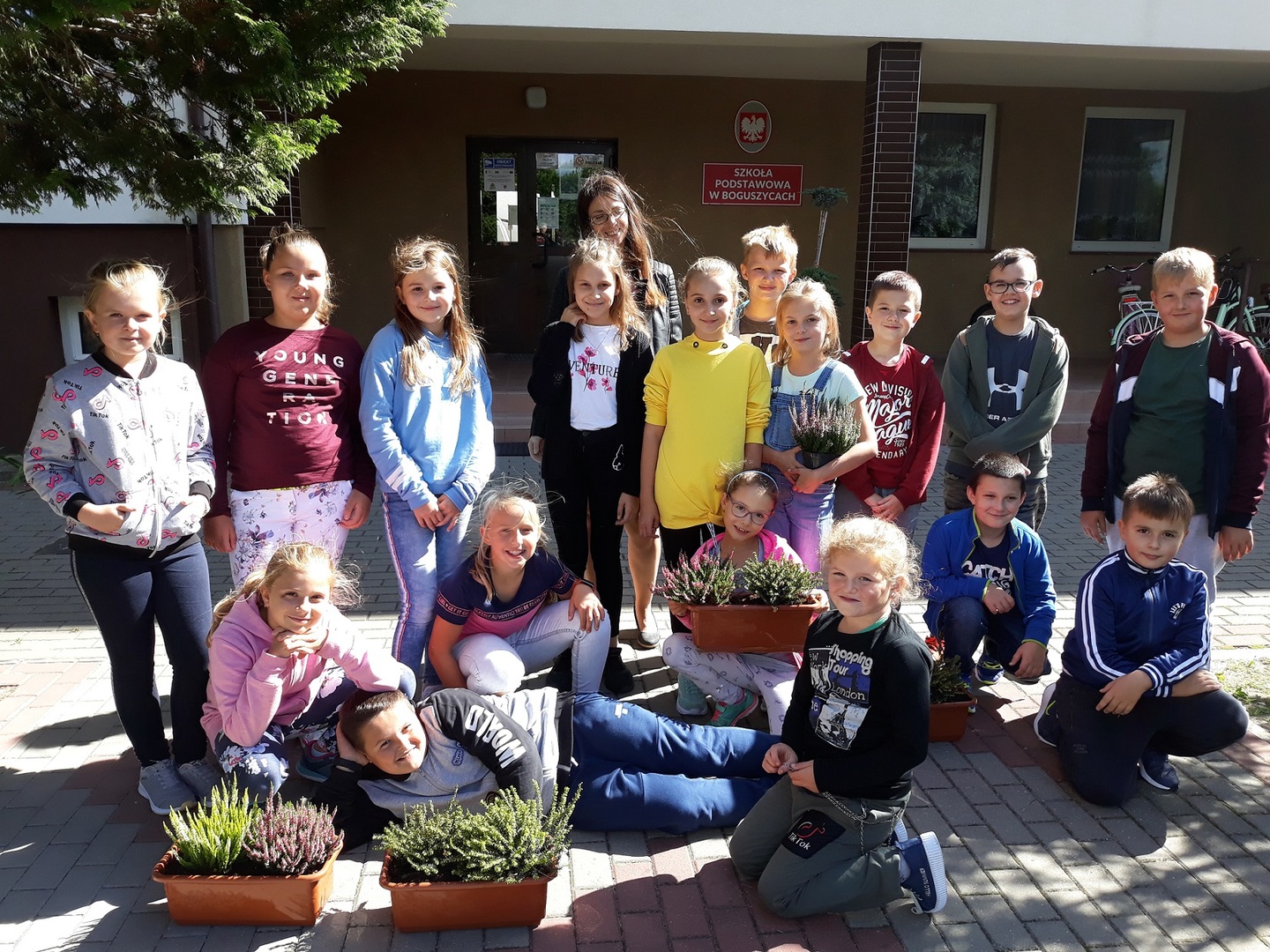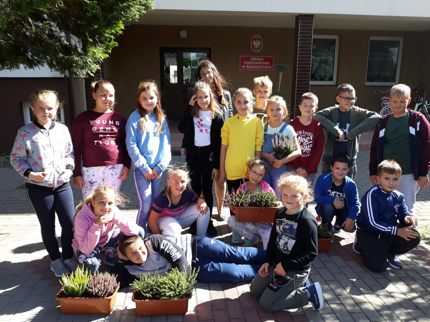 Nowe wrzosy zdobią naszą szkołę.