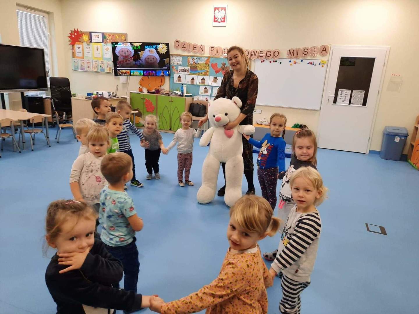 25 listopada, jak co roku, w przedszkolu obchodziliśmy Dzień Pluszowego Misia. Z tej okazji organizowane są misiowe zabawy, konkursy oraz tańce. Gość specialny - Niedźwiadek Biały w tym roku po tygodniu wyszedł z ukrytej kryjówki i odwiedził maluchy w Boguszycach. Pomógł dzieciom w wykonaniu misiów z papieru i rozwiązywaniu misiowych zadań. Rozdał też dyplomy Przyjaciela Pluszowego Misia oraz misiowe upominki dla starszaków w podziękowaniu za spotkanie. Uśmiechy dzieci były zachętą do kolejnej wizyty, więc do zobaczenia za rok!
