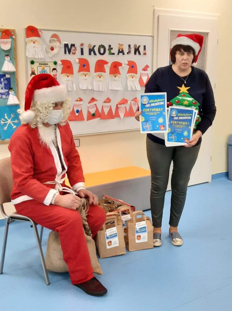Przedszkolaki z grupy 3 - 4 latków zaśpiewały dla Świetego Mikołaja, biorąc udział w zabawie "Mikołajkowa moc prezentów". Za piękny występ otrzymały upominki oraz certyfikaty grzecznych dzieci, które sam im wręczył. Radości nie było końca. Dziękujemy serdecznie pomocnikom Świętego Mikołaja za upominki. Całą zabawę koordynowała pani Mariola Owczarek.