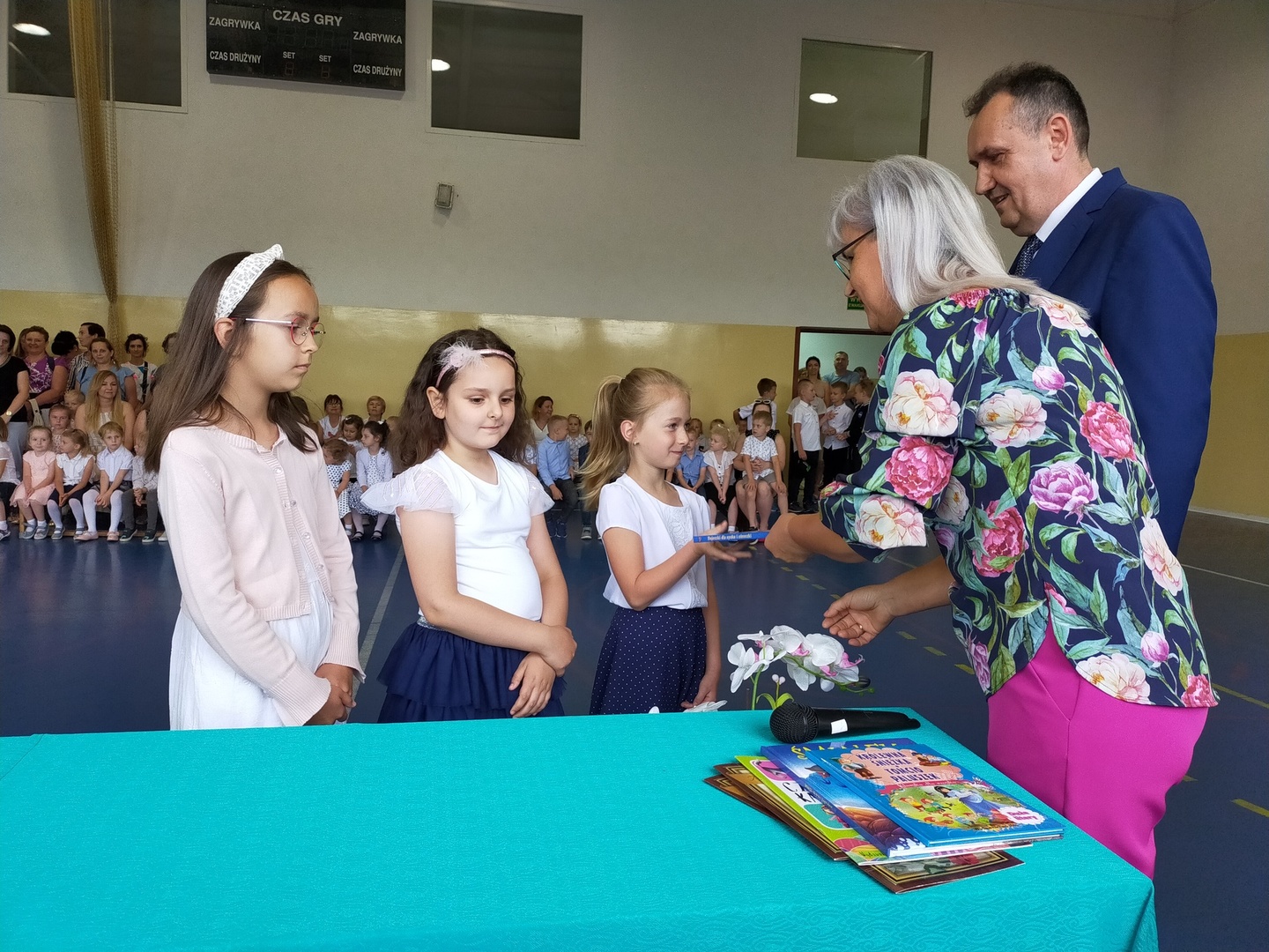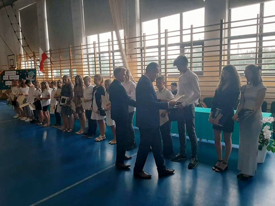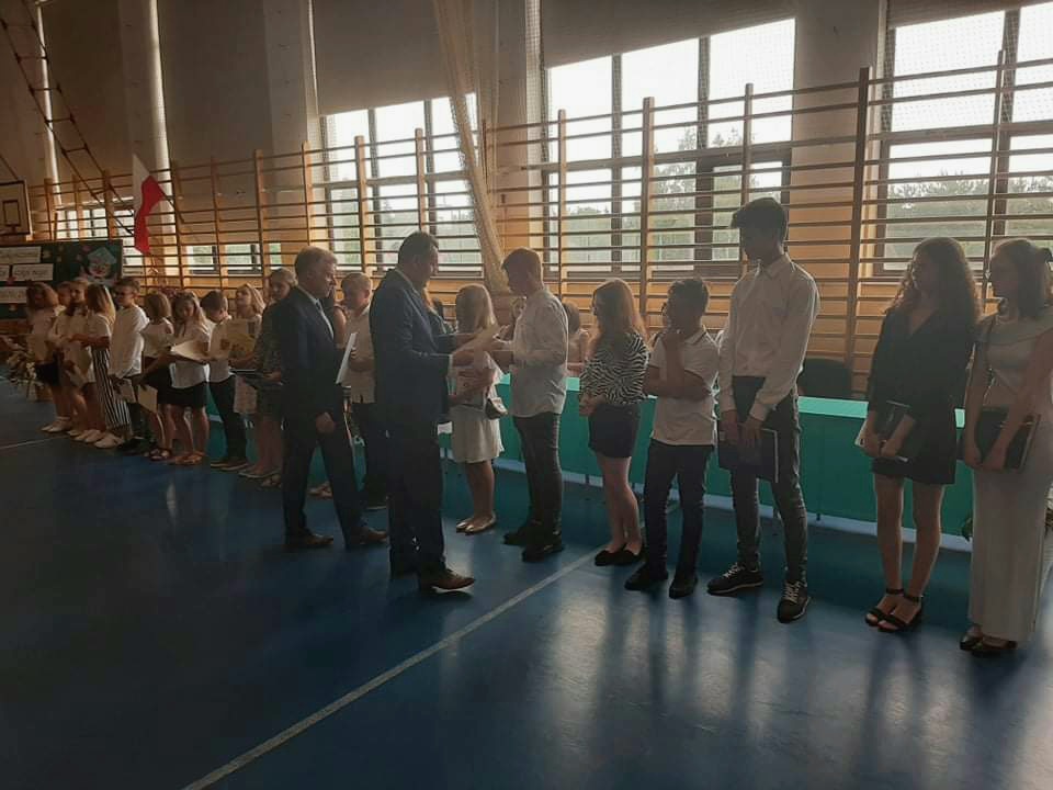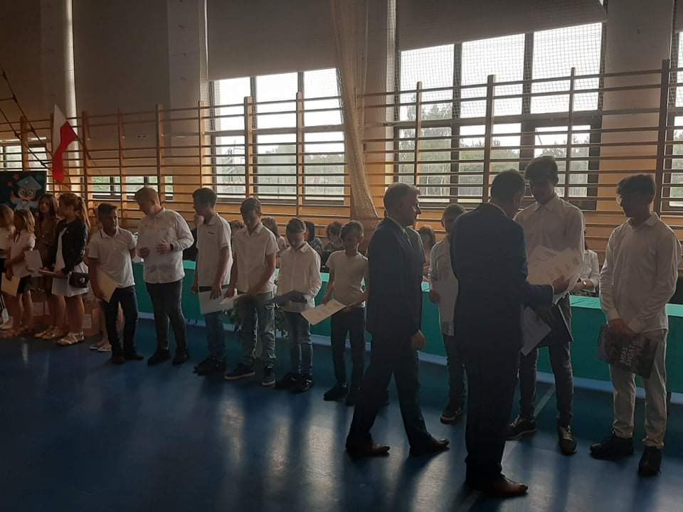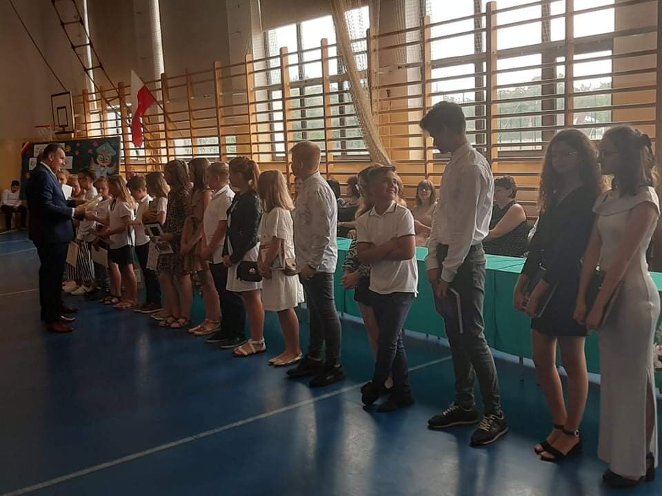Zakończenie roku szkolnego dominowało w nagrody, życzenia i podziękowania. Wyróżnieni zostali uczniowie klas ośmych, którzy od Panów Dyrektorów oraz Pań wychowawczyń otrzymali pamiątkowe dyplomy ukończenia Szkoły Podstawowej. Ponadto nagrodzono najlepszych uczniów i spotowców, wręczono stypendia za osiągnięcia w nauce oraz współzawodnictwo sportowe. Na zakończeniu roku szkolnego pojawił się również p. Łukasz Glimasiński dyrektor Gimnego Ośrodka Kultury w Matyldowie, który wręczył upominki uczniom klasy 5 za udział w projekcie "Sieć na kulturę w podregionie skierniewickim". Natomiast p. Mariola Owczarek wręczyła uczniom klas 4 - 6 upominki za udział w konkursach organizowanych przez Wojewódzki Fundusz Ochrony Środowiska i Gospodarki Wodnej w Łodzi. W tym dniu podziękowano również Rodzicom za owocną pracę dla szkoły w mijającym roku szkolnym oraz za wspieranie działań szkoły na rzecz jej wychowanków.