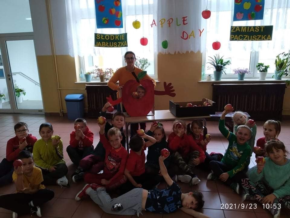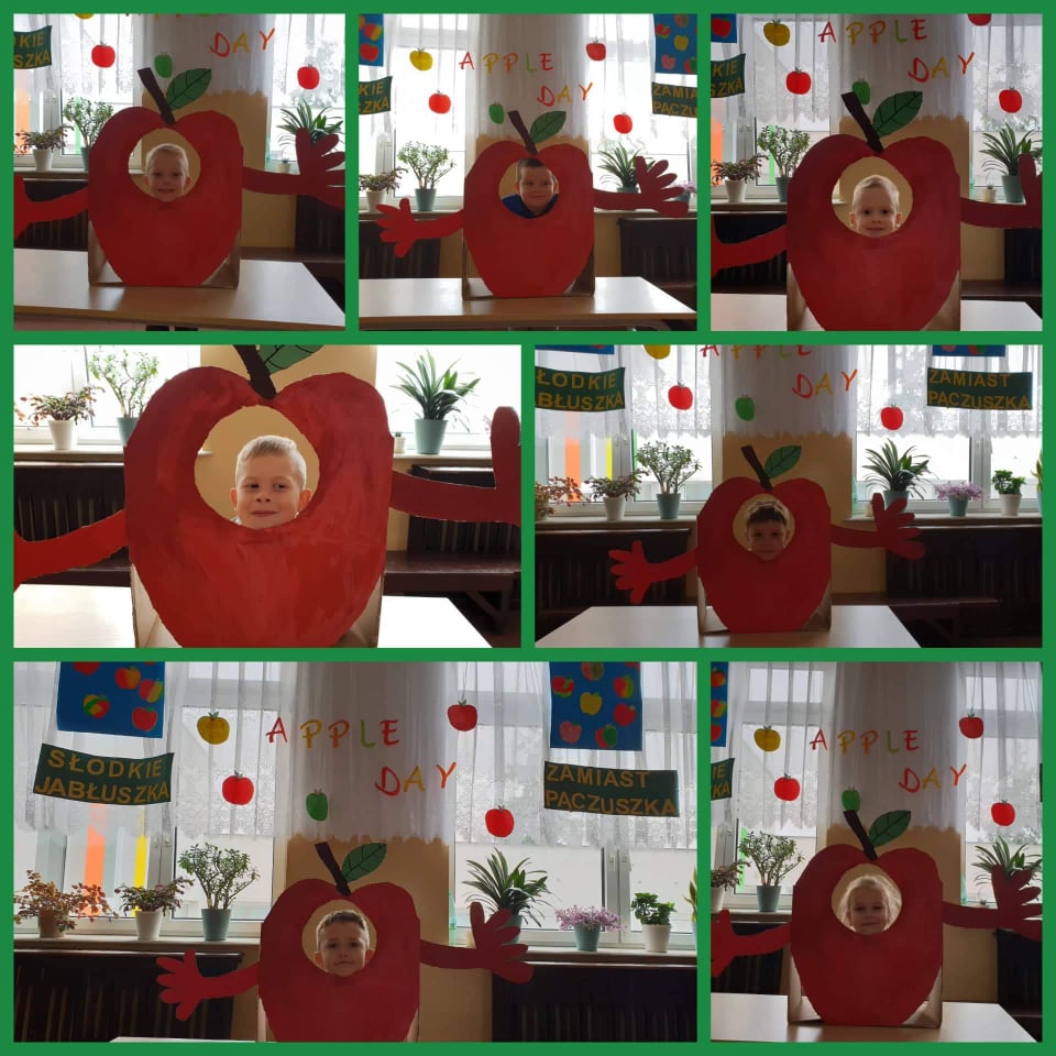 23 września w naszej szkole zrobiło się smacznie, pachnąco i owocowo . Uczniowie mogli zamienić się w jabłko i zrobić zdjęcie w fotobudce oraz skosztować słodkich jabłek. Wychowawcy młodszych grup, klasy pierwszej i klas drugich zorganizowali konkursy i lekcje o jabłkach. Uczniowie wykonywali również prace plastyczne i ubrali się w kolory owoców - czerwień i zieleń. Serdecznie dziękujemy zaangażowanym wychowawcom i uczniom za włączenie się do akcji