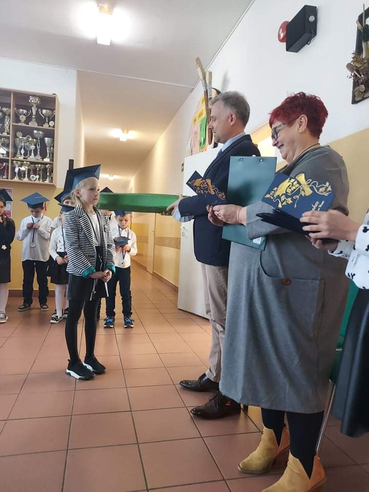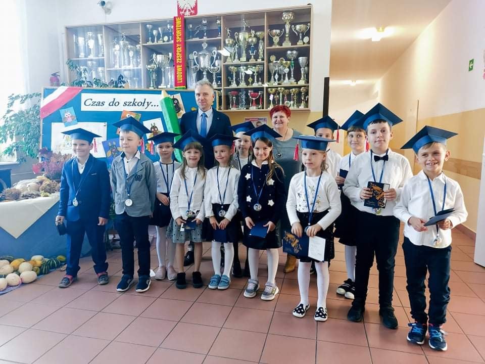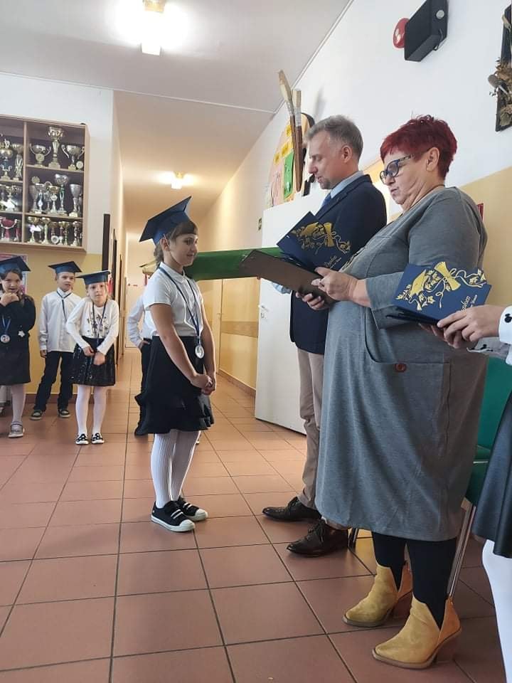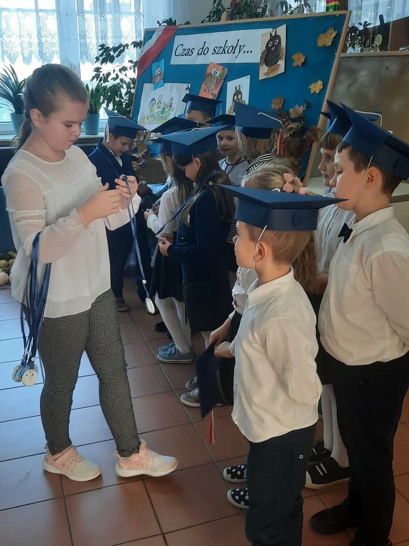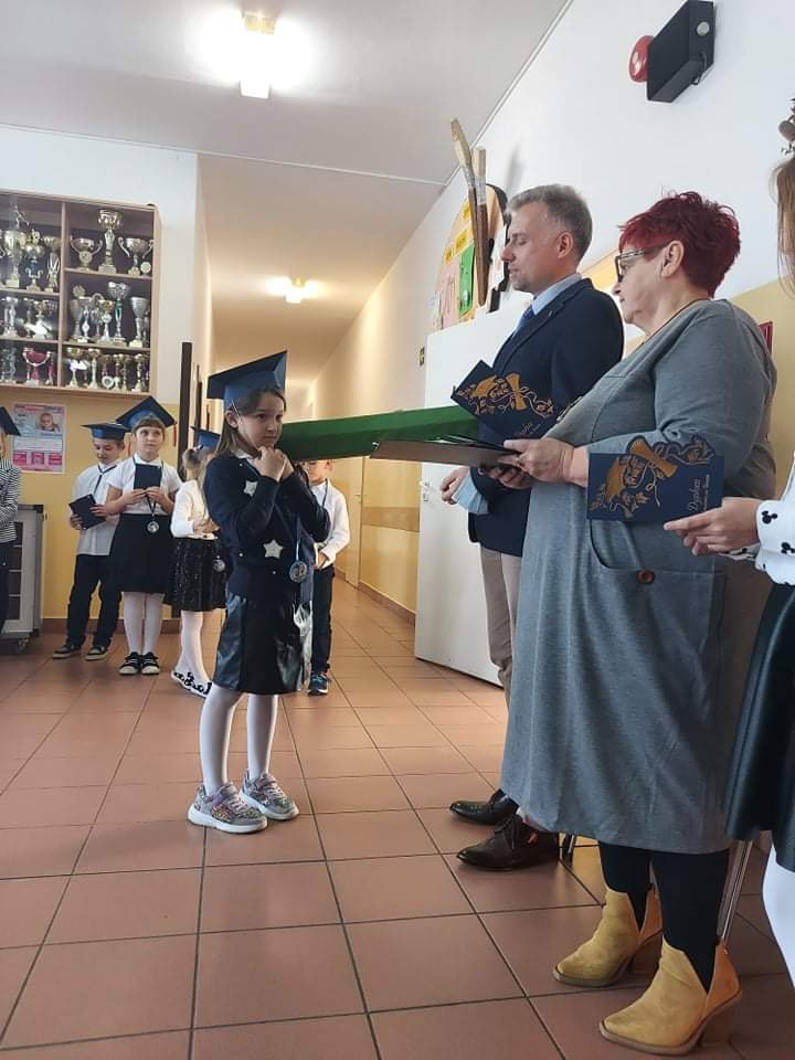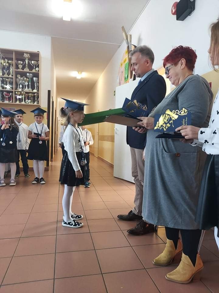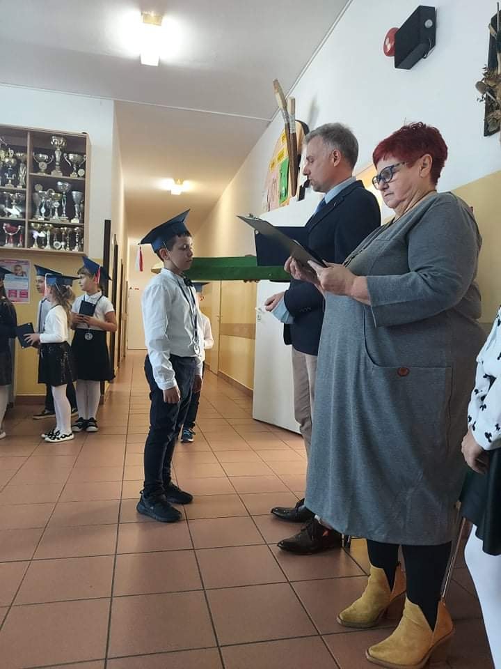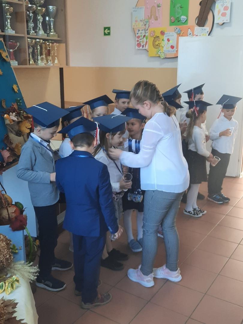 3 października 2021 roku odbyło się uroczyste "Pasowanie na ucznia klasy pierwszej szkoły podstawowej". Dzieci pięknie przygotowały się do tej uroczystości i udowodniły wszystkim zgromadzonym, że zasługują na miano ucznia. Obiecały być dobrymi Polakami i dbać o dobre imię klasy i szkoły. Każdy pierwszak uroczyście został pasowany na ucznia przez Wicedyroktora Szkoły Pana Mariusza Bazylaka dużym zielonym ołówiem. Na zakończenie uroczystości dzieci odebrały pamiątkowe dyplomy oraz upominki. W przygotowanie i przebieg uroczystości przygotowanej przez wychowawczynię p. Małgorzatę Jaczewską aktywnie włączyli się uczniowie klasy piątej oraz rodzice, którzy po części oficialnej zorganizowali słodki poczęstunek.