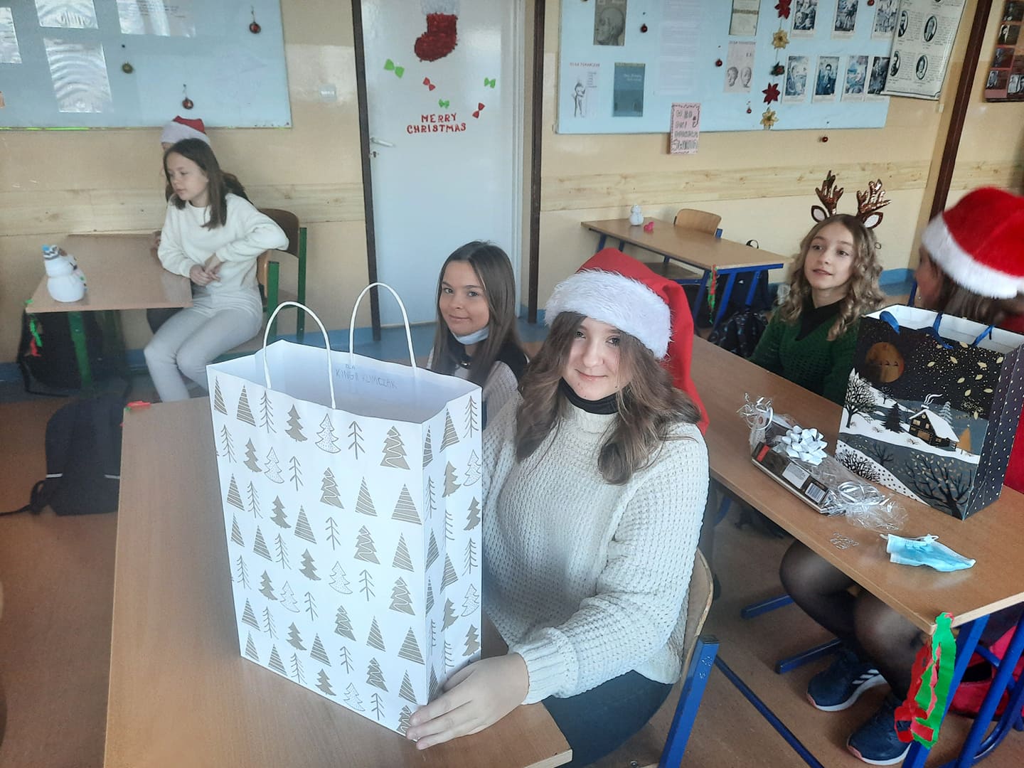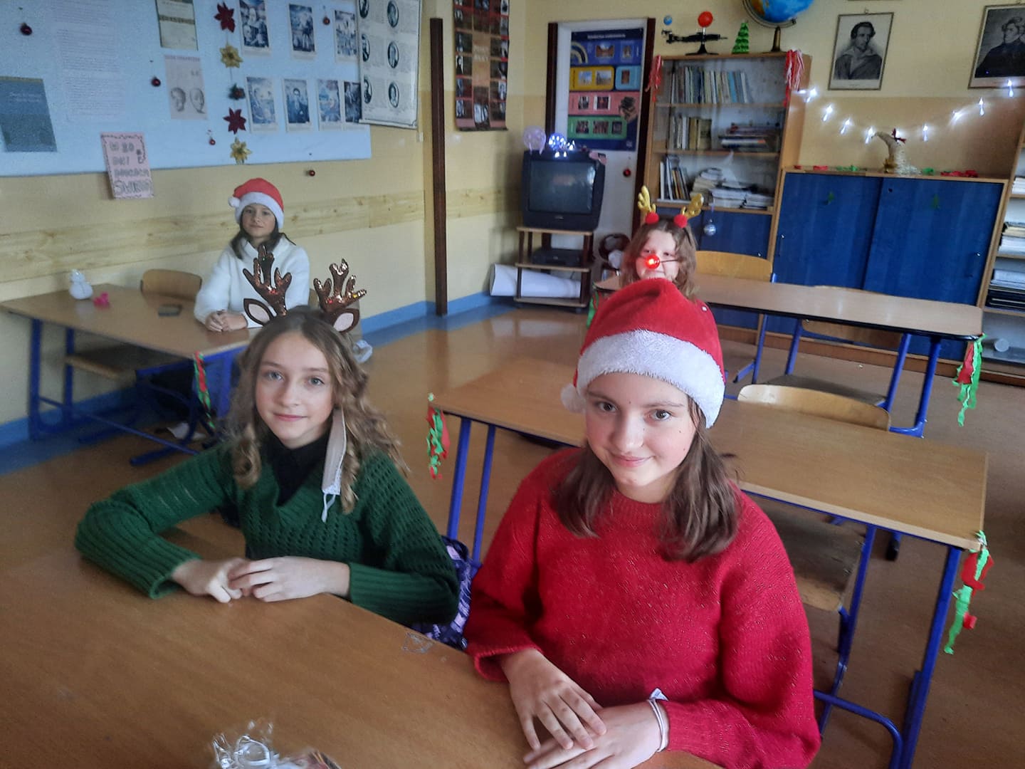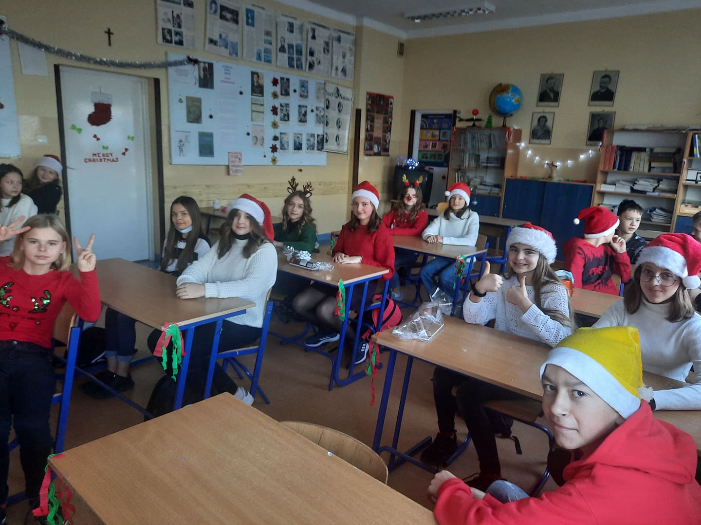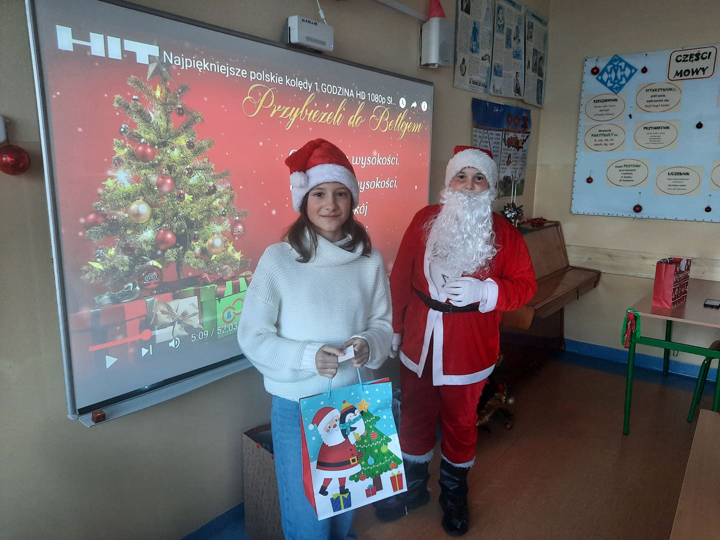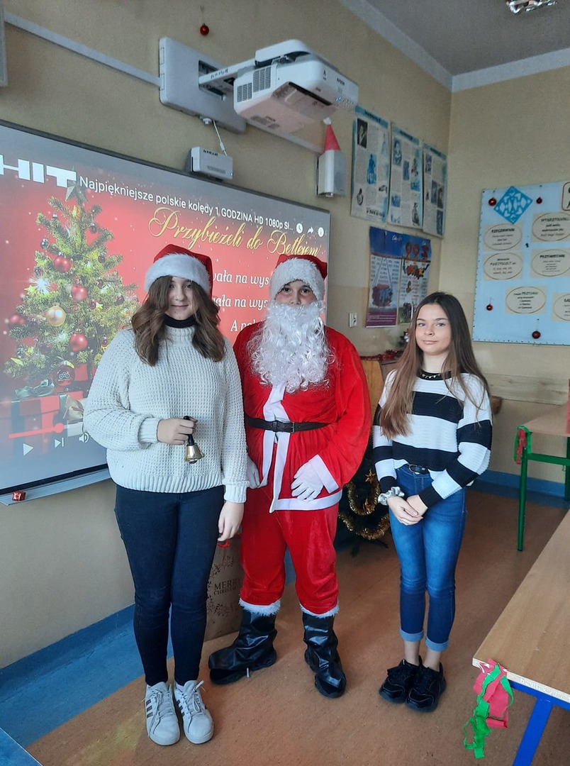 W dniu 03.12.2021 w klasie szóstej odbyły się Mikołajki. Na ten dzień szóstoklasiści pięknie ozdobili klasę lampkami, bombkami, choinką oraz ubrali się na czerwono. Dzień ten rozpoczął się od wizyty Mikołaja - Huberta, który wraz ze śnieżynką Amelką rozdawał dzieciom prezenty. Po otrzymaniu podarków przyszedł czas na wspólne oglądanie oraz pamiątkowe zdjęcie ze Świętym Mikołajem. Następnie dzieci odśpiewały kolędę „Przybieżeli do Betlejem Pasterze”. Na koniec były gry i zabawy. Ten dzień był pełen radości i na pewno zapamiętają go na długo.