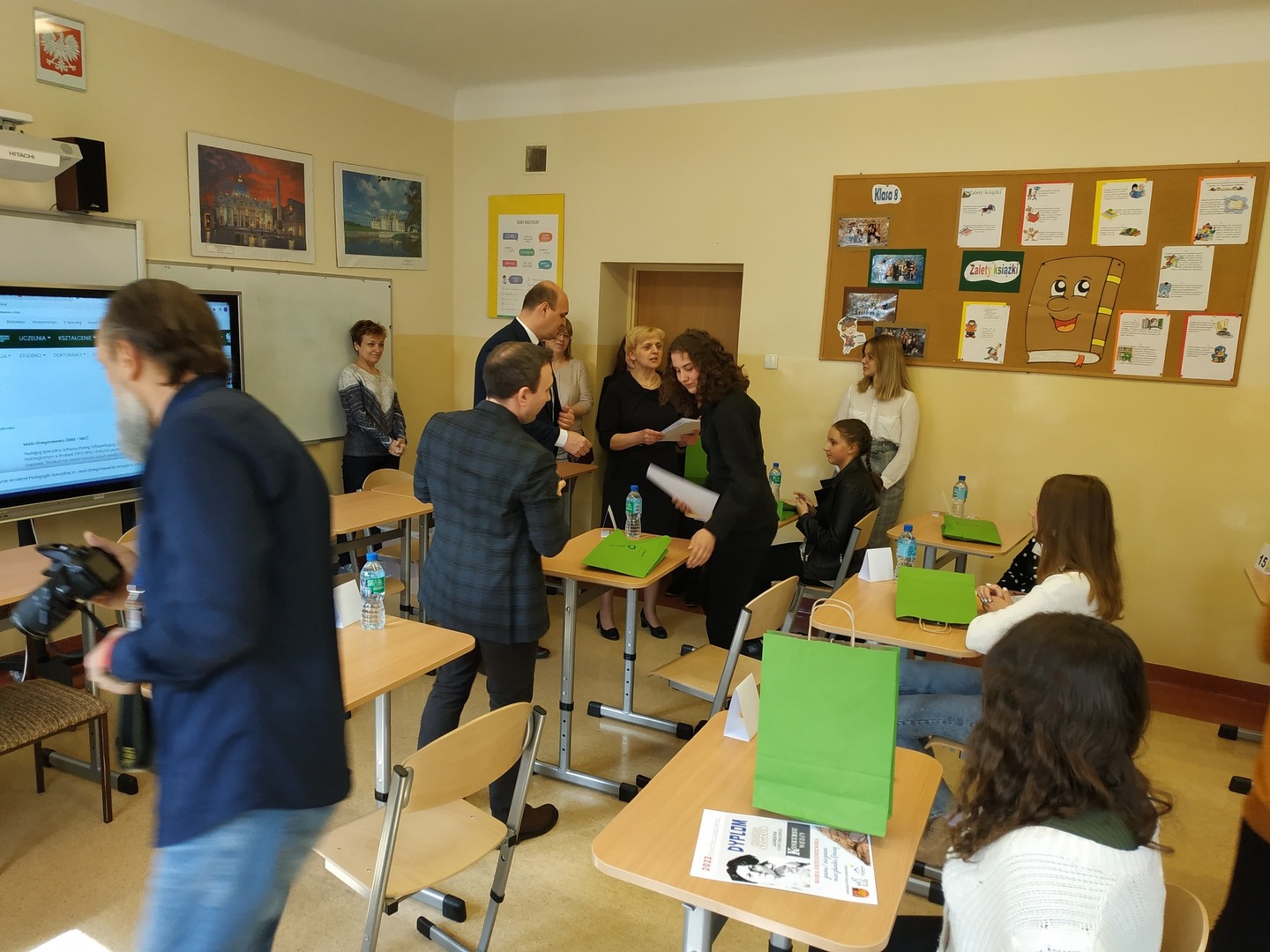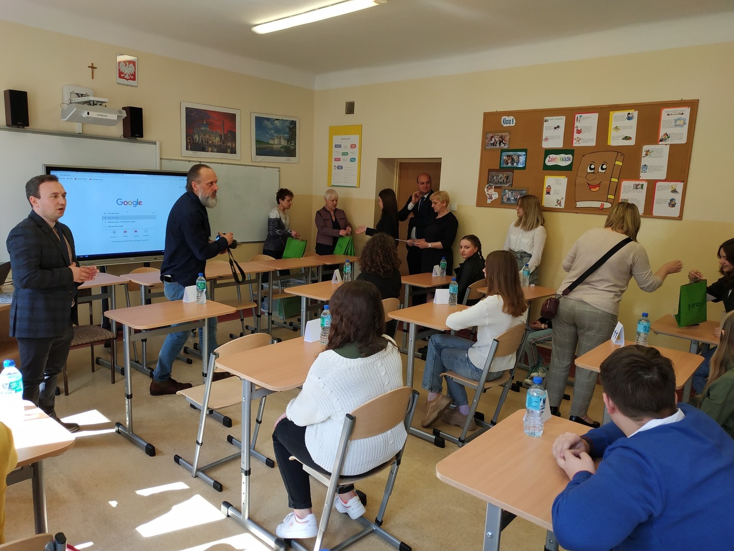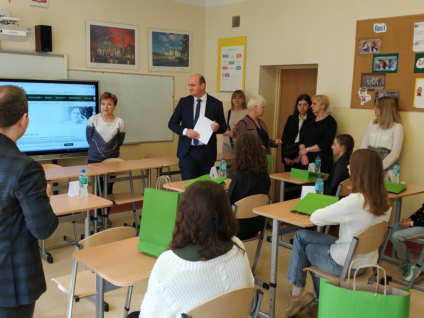 W dniu 22 kwietnia 2022r. trzy uczennice naszej szkoły wzięły udział w etapie finałowym konkursu wiedzy: "Maria Grzegorzewska znana/nieznana mieszkanka Gminy" pod patronatem Gminy Rawa Mazowiecka, Gminnego Ośrodka Kultury w Matyldowie i Akademii Pedagogiki Specjalnej im. Marii Grzegorzewskiej w Warszawie. Konkurs promuje obchody Roku Marii Grzegorzewskiej. Weronika Niezgoda z kl. 8a, Anna Góraj z kl. 8a i Wiktoria Ziętek z kl. 6 w etapie szkolnym zajęły pierwsze trzy miejsca i zakwalifikowały się do etapu finałowego. W obydwu etapach rozwiązywały zadania konkursowe, które dotyczyły dorobku naukowo - zawodowego prof. Marii Grzegorzewskiej, historii i obecnego funkcjonowania jednostki samorządowej Gminy Rawa Mazowiecka oraz Akademii Pedagogiki Specjalnej w Warszawie. Po zakończeniu konkursu uczestnicy obejrzeli ciekawą prezentację przedstawiającą sylwetkę Marii Grzegorzewskiej, wysłuchali ciekawostek z życia twórczyni pedagogiki specjalnej, a także mieli okazję spotkać się z wykładowcami i studentkami APS, z Wójtem Gminy Rawa Mazowiecka p. Michałem Michalikiem oraz z dyrektorem GOK w Matyldowie p. Łukaszem Glimasińskim. Następnie uczestnicy konkursu oddali hołd Marii Grzegorzewskiej - złożono kwiaty i zapalono znicze przed pomnikiem w Wołuczy. Ogłoszenie wyników konkursu nastąpi 10 czerwca 2022r. w Kurzeszynie. Opiekun młodzieży: p. R.Lipska oraz p. E.Manowiecka.