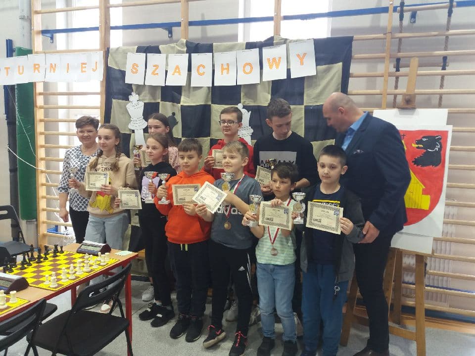 W dniu 26 kwietnia 2022 roku uczniowie naszej szkoły brali udział w II Wiosennym Turnieju Szachowym w SP w Boguszycach odnosząc ogromny sukces szczególnie w kategorii klas IV - VI zajmując pierwsze trzy miejsca. Pierwsze miejsce zajeła Lena Cała, drugie Szymon Ornafa, trzecie Marlena Lewandowska. Również inni uczniowie bardzo dobrze się zaprezentowali zajmując czołowe miejsca w swoich kategoriach. W turnieju brały udział wszystkie szkoły z Gminy Rawa Maz. około 100 uczniów. Serdecznie gratulujemy zwycięzcom i życzymy dalszych sukcesów. Opikun szkolnego koła szachowego p. Zbigniew Stępniak.