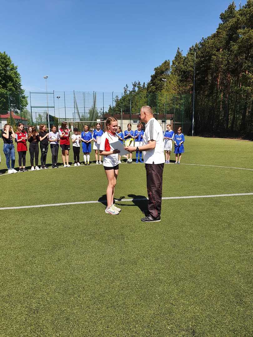 16 maja odbyły się zawody w piłce nożnej na szczeblu powiatu. W zawodach uczestniczyły reprezentacje z SP Regnów, SP Sadkowice i oczywiście SP Boguszyce. Skład naszej drużyny to: Lena Dzikowska, Ola Piekut, Amelka Dudek, Kornelia Kocik, Lena Szymczak, Wiktoria Ziętek, Natalia Bolek, Magda Srebrzyńska i rewelacyjnie grająca Zosia Klimek. Dziewczęta po bardzo dobrej i skutecznej grze zdobyły I miejsce i zakwalifikowały się do półfinału Wojewódzkiego. Gratulacje