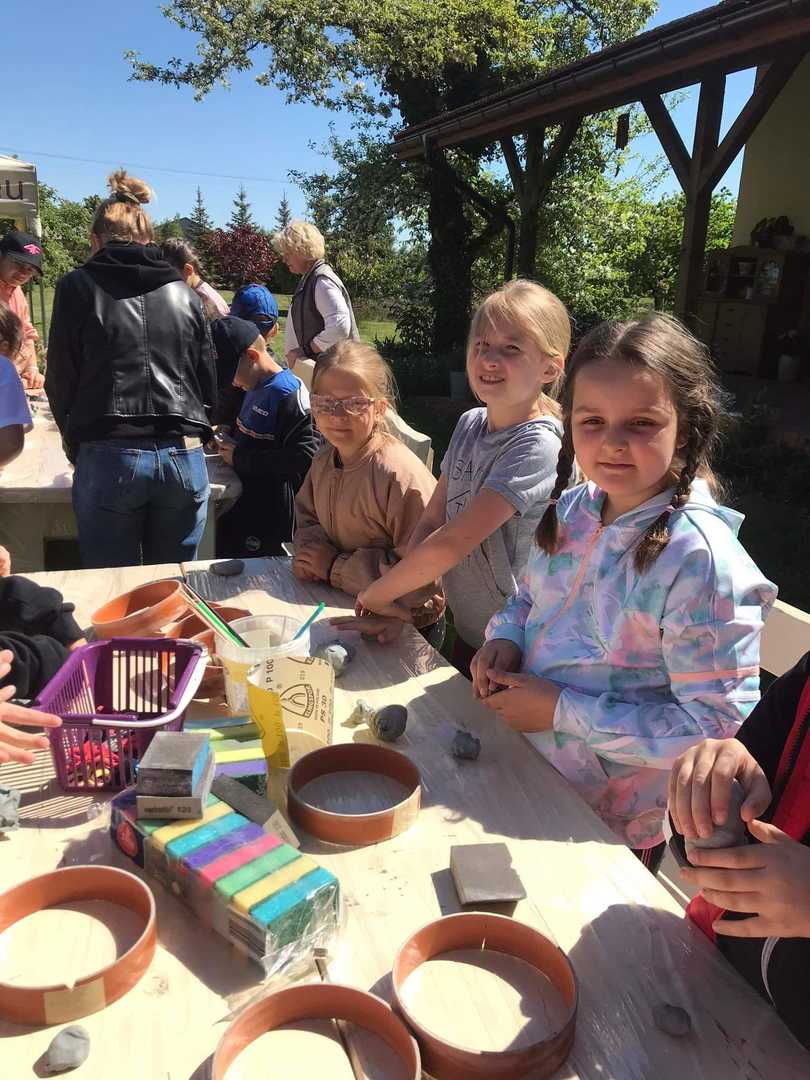 18 maja 2022r. klasy drugie pod opieką p.Doroty Bajan oraz p.Małgorzaty Czech wyjechały na wycieczkę do Lawendówki w Ossie. W czasie pobytu dzieci brały udział w warsztatach plastycznych, podczas których wykonały reliefy roślinne. Zapoznały się z różnymi gatunkami lawendy i innych roślin . Poznały ich właściwości i przeznaczenie. Spotkanie umiliła właścicielka napojem i własnoręcznie upieczonym ciastem z lawendą. Dzieci miały również możliwość zobaczenia pasieki
