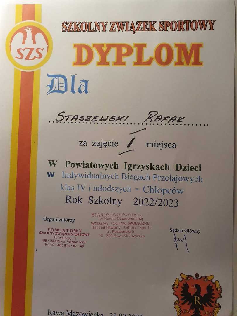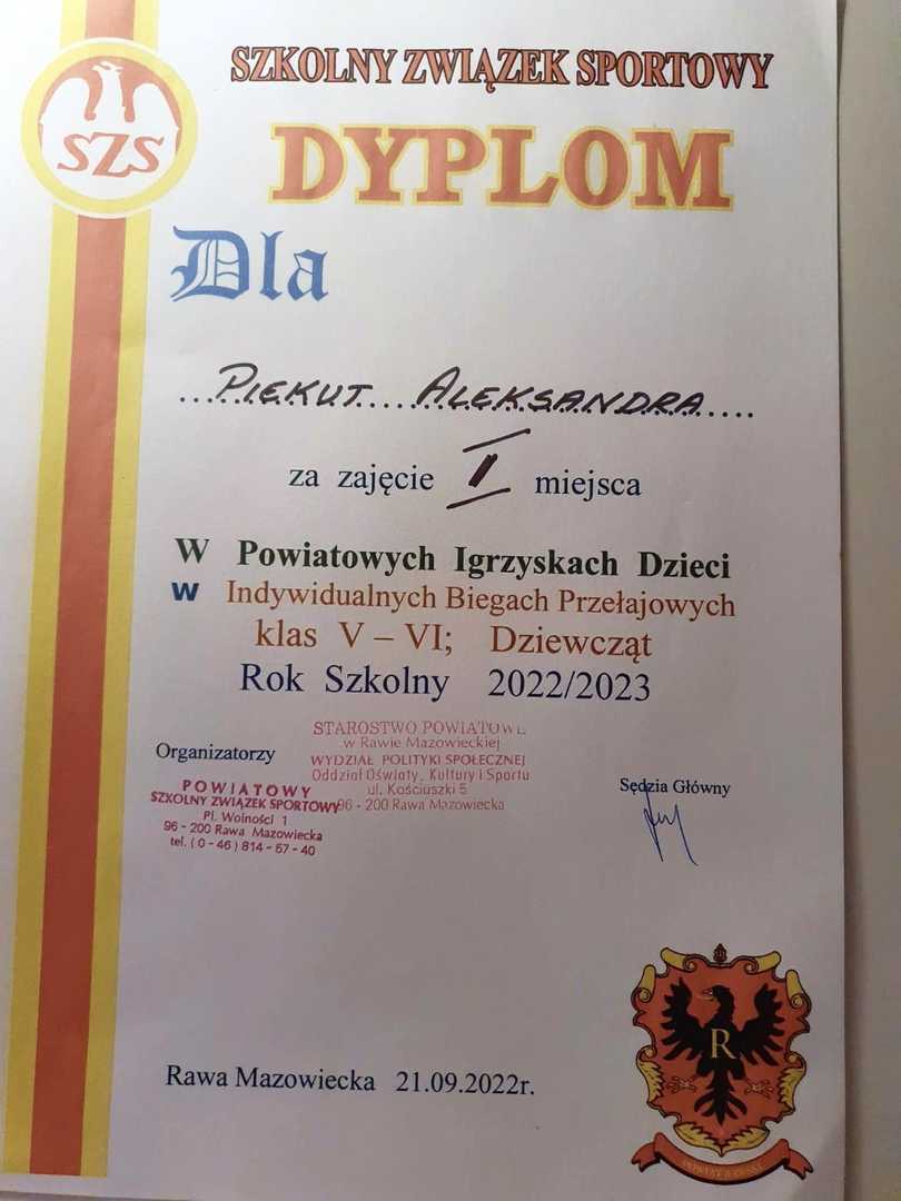 Naszą szkołę reprezentowało wiele zdolnych biegowodzieci , a najlepsi z nich zakwalifikowali się do finału wojewodzkiego rozgrywanego 29.09.22 w Uniejowie ( Klasy V-VIII).