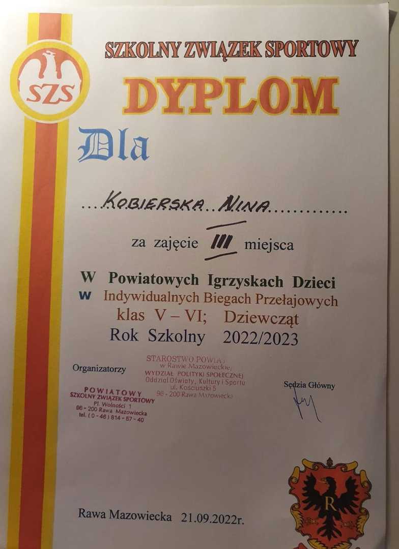 Nina Kobierska w kat. kl. V-VI - III miejsce
