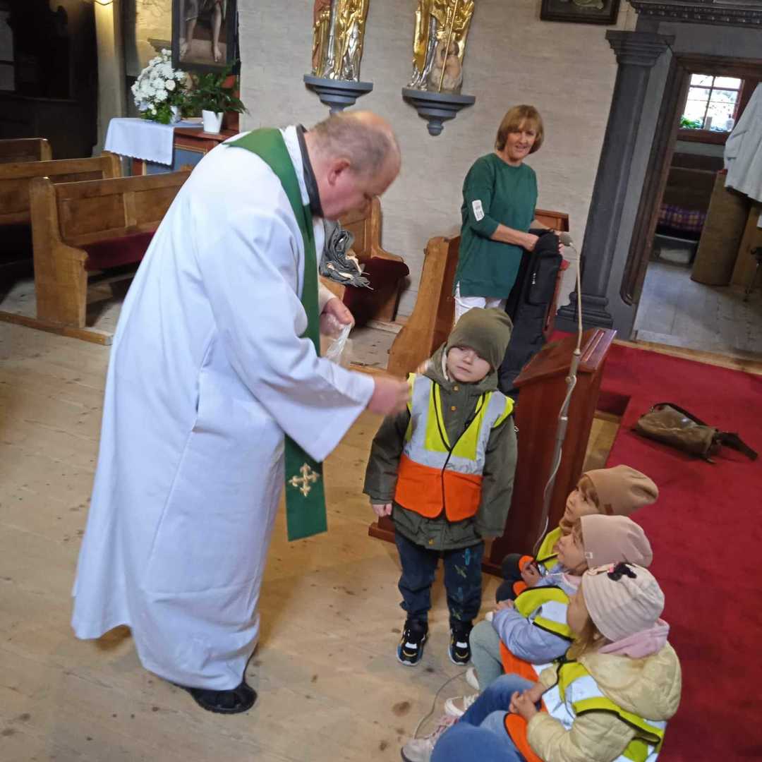 6 października najmłodsza część naszej społeczności, czyli 3 i 4 latki w ramach zajęć religii wybrały się pod opieką wychowawcy oraz pani katechetki do Kościoła w Boguszycach. Ciepłe przejęcie przez księdza proboszcza zaakcentowane zostało smacznym poczęstunkiem w formie lizaków. W sympatycznej atmosferze maluchy zwiedziły całą świątynię