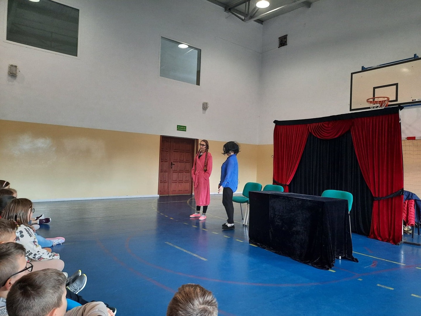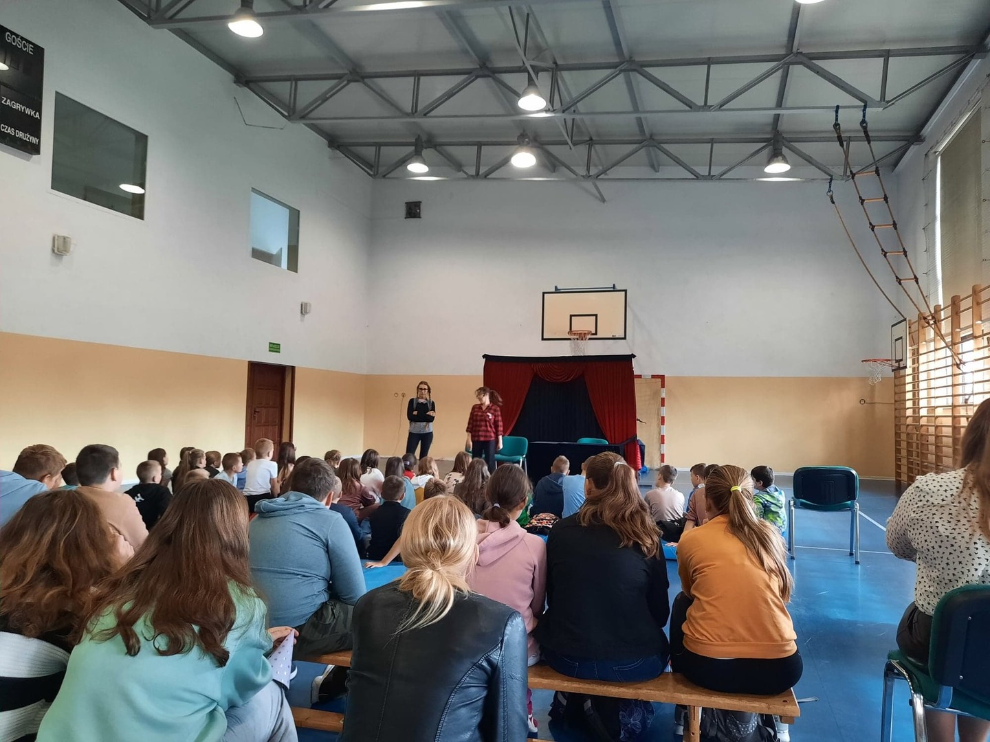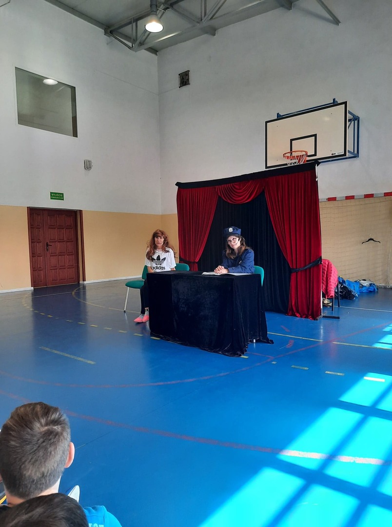 We wtorek 11 października naszą szkołę odwiedzili aktorzy krakowskiego teatru Kurtyna. Przedstawili oni dwa spektakle. Jeden skierowany dla uczniów klas I-III pt. "Mapa skarbów", drugi dla klas IV - VIII pt. "Przesłuchanie". Nie były to zwykłe przedstawienia dla dzieci i młodzieży, ale spektakle o charakterze profilaktycznym, w których poprzez opowiedziane historie poruszone zostały bardzo ważne tematy dla młodych ludzi m.in cyberprzemoc. Uczniowie z zainteresowaniem oglądali spektakle. Dziękujemy za odwiedziny!