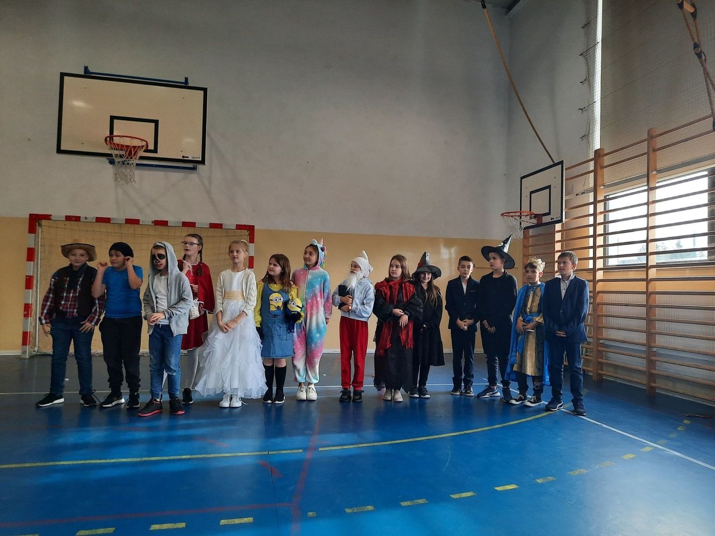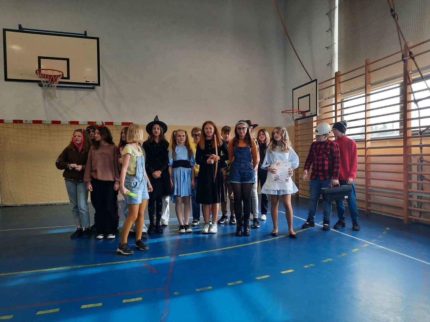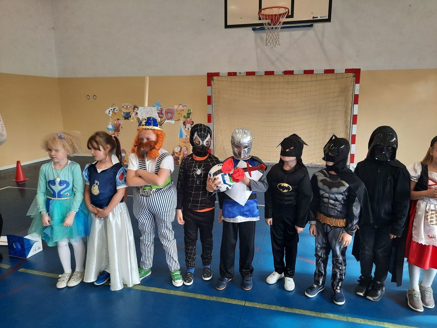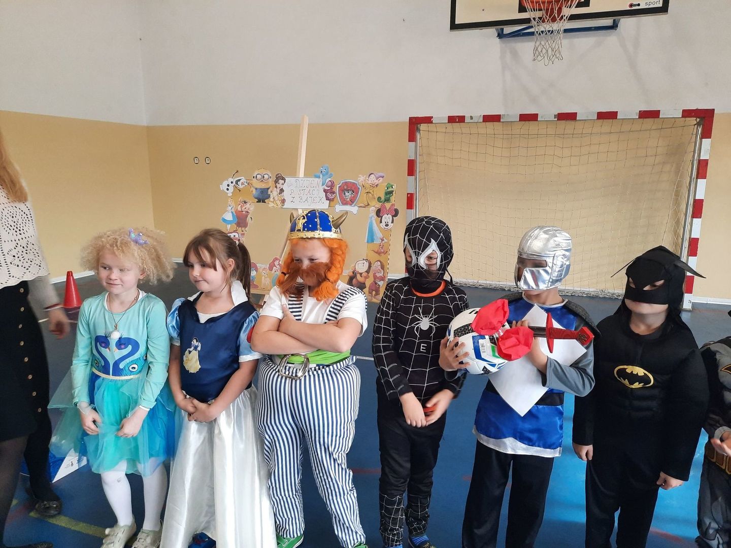 7.11.2022 r. nasza placówka po raz pierwszy celebrowała Dzień Postaci z Bajek. Aby uatrakcyjnić ten dzień i bardziej zintegrować społeczność szkolno - przedszkolną panie Olga Kobierska i Joanna Lewandowska zorganizowały konkurs na licznie i ciekawie przebraną klasę. Mobilizacja była niesamowita! Okazało się, że w niemal każdej klasie przebrani są prawie wszyscy. Zaangażowanie klasy VIII oraz III B nagrodzone zostało słodkim poczęstunkiem w formie pysznego bezowego tortu, który młodzież zjadła w towarzystwie wychowawców. Wszystkie klasy przebrane otrzymały lizaki, oraz dyplomy, dodatkowo wyróżnienie i nagrody rzeczowe w postaci piłek powędrowały do zerówki oraz klasy pierwszej. Dziękujemy radzie rodziców za współpracę - upominki oraz przepyszne torty. Mamy nadzieję, że tą impreza wpisze się na stałe w kalendarz wydarzeń szkolnych .