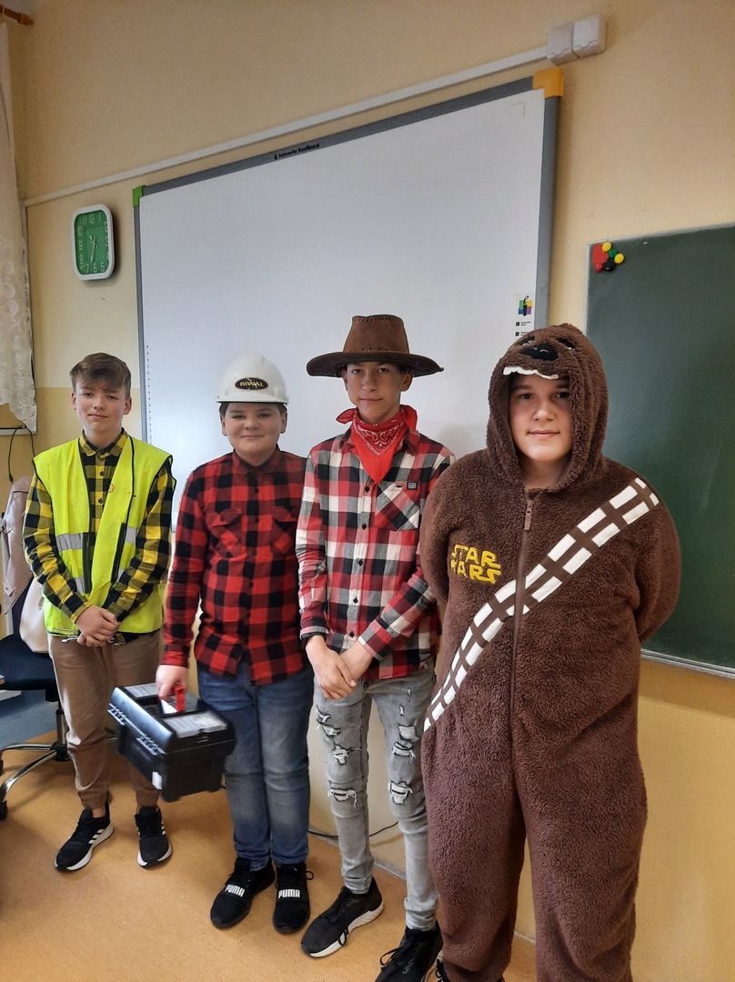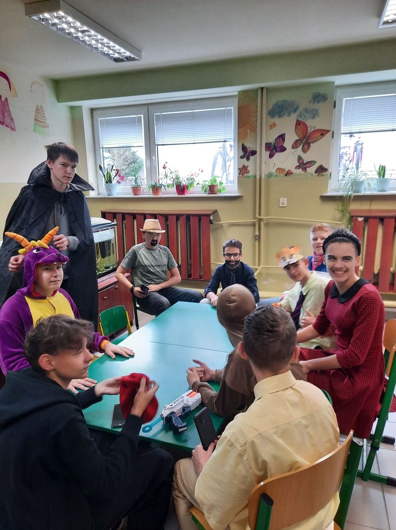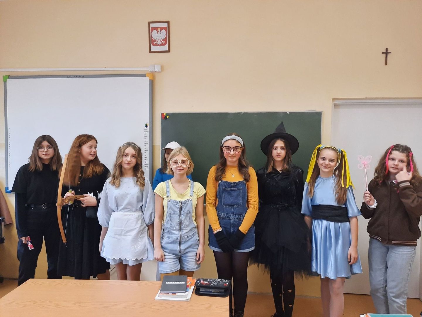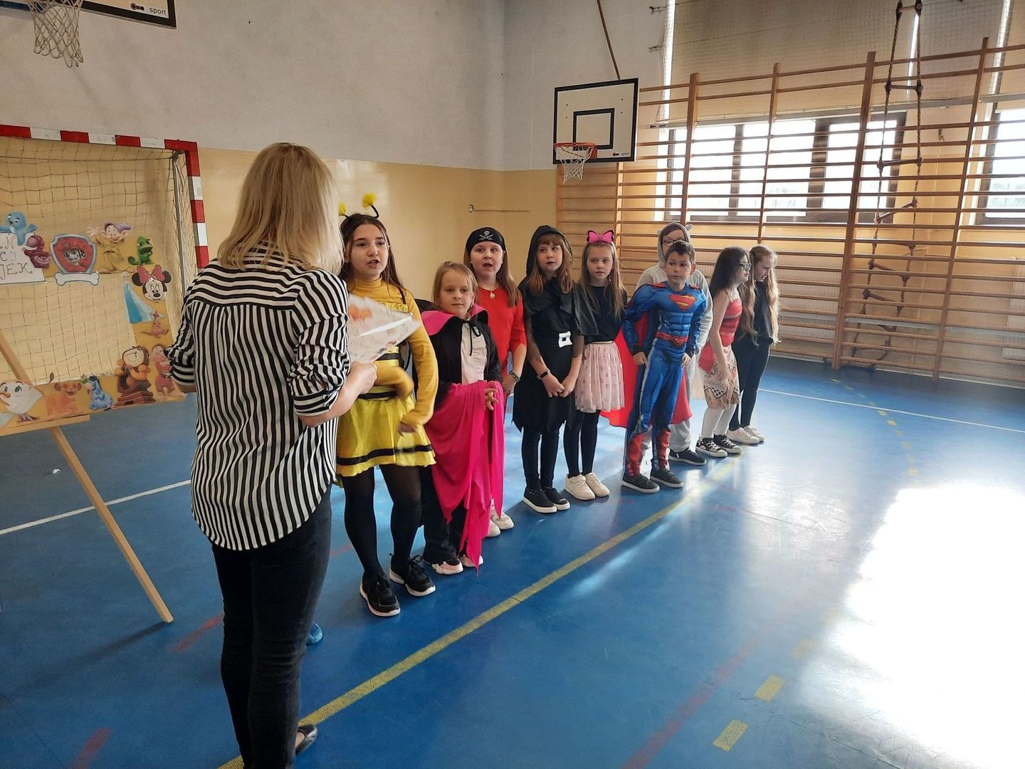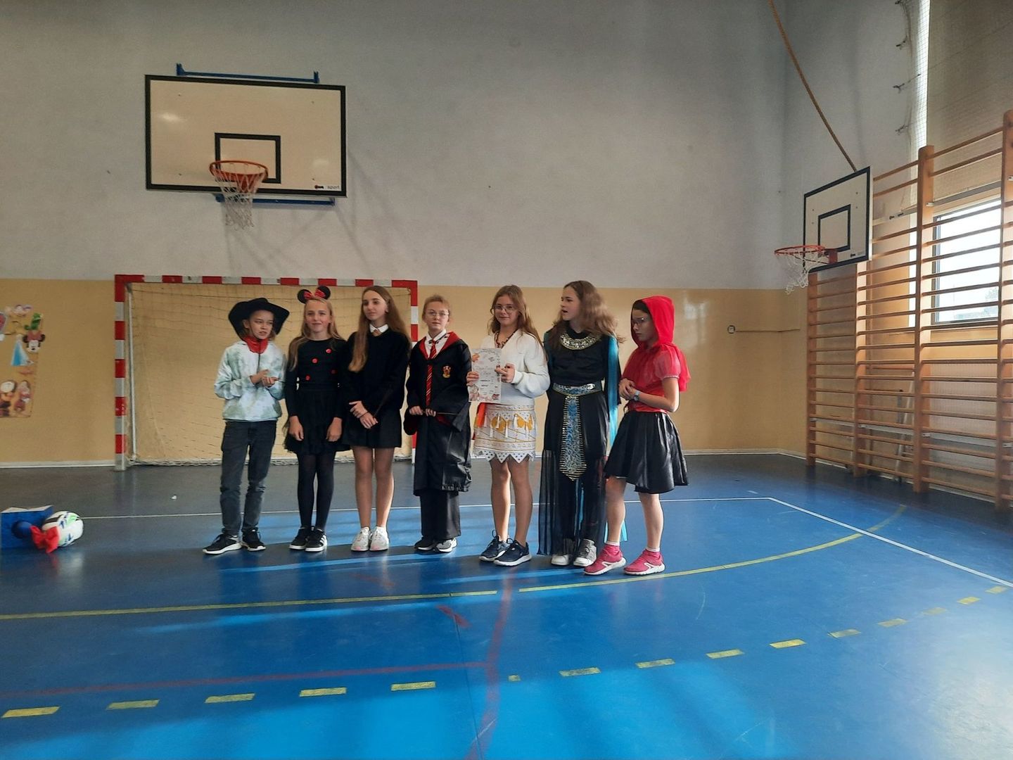 7.11.2022 r. nasza placówka po raz pierwszy celebrowała Dzień Postaci z Bajek. Aby uatrakcyjnić ten dzień i bardziej zintegrować społeczność szkolno - przedszkolną panie Olga Kobierska i Joanna Lewandowska zorganizowały konkurs na licznie i ciekawie przebraną klasę. Mobilizacja była niesamowita! Okazało się, że w niemal każdej klasie przebrani są prawie wszyscy. Zaangażowanie klasy VIII oraz III B nagrodzone zostało słodkim poczęstunkiem w formie pysznego bezowego tortu, który młodzież zjadła w towarzystwie wychowawców. Wszystkie klasy przebrane otrzymały lizaki, oraz dyplomy, dodatkowo wyróżnienie i nagrody rzeczowe w postaci piłek powędrowały do zerówki oraz klasy pierwszej. Dziękujemy radzie rodziców za współpracę - upominki oraz przepyszne torty. Mamy nadzieję, że tą impreza wpisze się na stałe w kalendarz wydarzeń szkolnych .