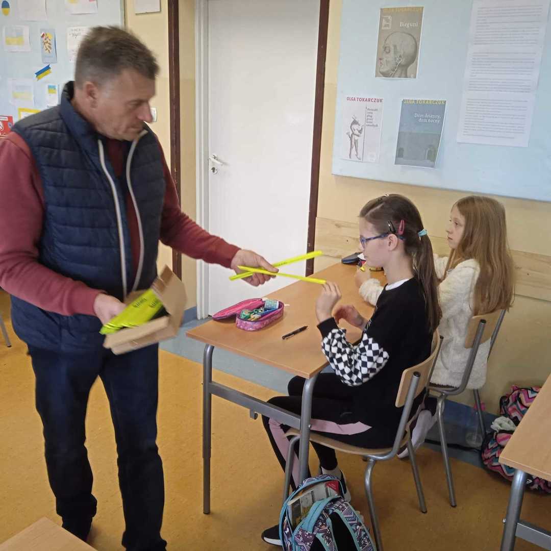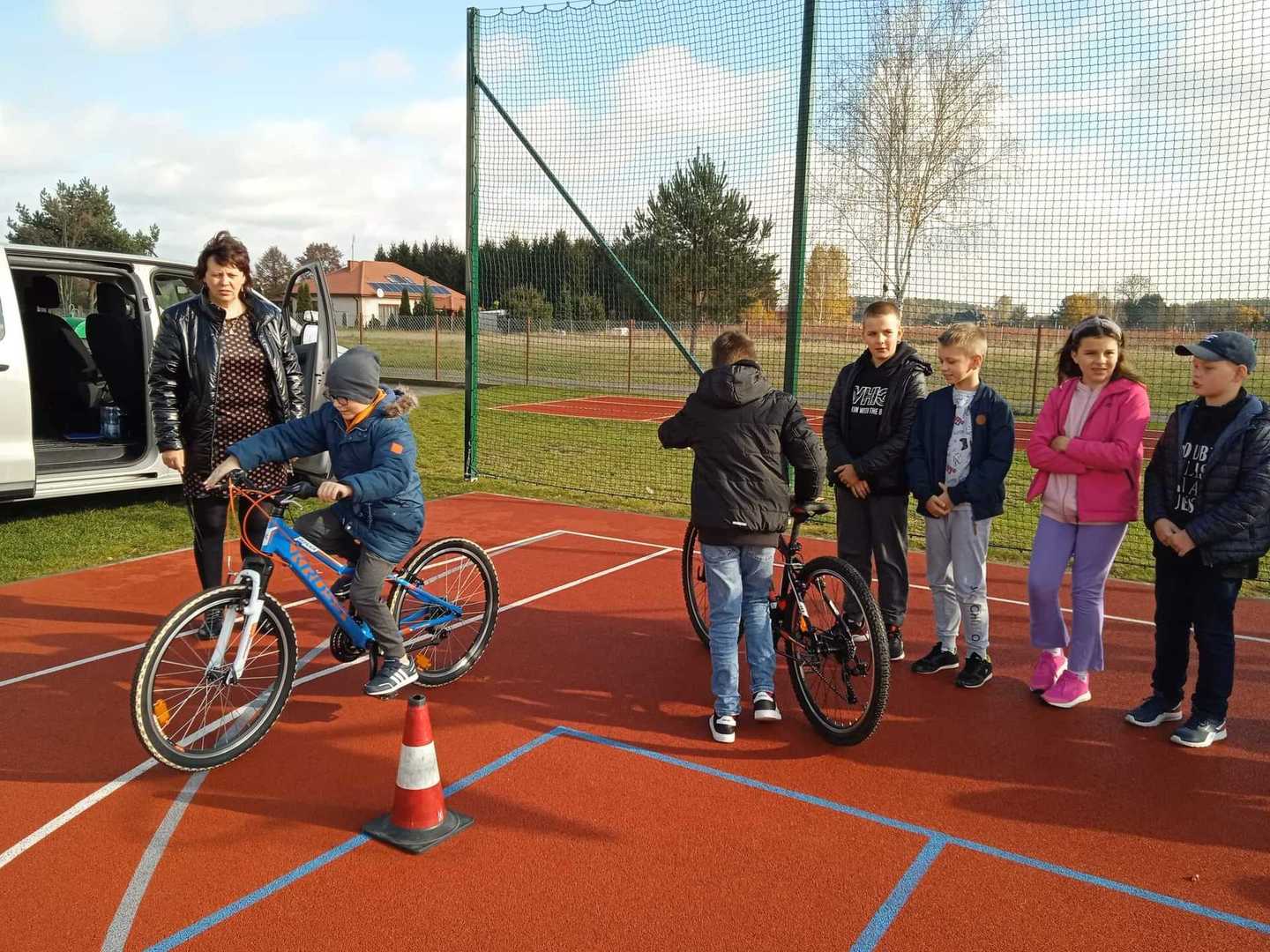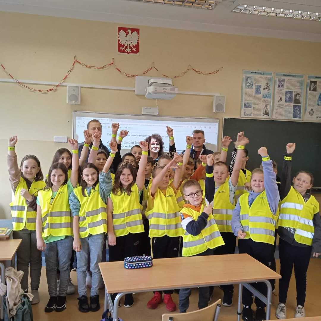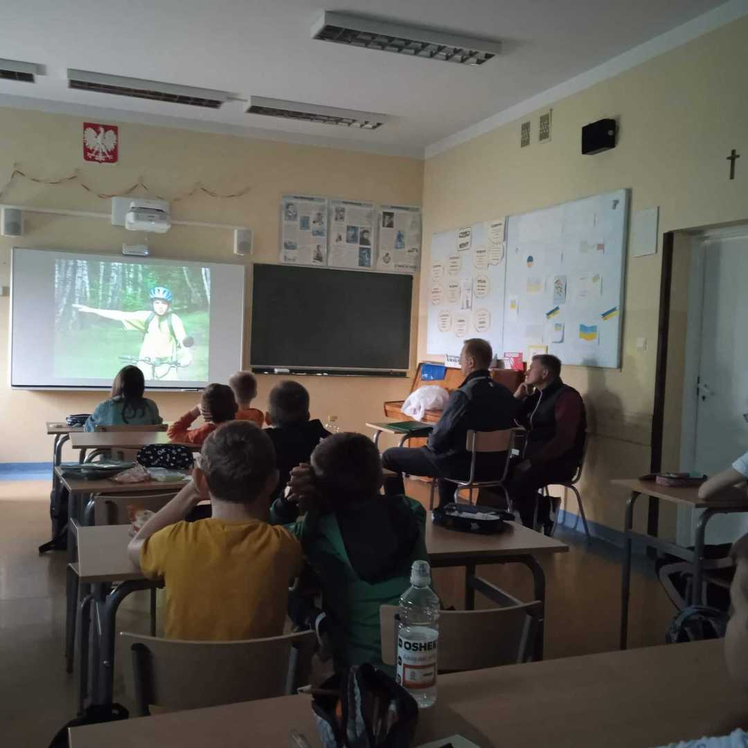 W dniu dzisiejszym na zaproszenie p. Marioli Owczarek do naszej szkoły przyjechali pracownicy Wojewódzkiego Ośrodka Ruchu Drogowego w Skierniewicach. Zajęcia dotyczące bezpieczeństwa ruchu na drodze przeprowadził pan Krzysztof Osóbka, pracownik WORD w Skierniewicach. Przyszli rowerzyści mieli możliwość nauki poprawnej jazdy rowerem po torze przeszkód. Uczniowie otrzymali kamizelki i odblaski, aby pamiętali o swoim bezpieczeństwie.