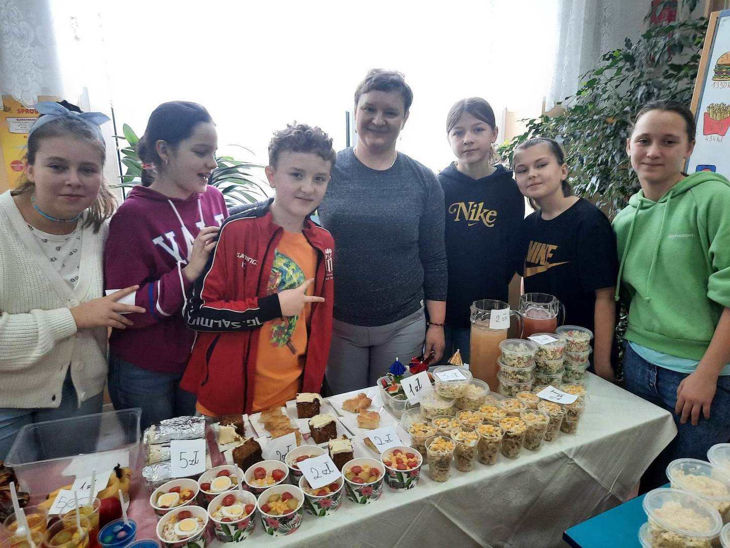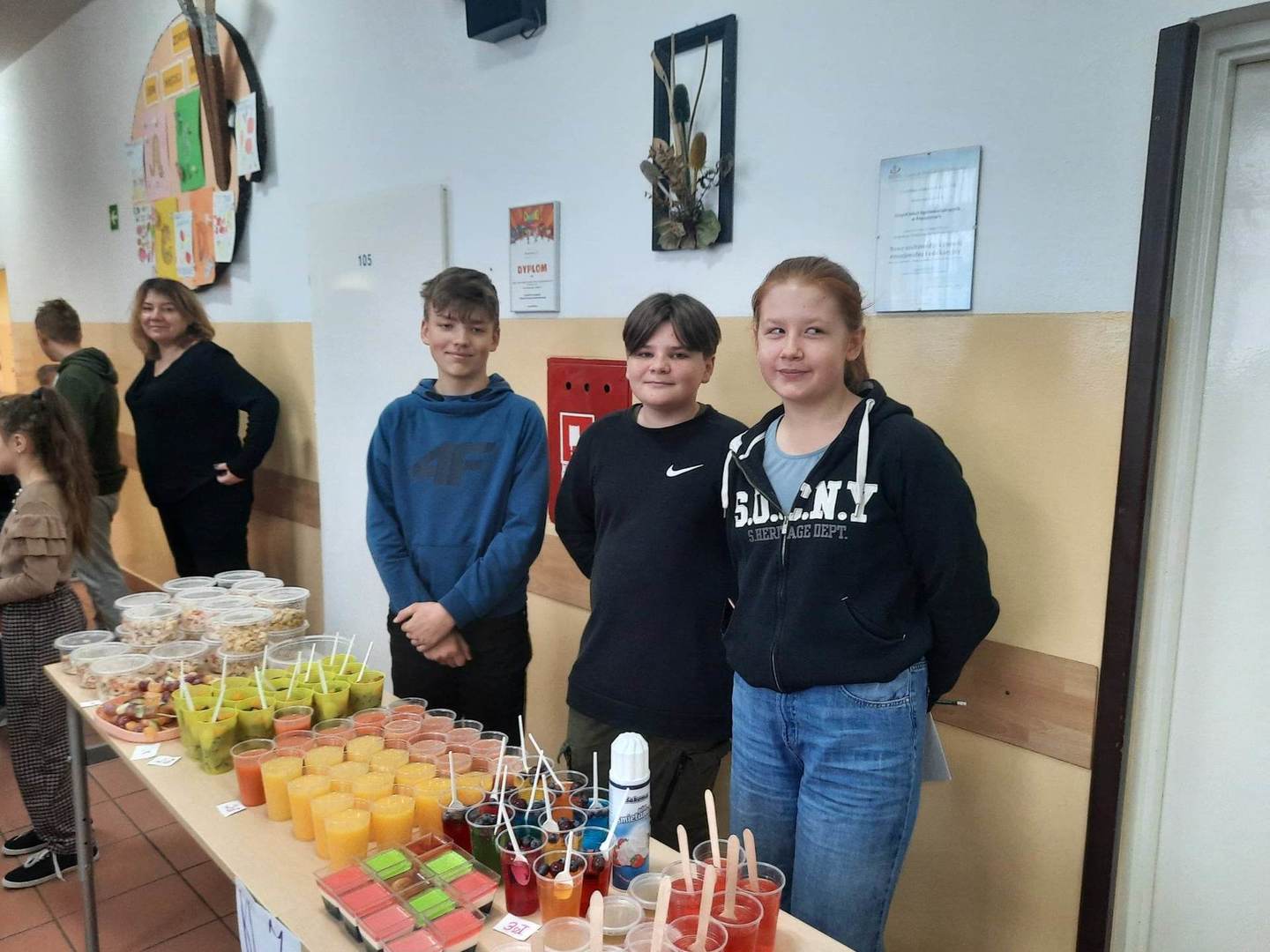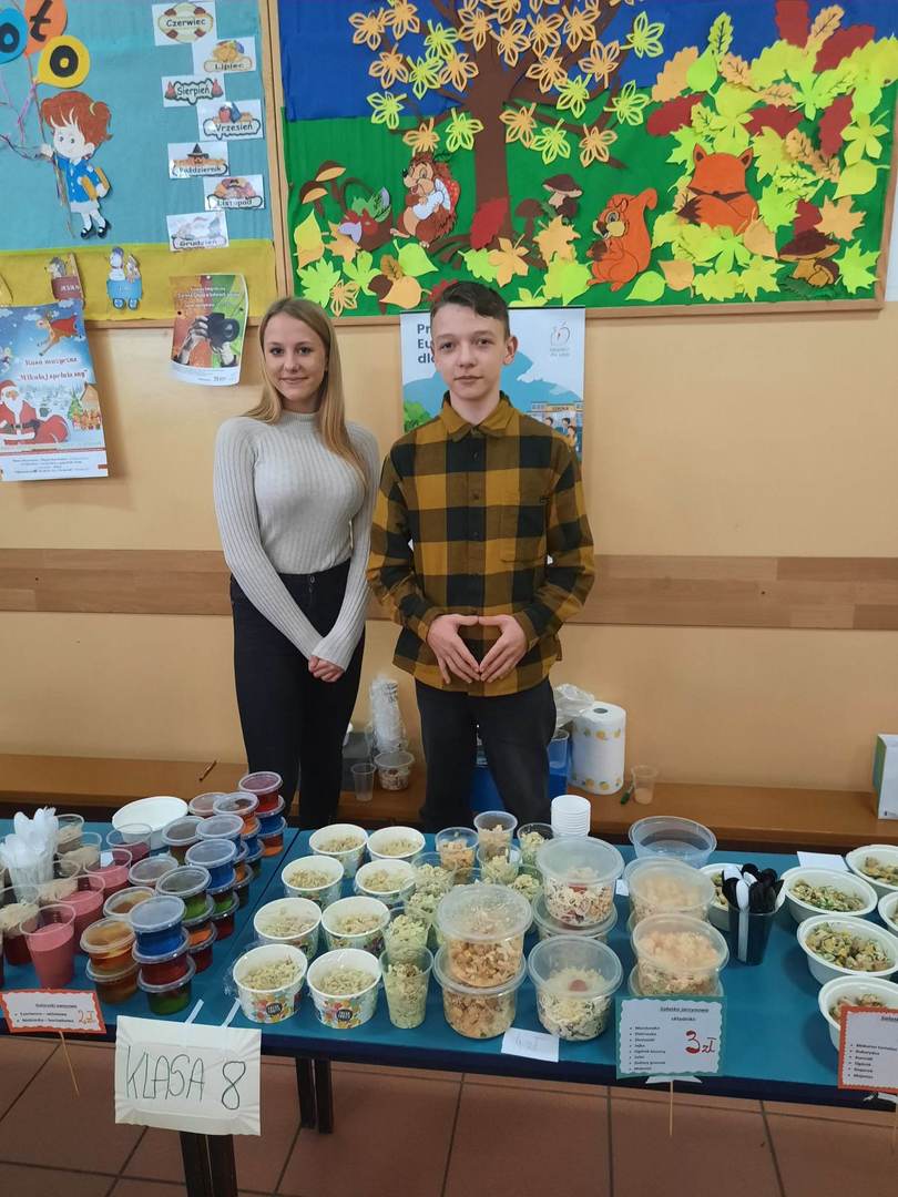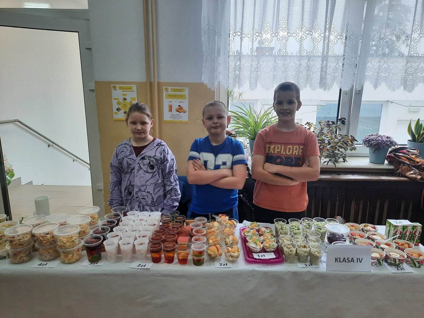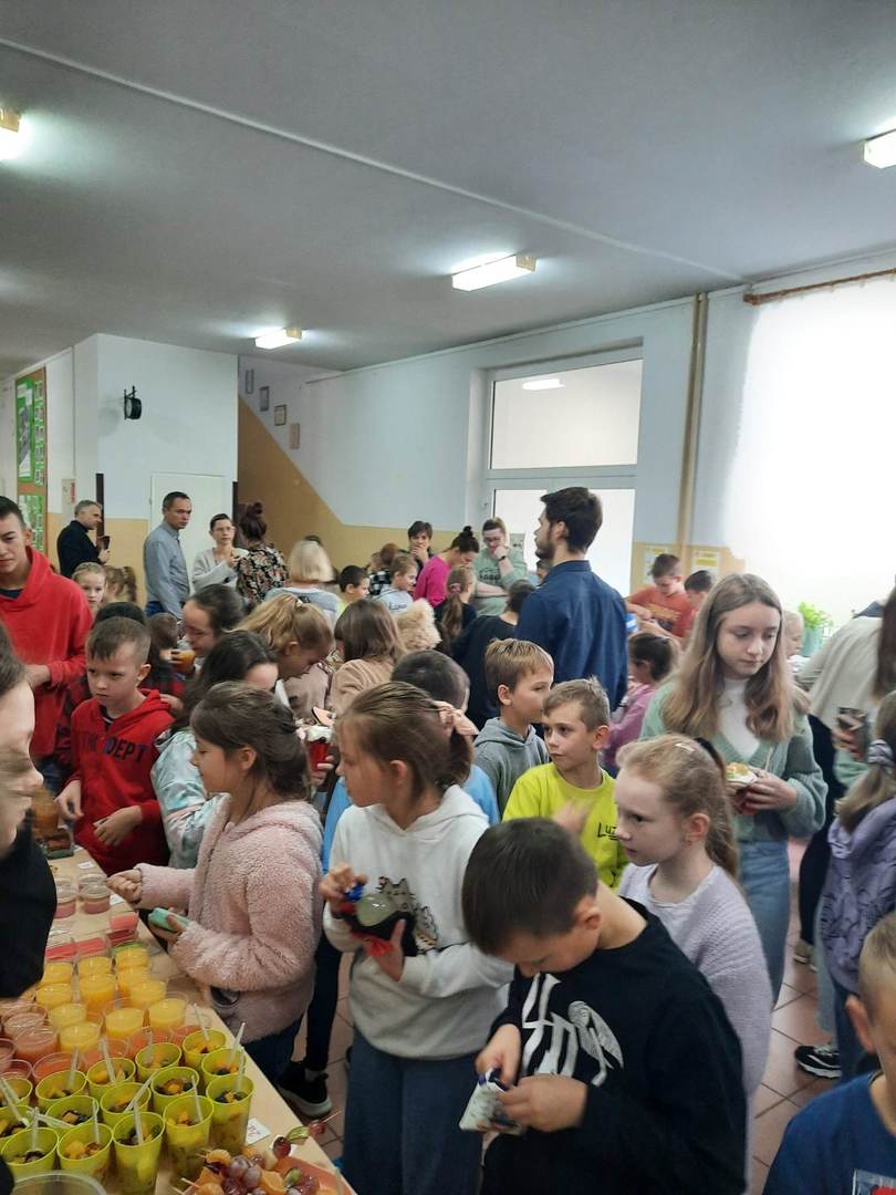 Dzisiaj klasy 4 - 8 szkoły podstawowej przygotowały pyszne i zdrowe sałatki, surówki oraz przekąski, które następnie sprzedawały całej społeczności szkolnej. Przed degustacją odbyła się prelekcja dla uczniów Samorządu Uczniowskiego ze Szkoły Podstawowej w Pukininie, którzy przyjechali do nas z rewizytą. Uczniowie wysłuchali wielu ciekawych informacji nt. zdrowej żywności, a następnie wzięli udział w kiermaszu. Po części oficjalnej Goście zostali oprowadzeni po szkole, po czym poszli na mały poczęstunek do sali świetlicowej, gdzie przedstawiciele naszej szkoły wymienili spostrzeżenia nt. ciekawych przedsięwzięć. Naszym Gościom serdecznie dziękujemy za wizytę, a wszystkim uczniom i ich Rodzicom dziękujemy za wspaniałe witaminowe przyjęcie:)